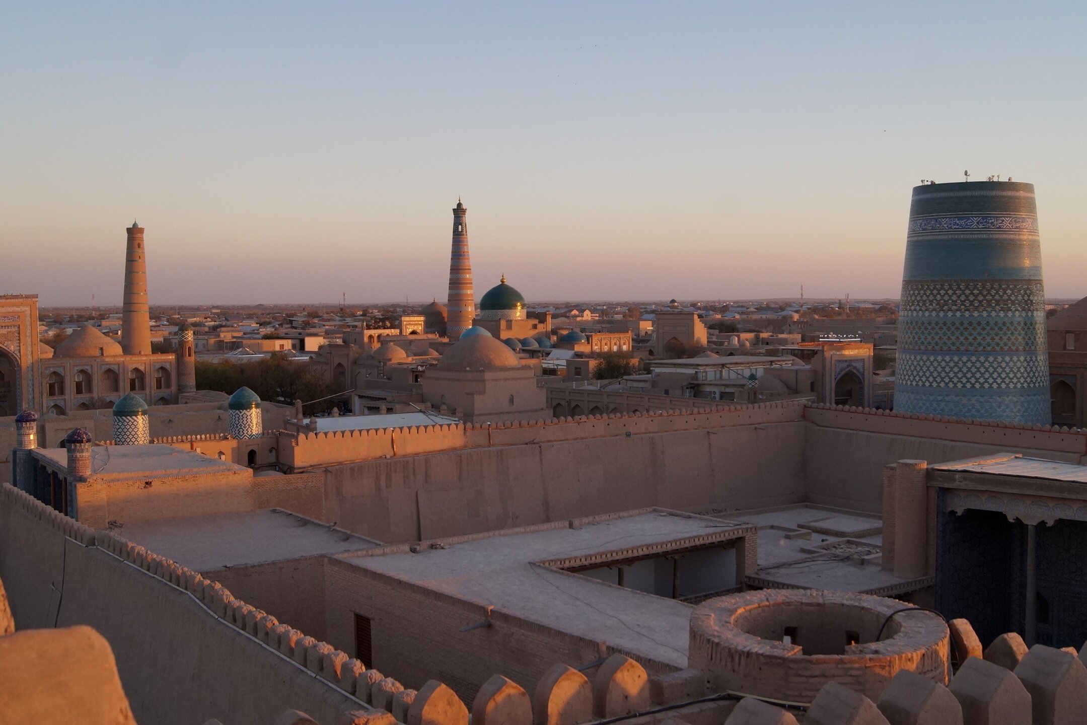А я всего однажды в последний день тура. И как часто бывает, настала уже каша в голове и переизбыток эмоций. Поэтому Грац, к сожалению, не оставил следа ни в памяти, ни в сердце. К тому же было пасмурно, холодно и сыро, хотелось поскорее в тепло автобуса и к дому. Поэтому вот разве что Снеговик и запомнился:) У меня был сначала другой вариант)) А почему бы и не да?:) Буквы-то какие попадаются интересные, не самые распространенные:) я услышала про "не торопиться", обещаю слишком часто не влезать со следующим городом, но тут так напрашивается один европейский город, что можно я пойду вопреки и сверну немного в Азию?:) Потому что... Хива - одно из самых ярких моих туристических воспоминаний вообще, не только от поездки в Узбекистан. Город из восточной сказки. Её невероятная глинобитная Ичан-Кала, где, кажется, случился провал во времени, потому что эти стены из глины и необожженного кирпича, эти минареты, устремленные в небо, выложенные камнем улицы, эти яркие узбекские халаты... ну, разве ж это может быть 21-ый век? Особенно усиливает ощущение провала во времени то, что Ичан-кала - не музей, а жилой район: бегают, взбираясь на крепостные стены, дети, спешат на работу взрослые, обсуждают новости встретившиеся на улице соседки, не обращая внимания на туристов, бродящих с распахнутыми от удивления глазами. А ещё с её стен показывают невероятные, фантастические закаты: