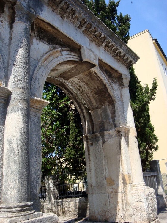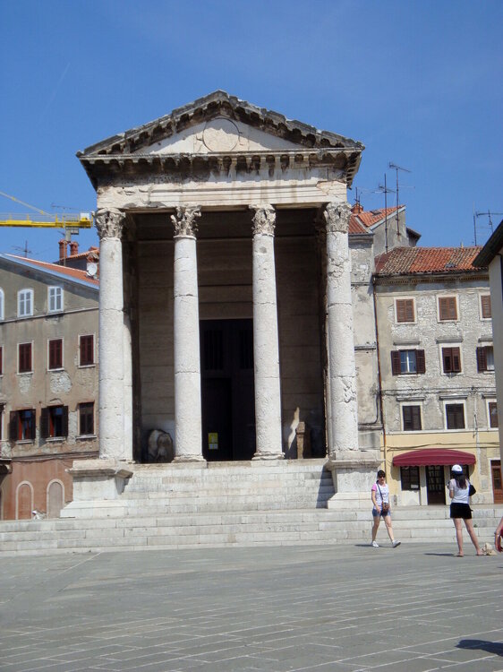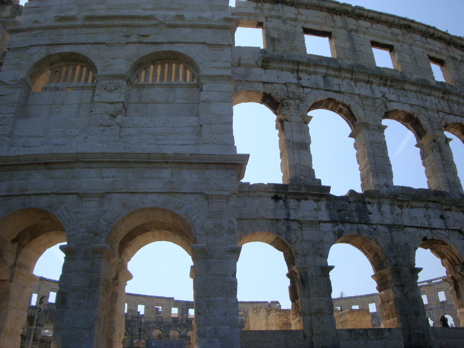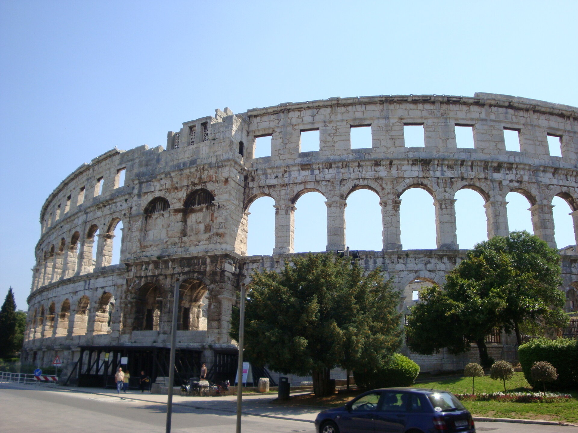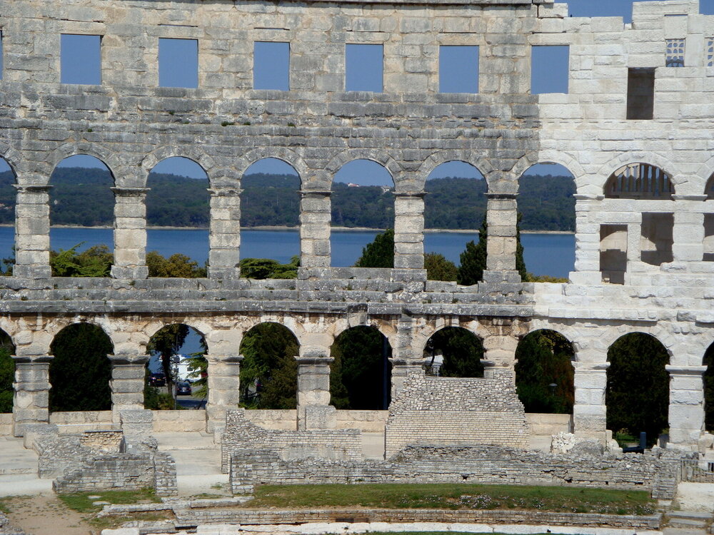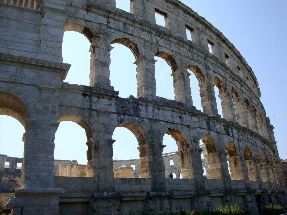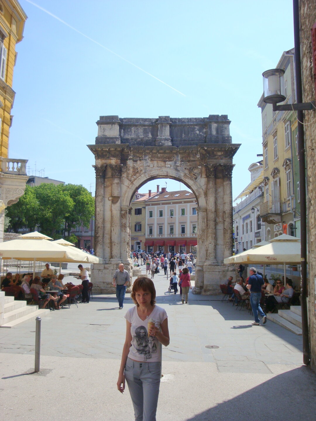 Пула - фантастический город, где на древних камнях кипит современная жизнь. Очень понравился, очень поразил. С удовольствием бы вернулась. Невероятные, хорошо сохранившиеся римские древности, чудесный морской воздух и расслабляющая атмосфера неторопливости, спокойствия, умиротворения приморского городка. Помню предупреждение - "Имейте ввиду, обедать в Хорватии Вы будете долго, здесь никто не торопиться, закладывайте минимум часа полтора". Сначала удивляешься, а потом понимаешь - здесь грех бежать и торопиться. И совсем не раздражает эта медлительность, столь непривычная туристу автобусного тура. Воспринимаешь как необходимую паузу, как лекарство для городского жителя, вырвавшегося из суеты. Замедлиться, не спешить, пить вино, смотреть на море, радоваться и быть счастливой... Лишь несколько лет спустя я вновь сумела постичь этот дзен, в другой стране. Первое, чем встретила Пула, были яркие маки у стен древней Арены. Почти вечность и мимолётность - волнующее сочетание. Амфитеатр космический - огромный, хорошо сохранившийся, имеющий одно преимущество перед римским Колизеем - фоном ему служит море, прекрасная Адриатика. Какая мощь! Храм Вознесения Девы Марии: Узкие улочки, на которых хочется заблудиться: Храм Августа: Арка Сергиев: Ворота Гемина: Прячущаяся прямо среди жилых домов римская мозаика "Наказание Дирки":