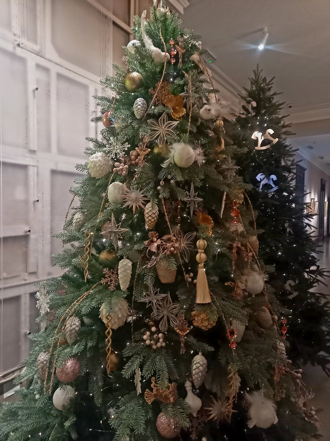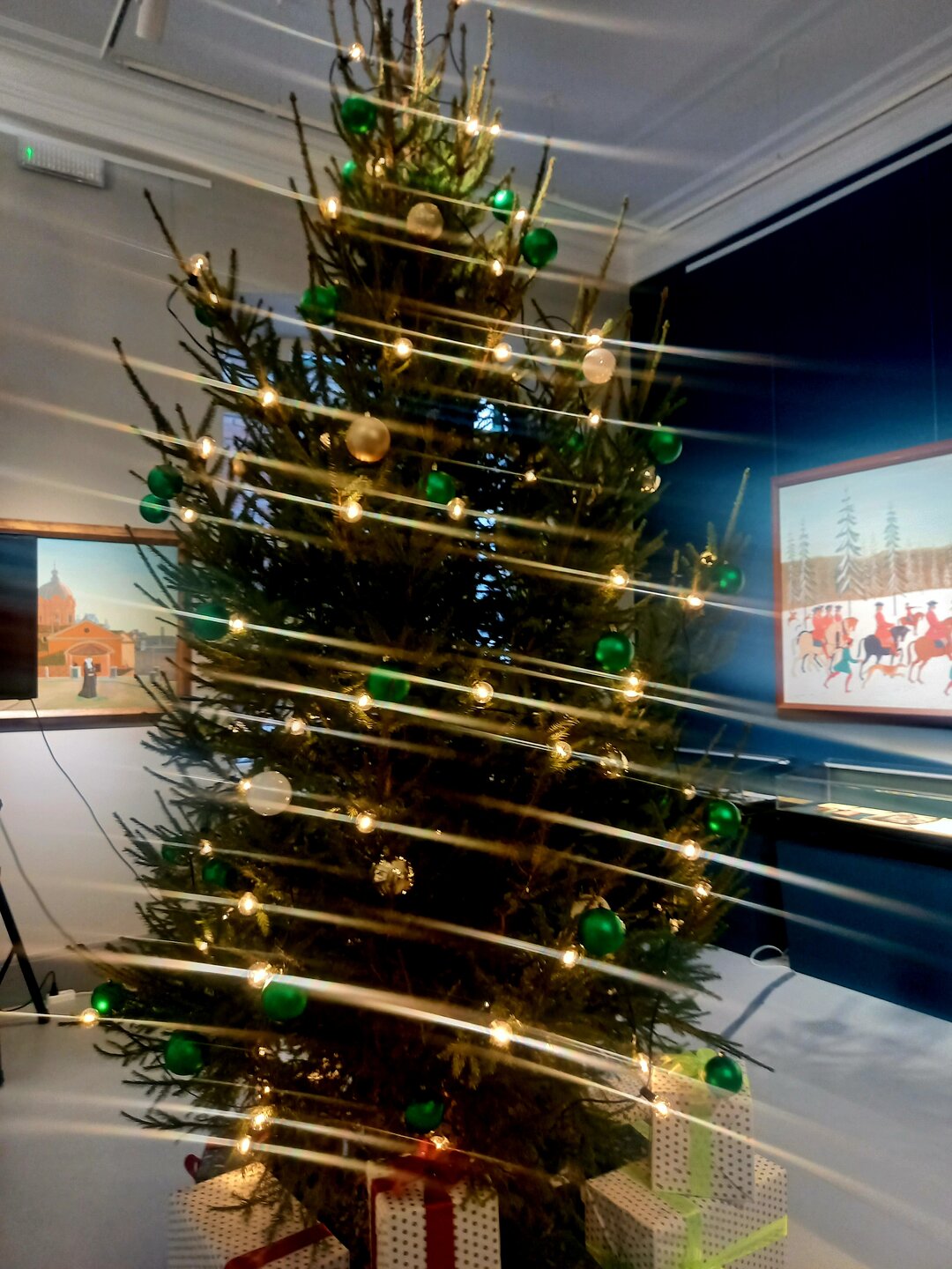 У нас ёлки на асфальте стоят, но как-то без снега фотографировать даже не хочется, тем более, что от прошлогодних они не отличаются. К концу недели вот снег обещают, интереснее станет, наверное. Пока музейные украшения праздничнее смотрятся, чем уличные: