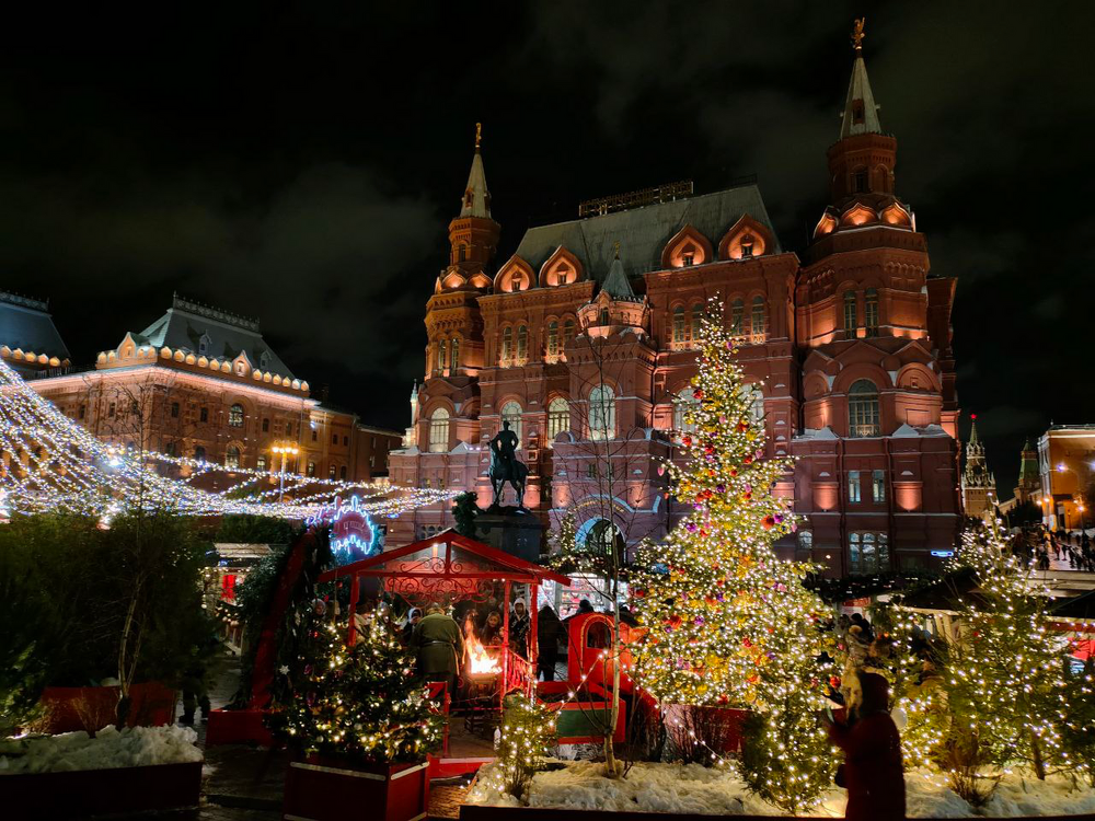 Приветствуем всех участников форума, Для тех, кто в этом году не может или не успеет полюбоваться новогодней Москвой, несколько фотографий по пути от Парка Культуры по Остоженке, мимо Пашкова дома и Манежа, с заходом на ГУМ-ярмарку и далее до Кузнецкого моста. Комментировать особенно нечего- многие места знакомы с раннего детства.