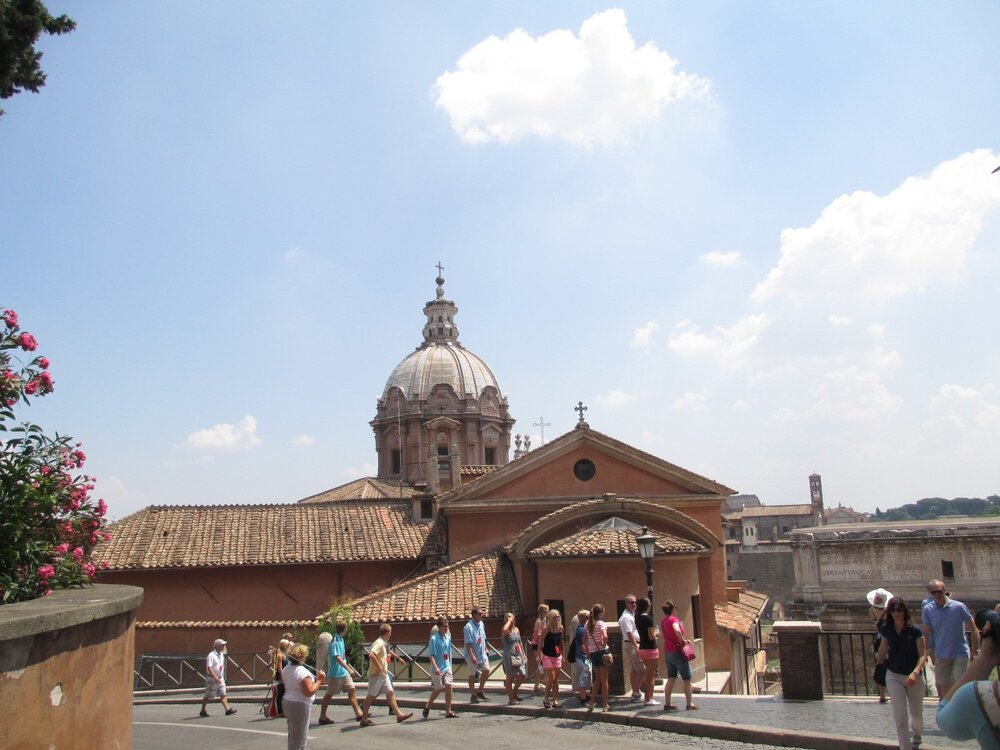 Да, Светлана, Вы были совсем недалеко от церкви Санта-Мария-ин-Космедин, в которой находятся Уста истины. Стрелочкой отметила эту церковь на Вашей фотографии. А мне очень жаль, что я не знала ни о саде роз, ни об апельсиновом саде и прошла мимо.((( Теперь знаю. Надеюсь посмотреть их фотографии у наших садоводов. Добавлю несколько фотографий Цирка и церкви. Церковь расположена между Цирком и Тибром. Очередь (она внутри) в церковь большая, но идет быстро. Сотрудником на фотографирование себя с Устами отводится не более двух минут. Я довольствовалась тем, что увидела энто))), сфотографировав через решетку. И, вроде, получилось нормально)). И развалины Цирка Массимо: