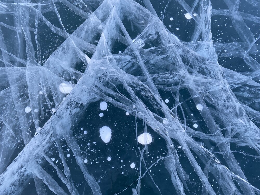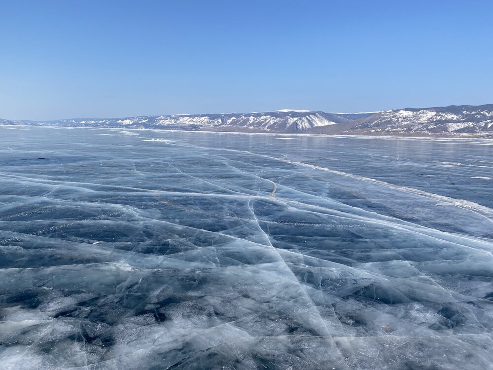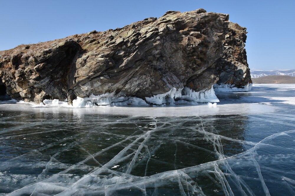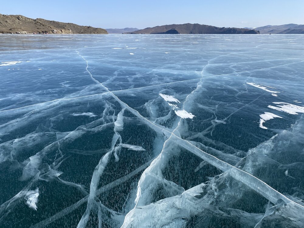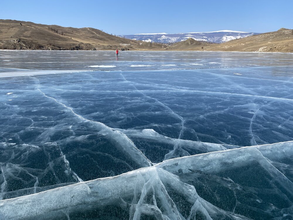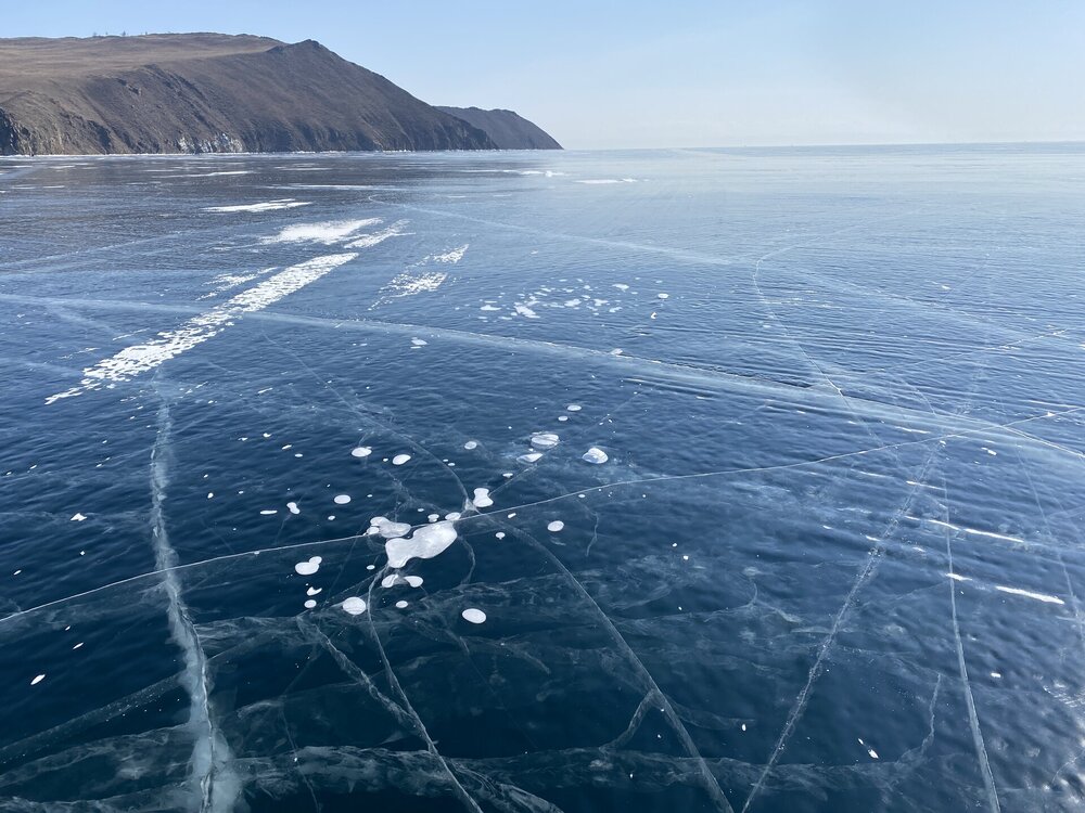 Зимний Байкал — настоящая ледяная симфония, которую невозможно увидеть с берега! Бескрайнее ледяное поле прозрачного льда с миллиардами пузырьков в замёрзшей кристальной чистоты воды, сети трещин, ровный как стекло голубой лед под синим бездонным небом! Эту сказочную крастоту сложно забыть! Приезжайте на Байкал зимой!!!