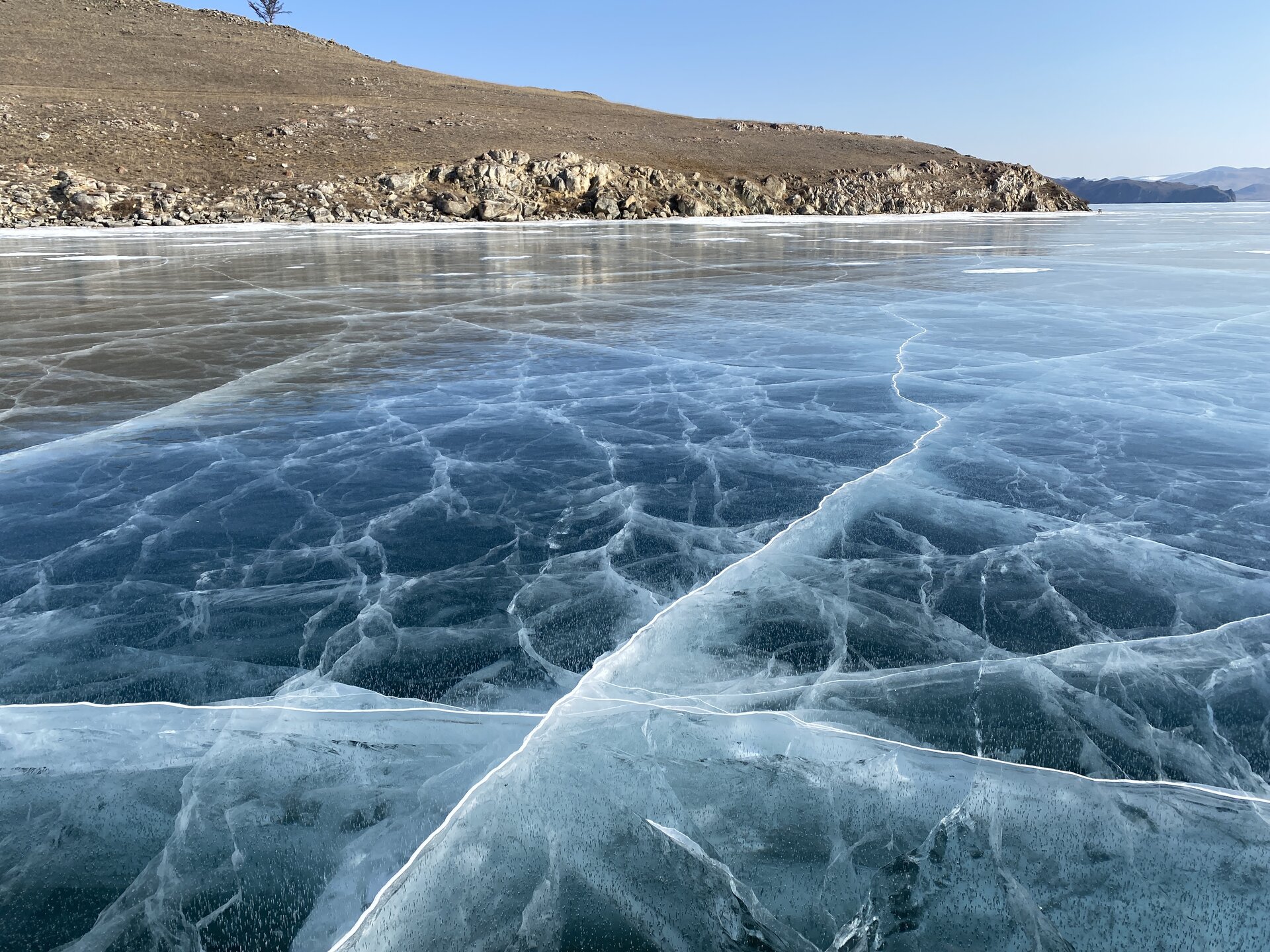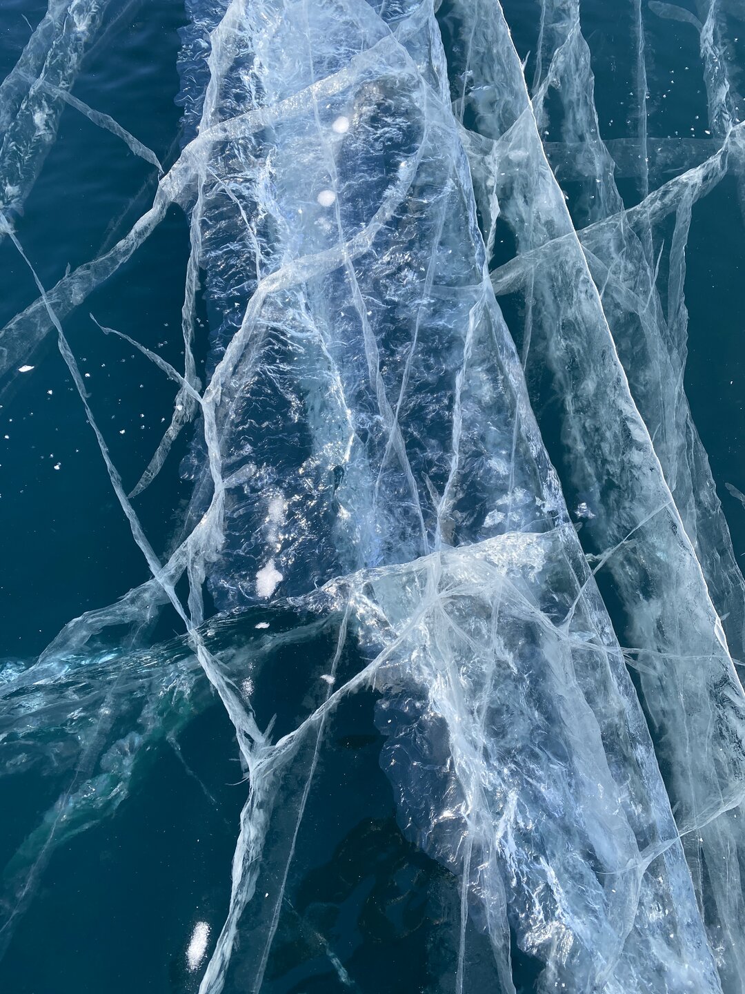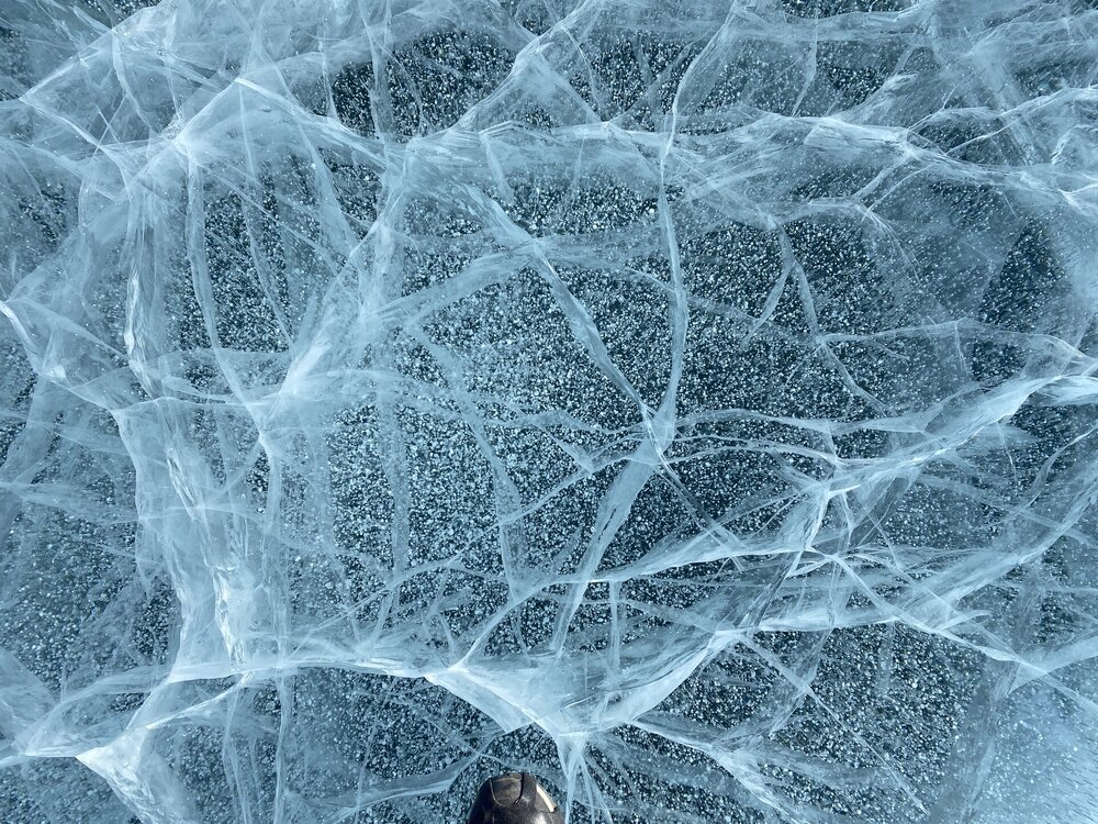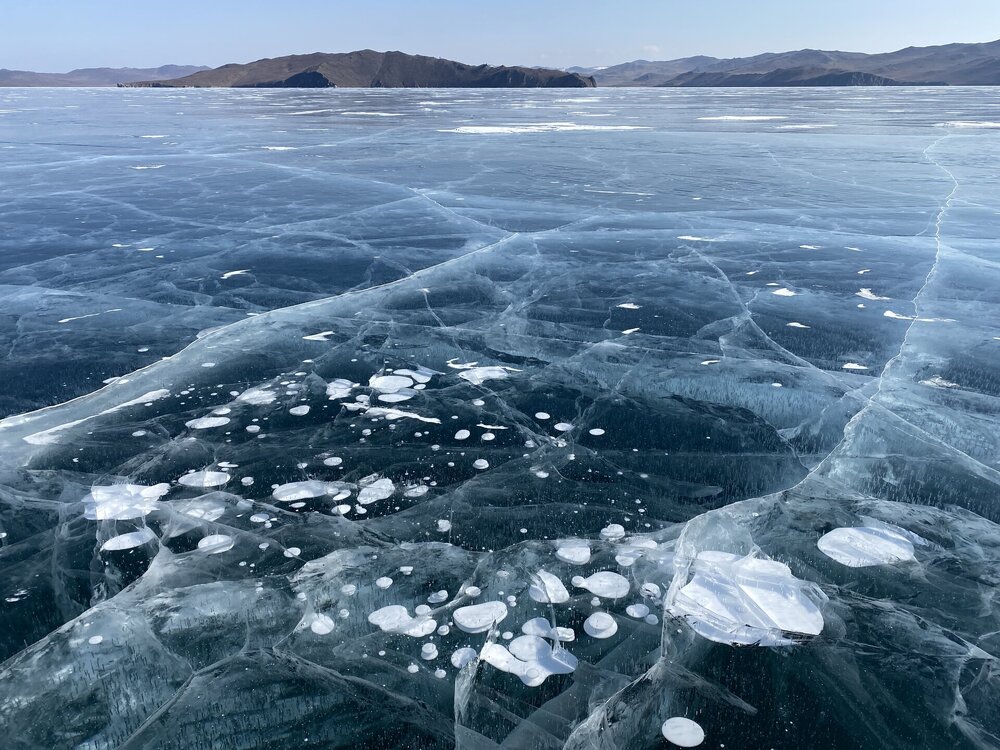 Зимний Байкал — настоящая ледяная симфония, которую невозможно увидеть с берега! Бескрайнее ледяное поле прозрачного льда с миллиардами пузырьков в замёрзшей кристальной чистоты воды, сети трещин, ровный как стекло голубой лед под синим бездонным небом! Эту сказочную крастоту сложно забыть! Приезжайте на Байкал зимой!!!