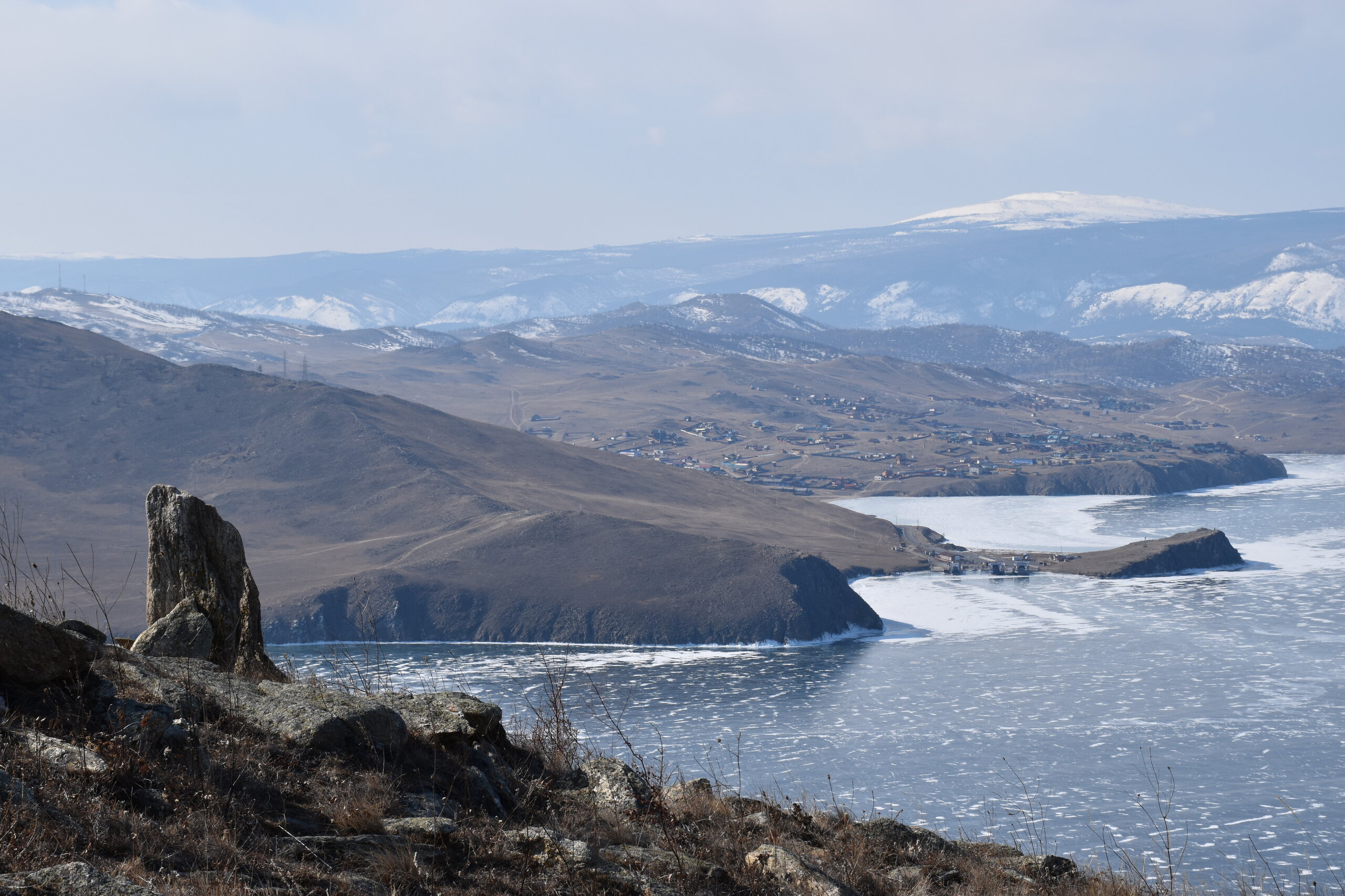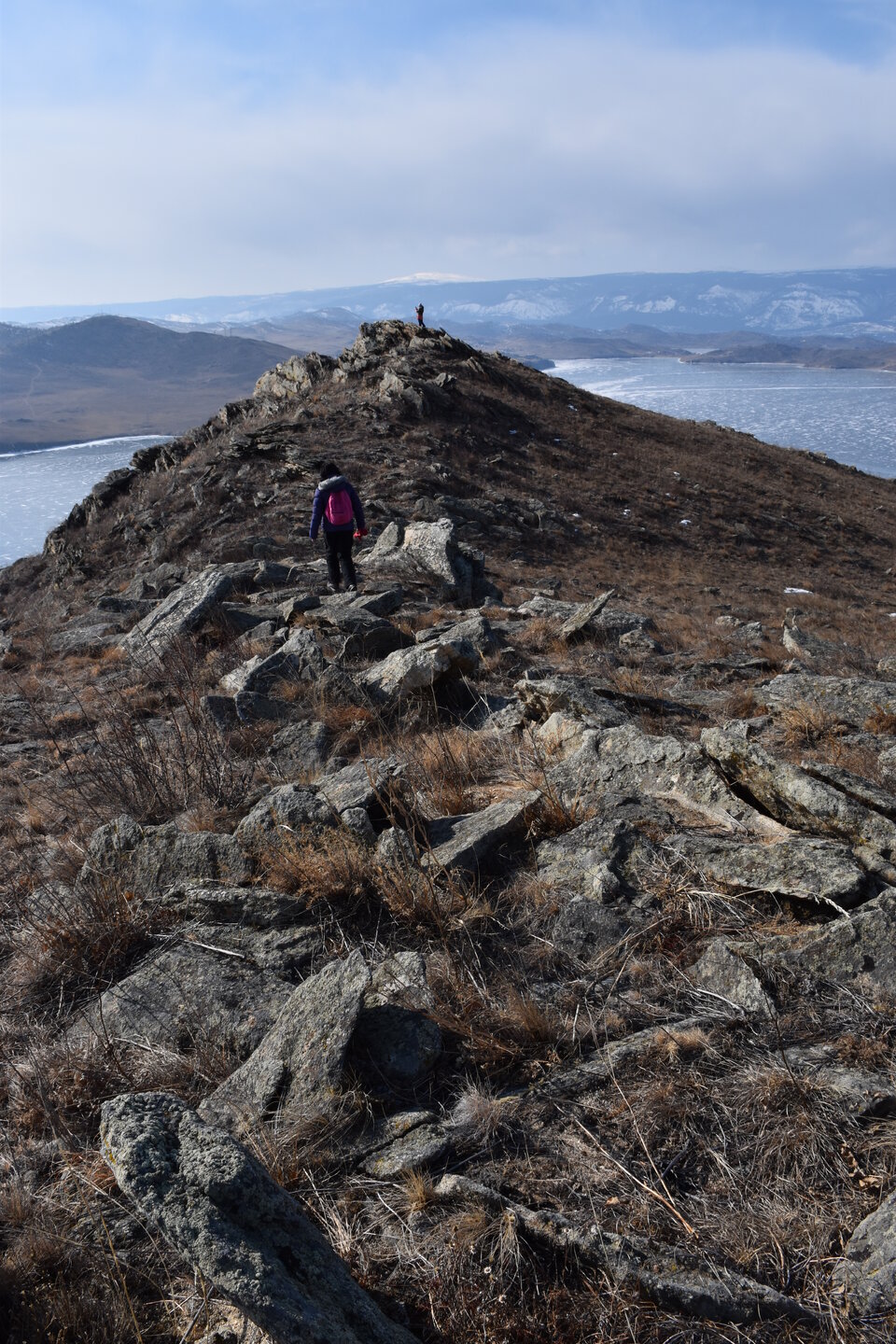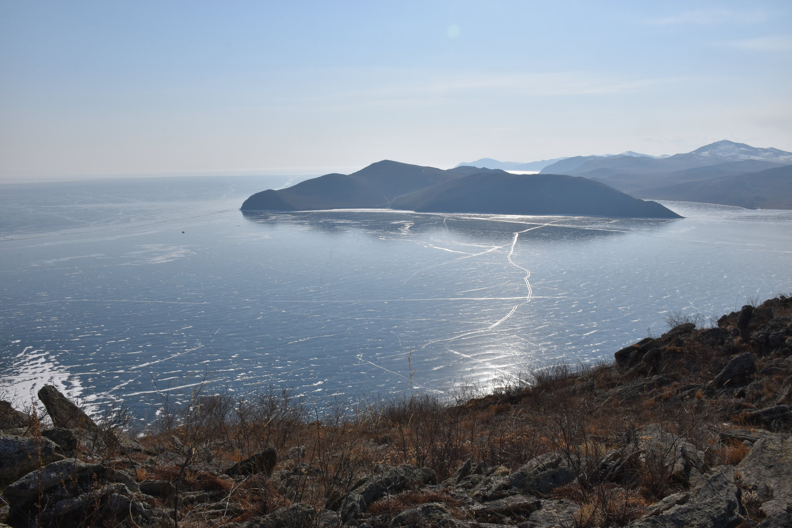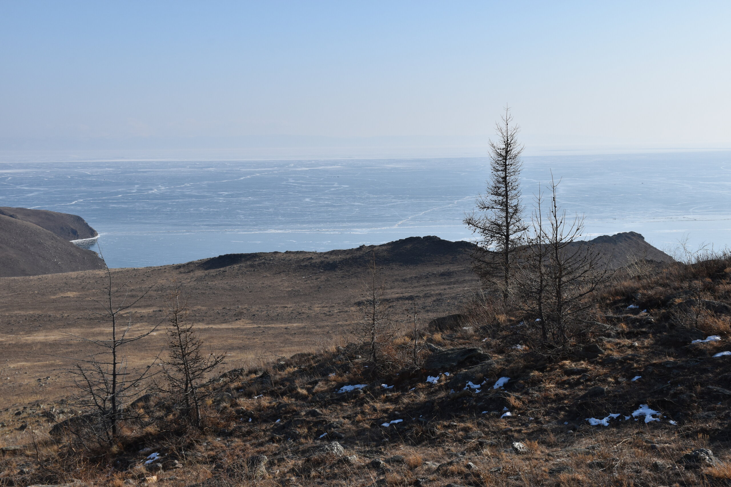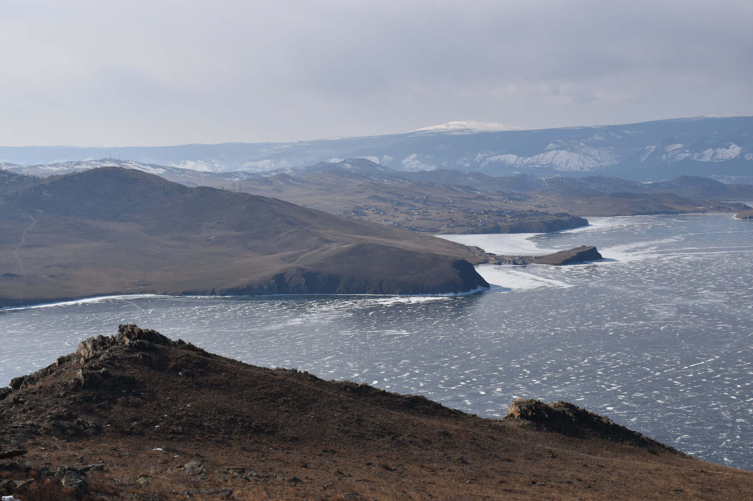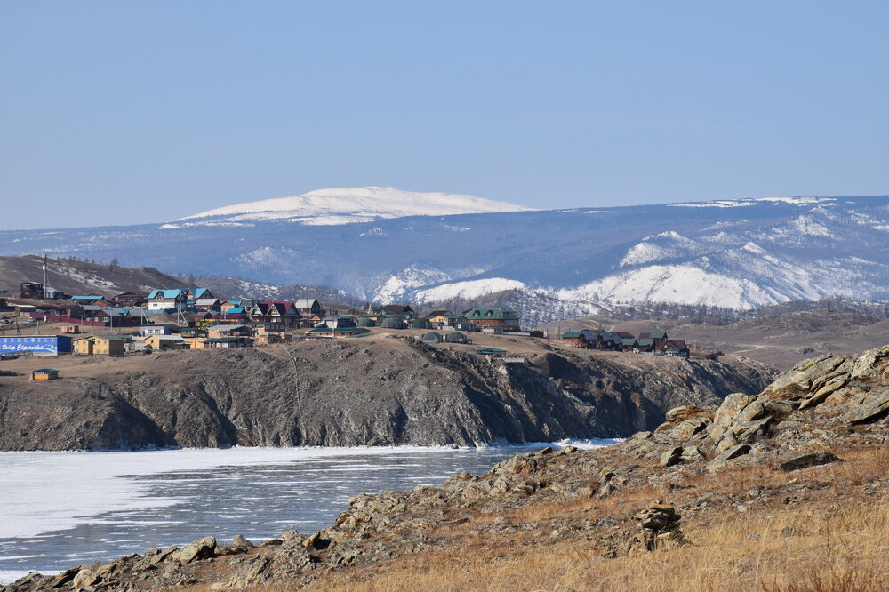 И вот мы по льду дошли до острова Ольхон. Летом именно здесь переправа и жизнь кипит. Сейчас же тишина! Полезли в горку ради красивых видов! Подъем небольшой, для меня совсем несложный (после треккингов на Кавказе).
