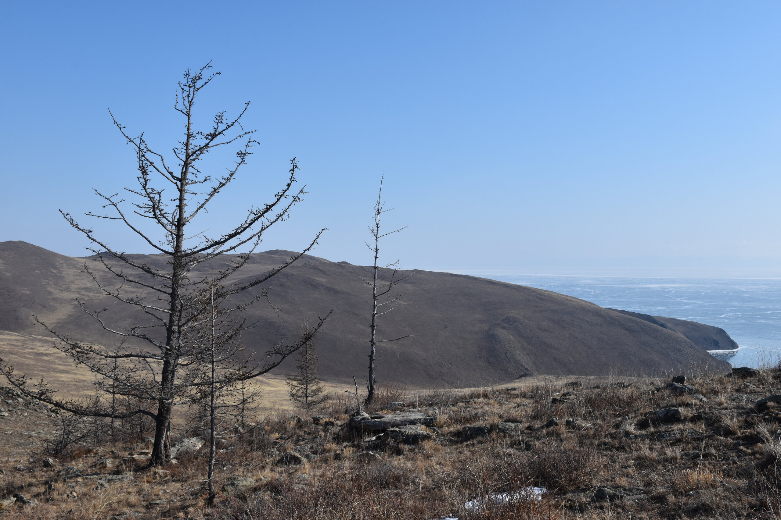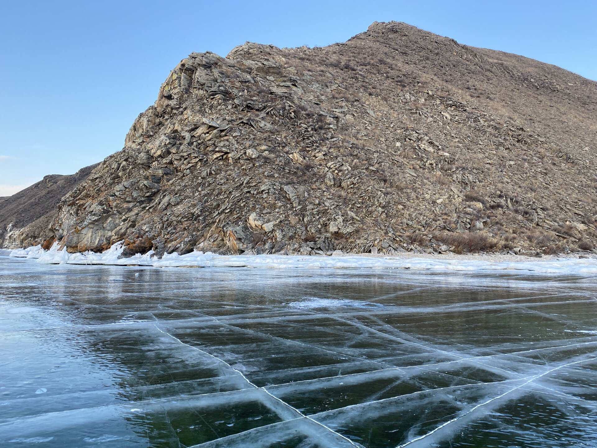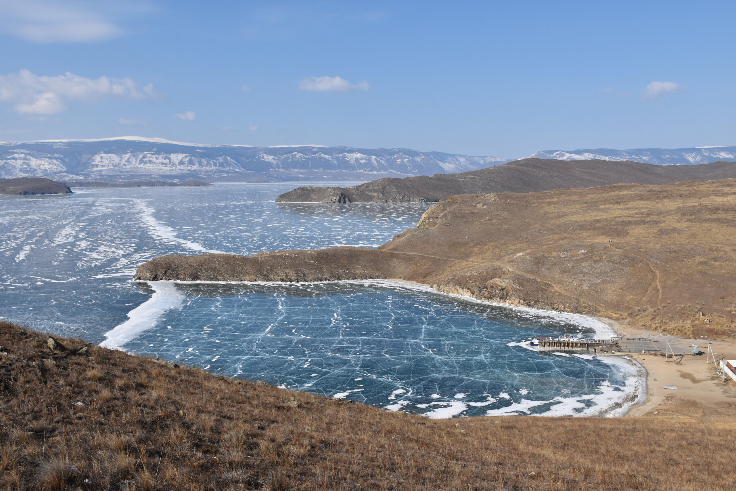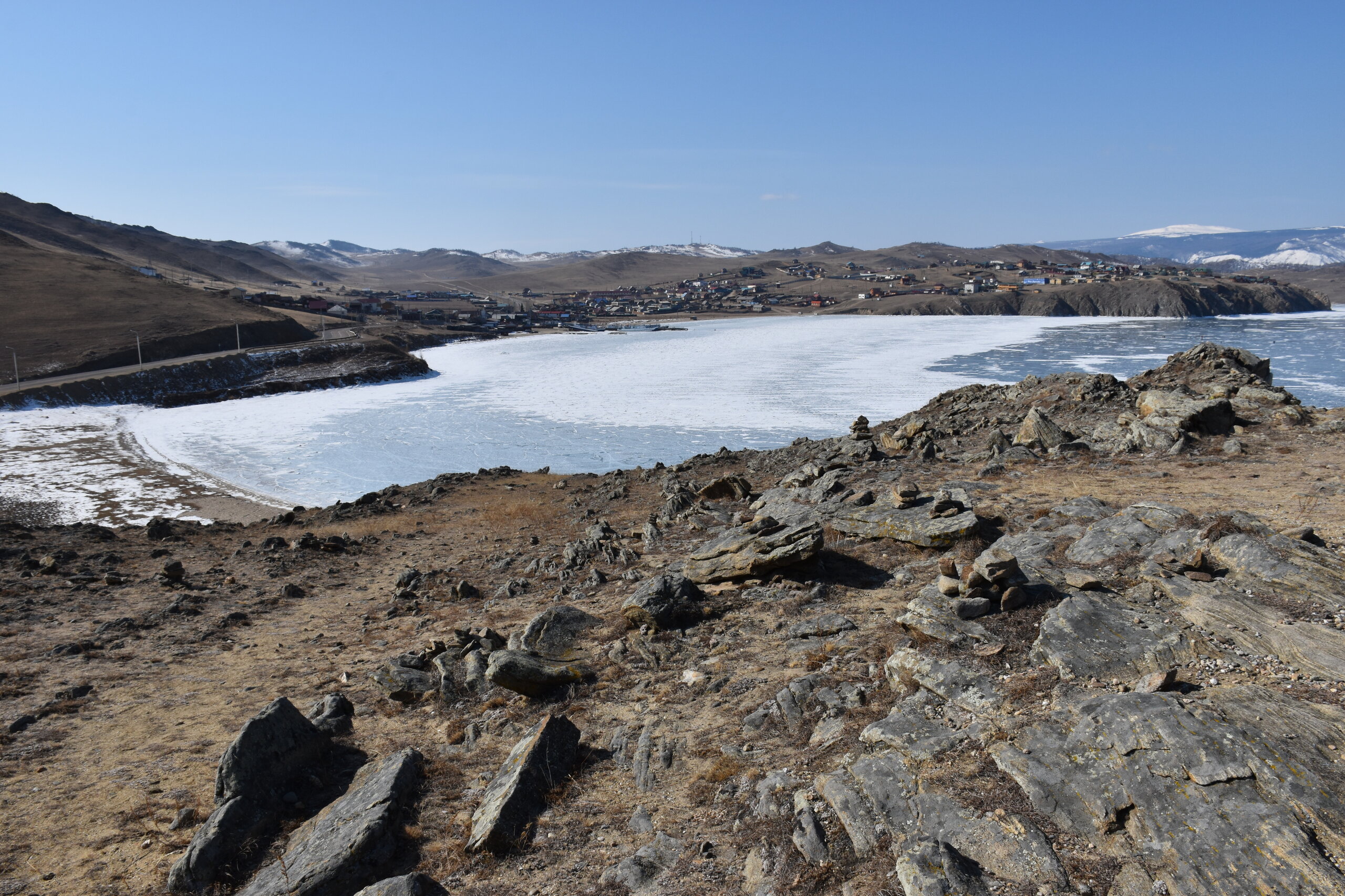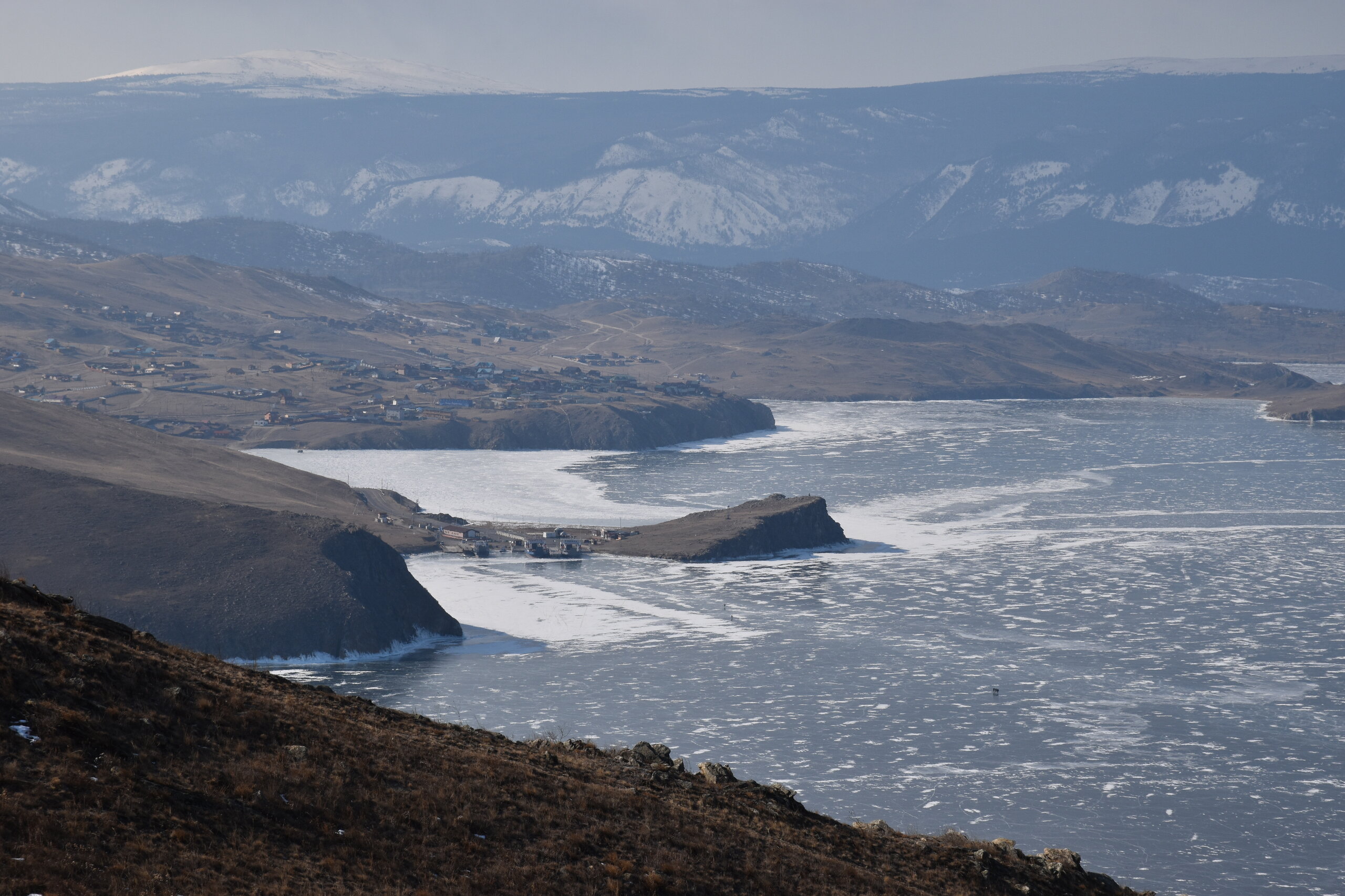 И вот мы по льду дошли до острова Ольхон. Летом именно здесь переправа и жизнь кипит. Сейчас же тишина! Полезли в горку ради красивых видов! Подъем небольшой, для меня совсем несложный (после треккингов на Кавказе).