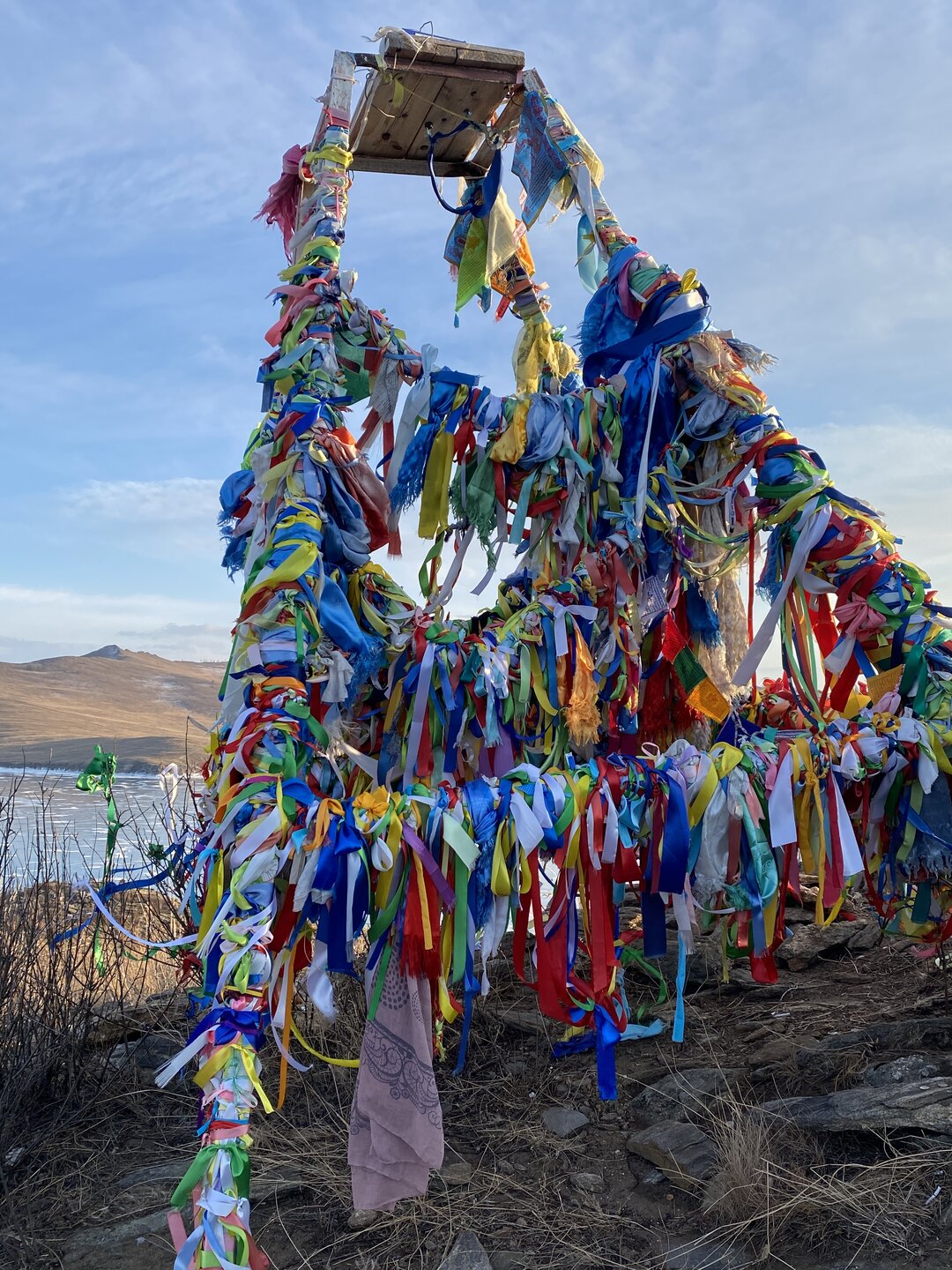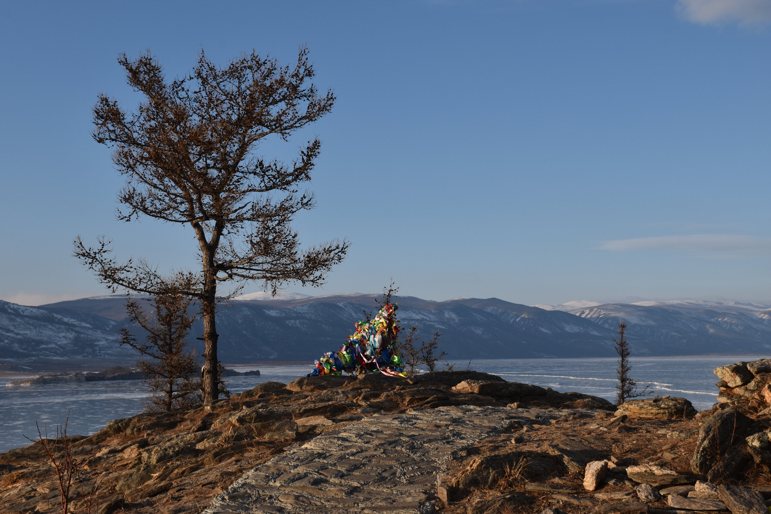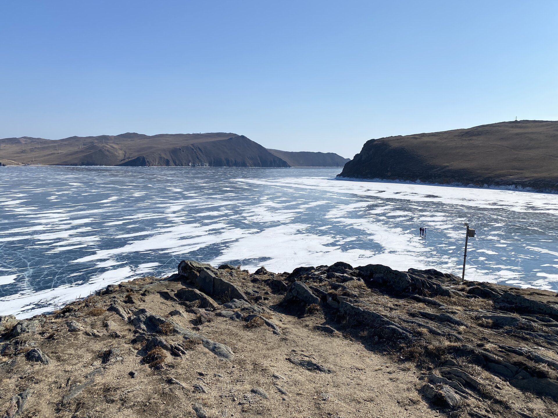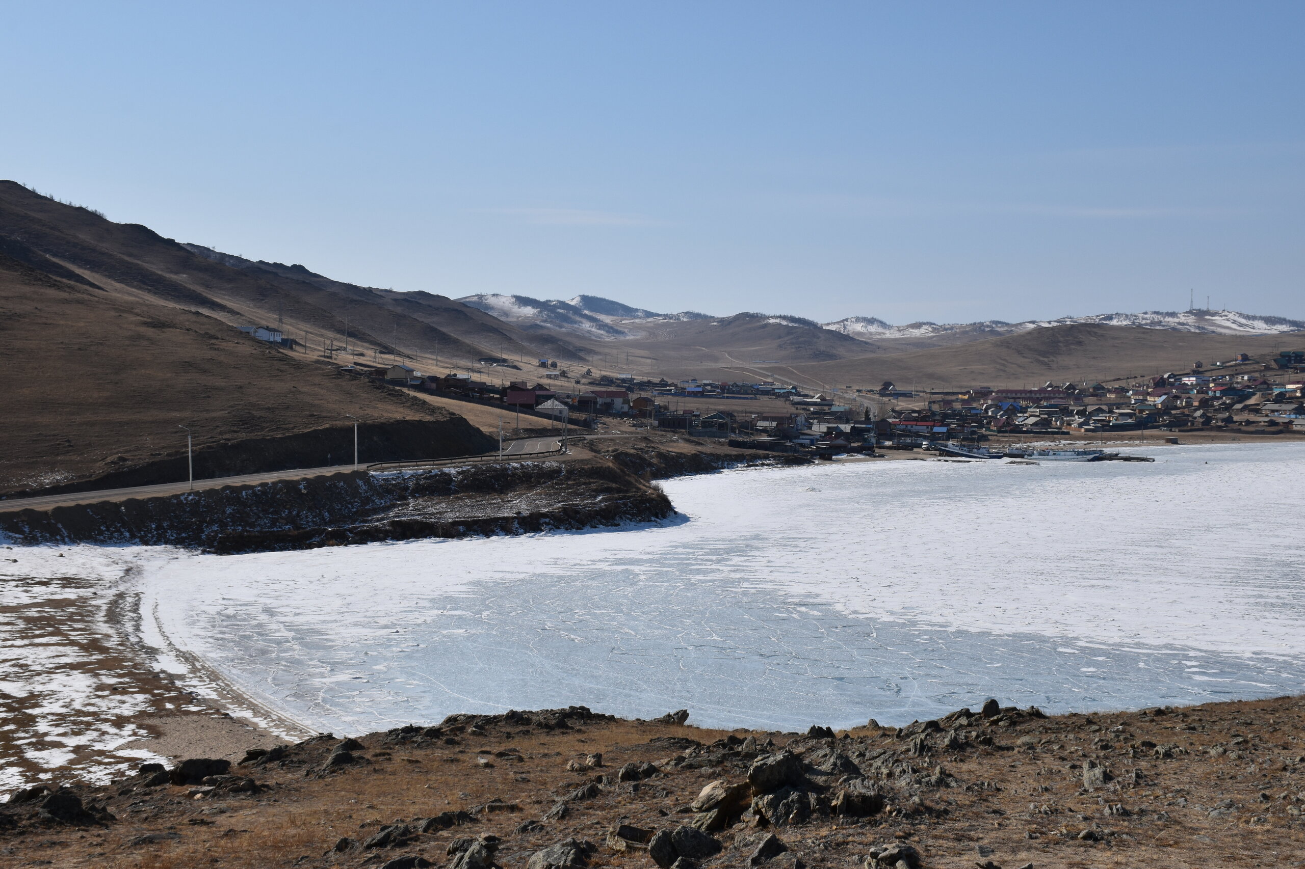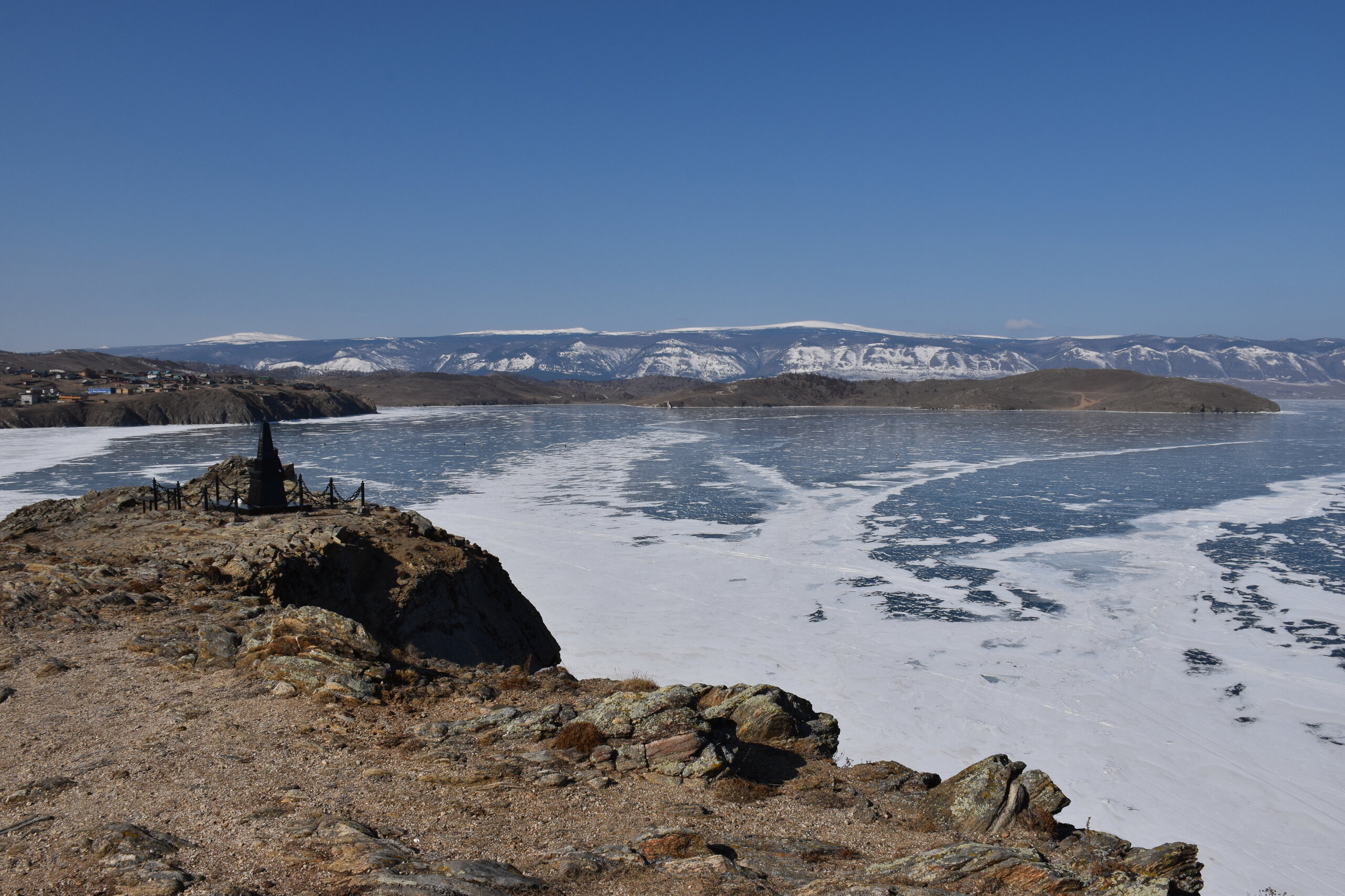 И вот мы по льду дошли до острова Ольхон. Летом именно здесь переправа и жизнь кипит. Сейчас же тишина! Полезли в горку ради красивых видов! Подъем небольшой, для меня совсем несложный (после треккингов на Кавказе).