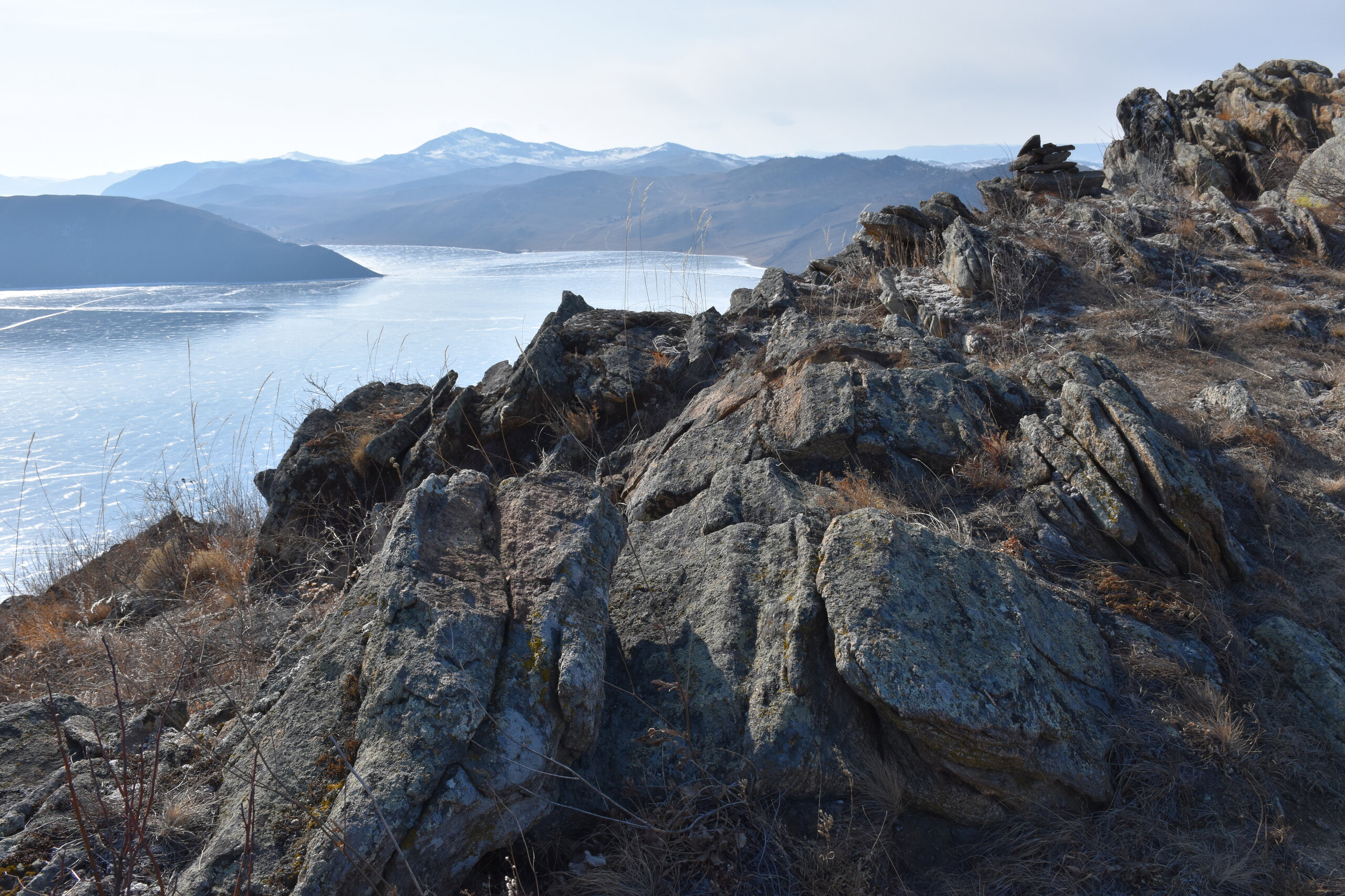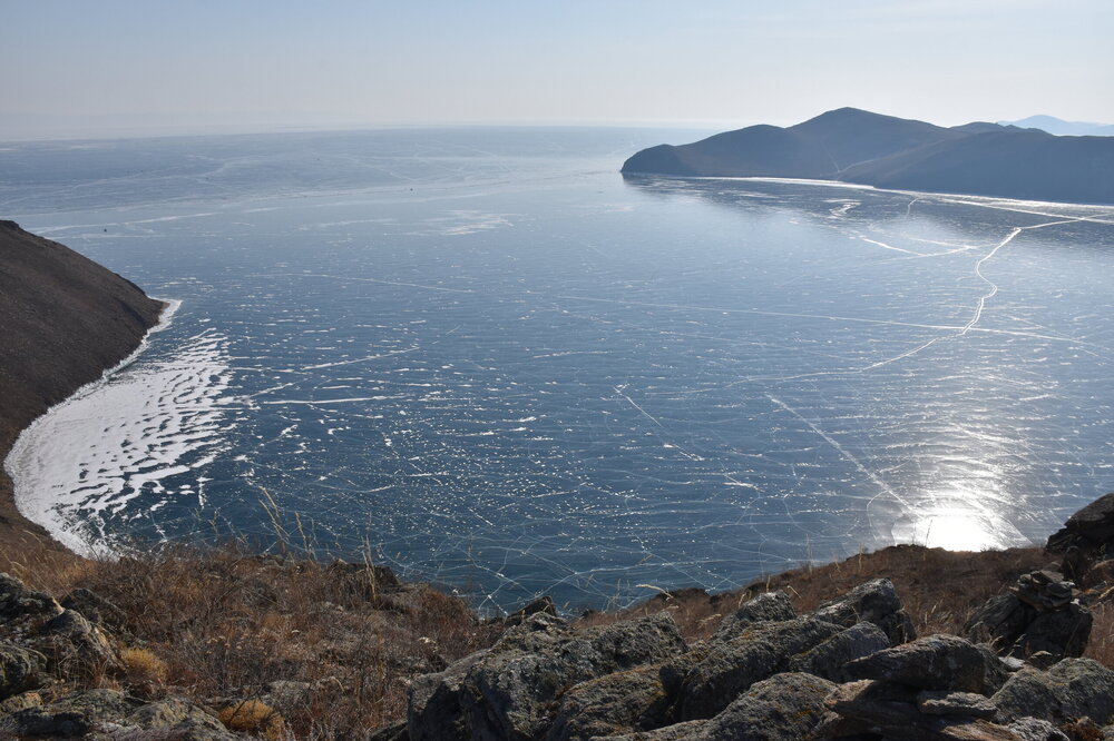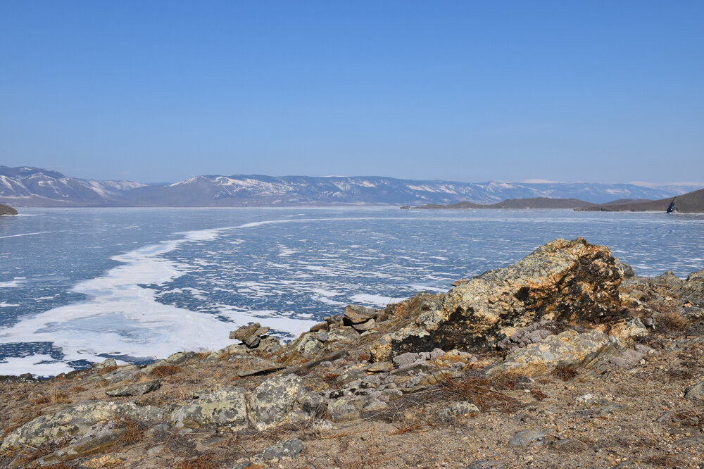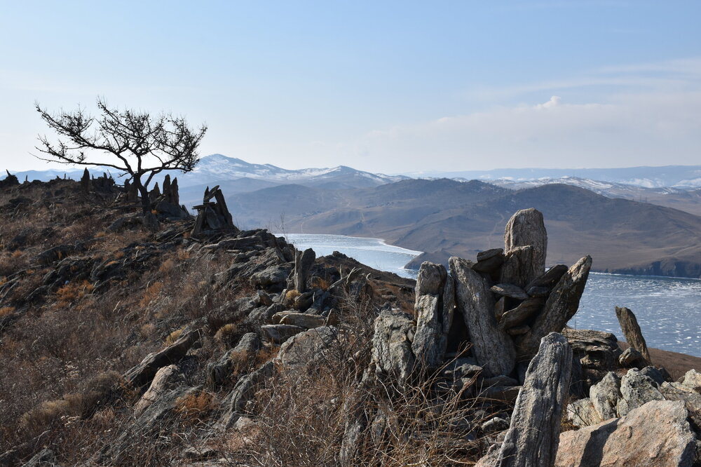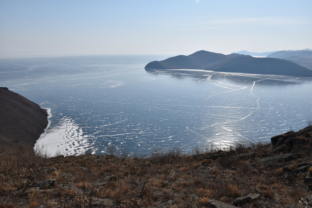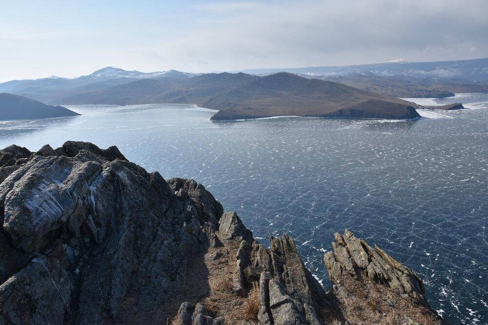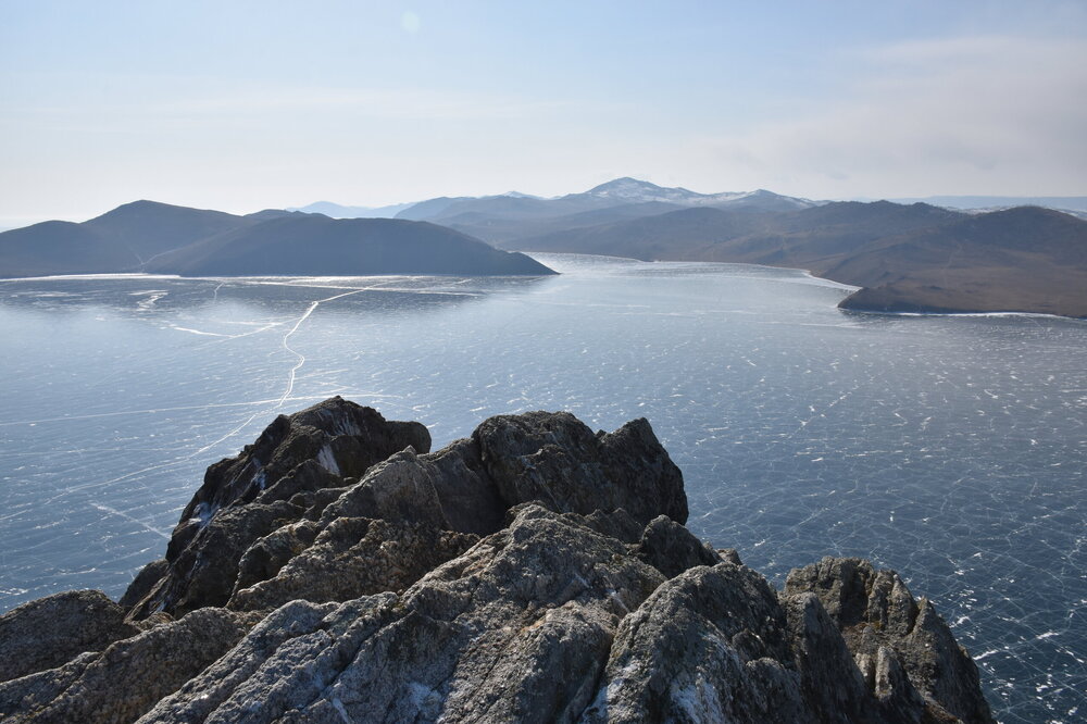 С мыса Уншуй мы впервые увидили Большое море Байкала. Так неофициально называют самую широкую часть озера. Здесь чувствуется вся мощь Байкала! На противоположном берегу в дымке Бурятия. Скоро я увижу и восточные берег Байкала!