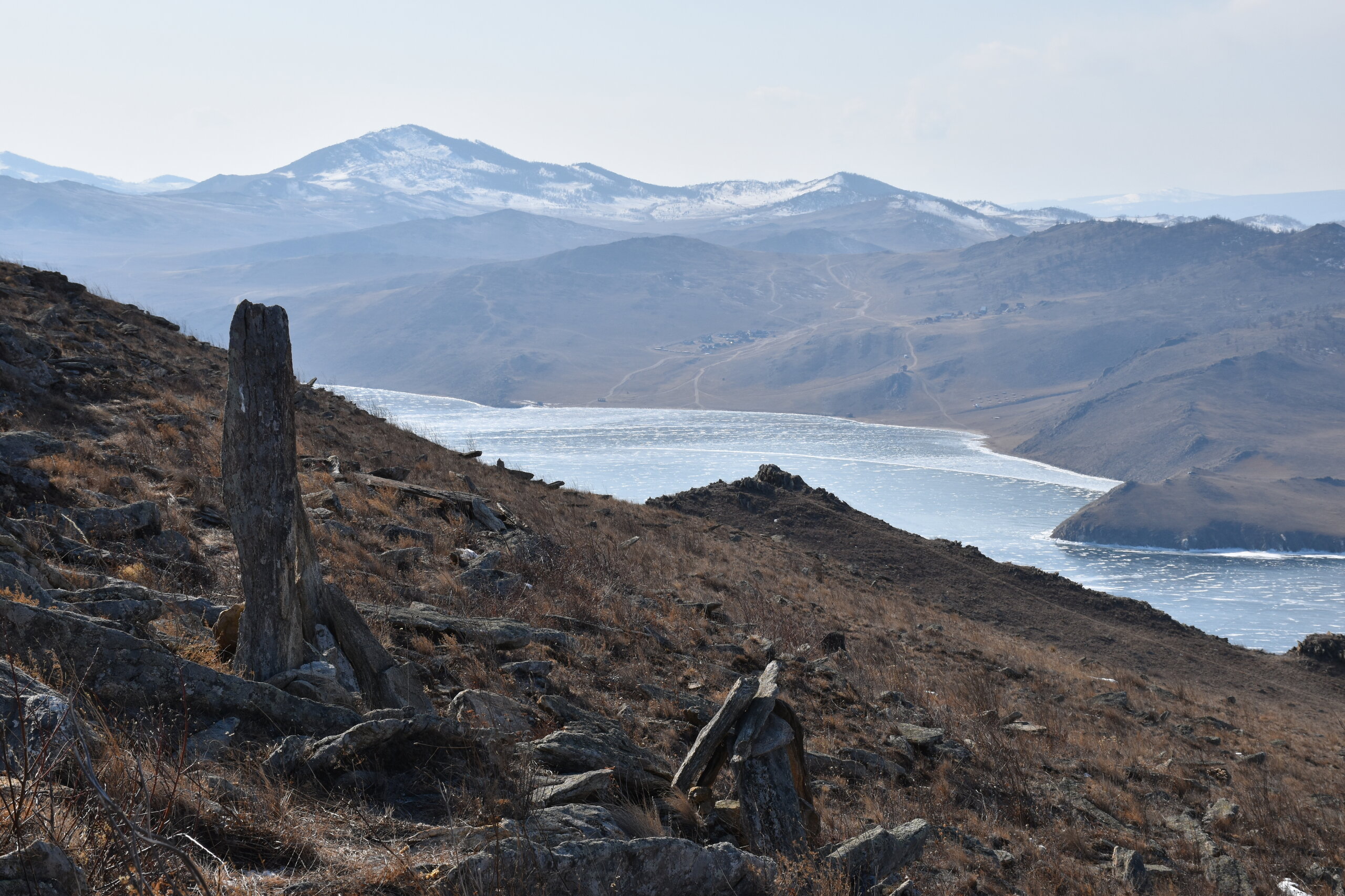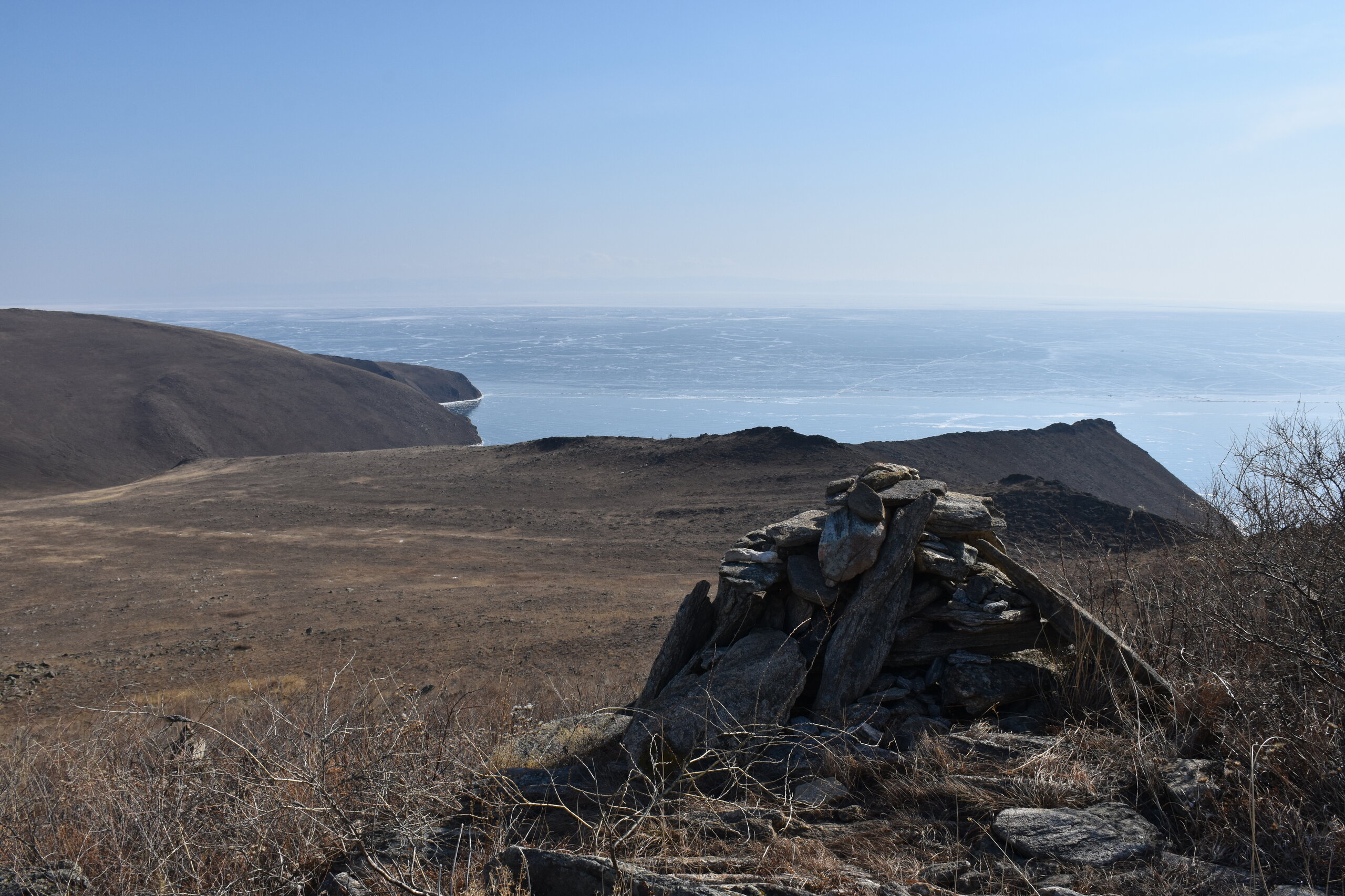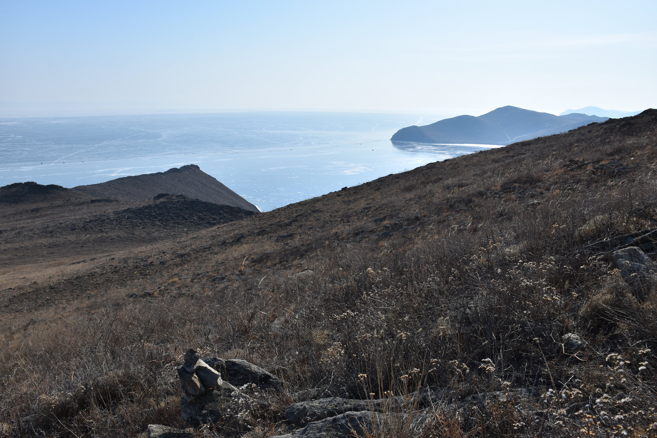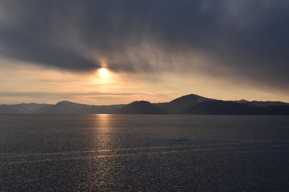 С мыса Уншуй мы впервые увидили Большое море Байкала. Так неофициально называют самую широкую часть озера. Здесь чувствуется вся мощь Байкала! На противоположном берегу в дымке Бурятия. Скоро я увижу и восточные берег Байкала!