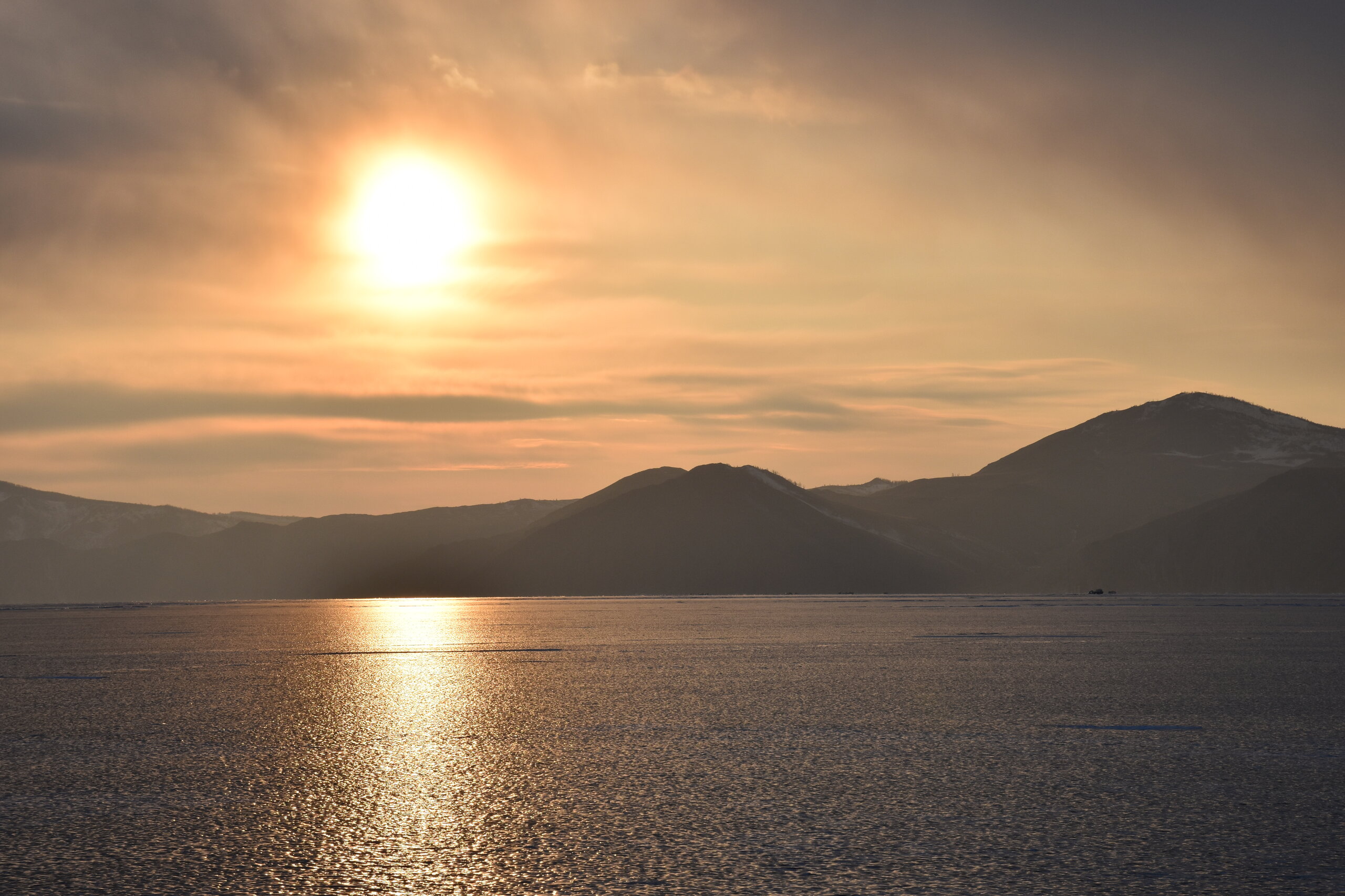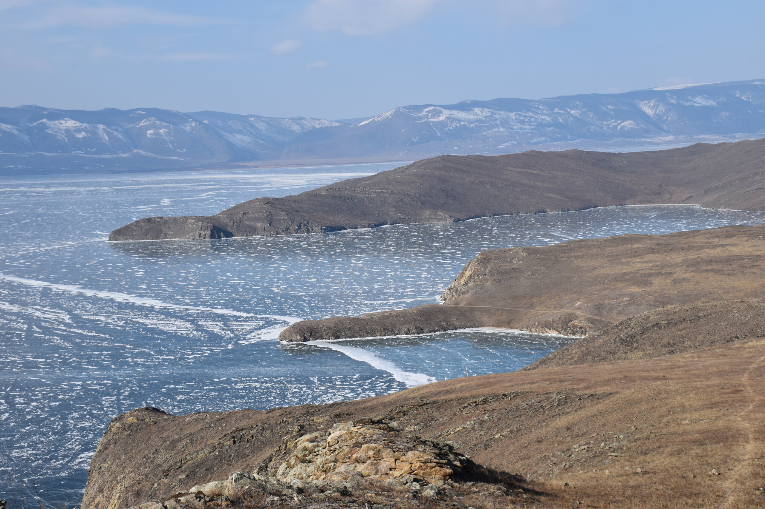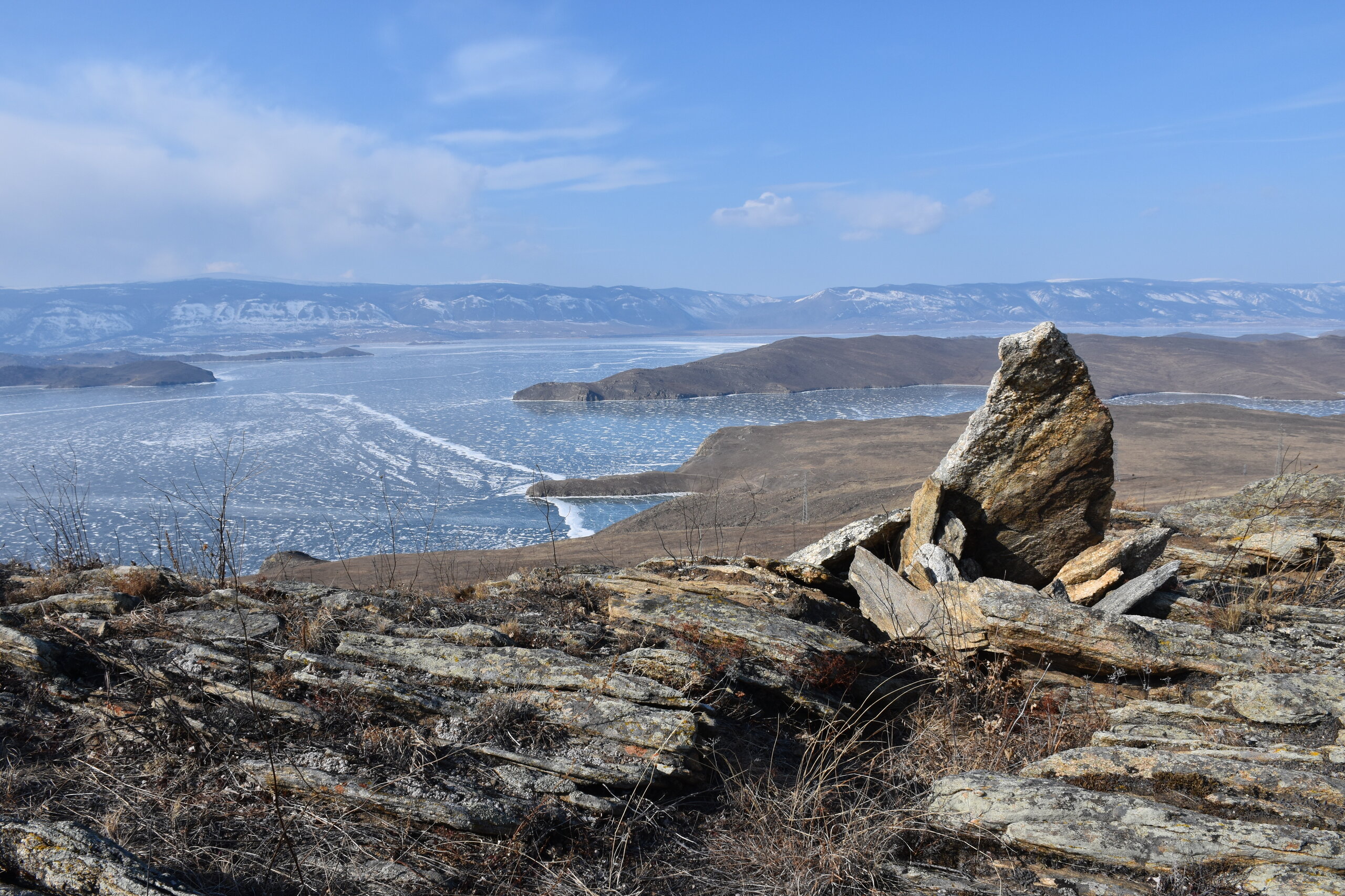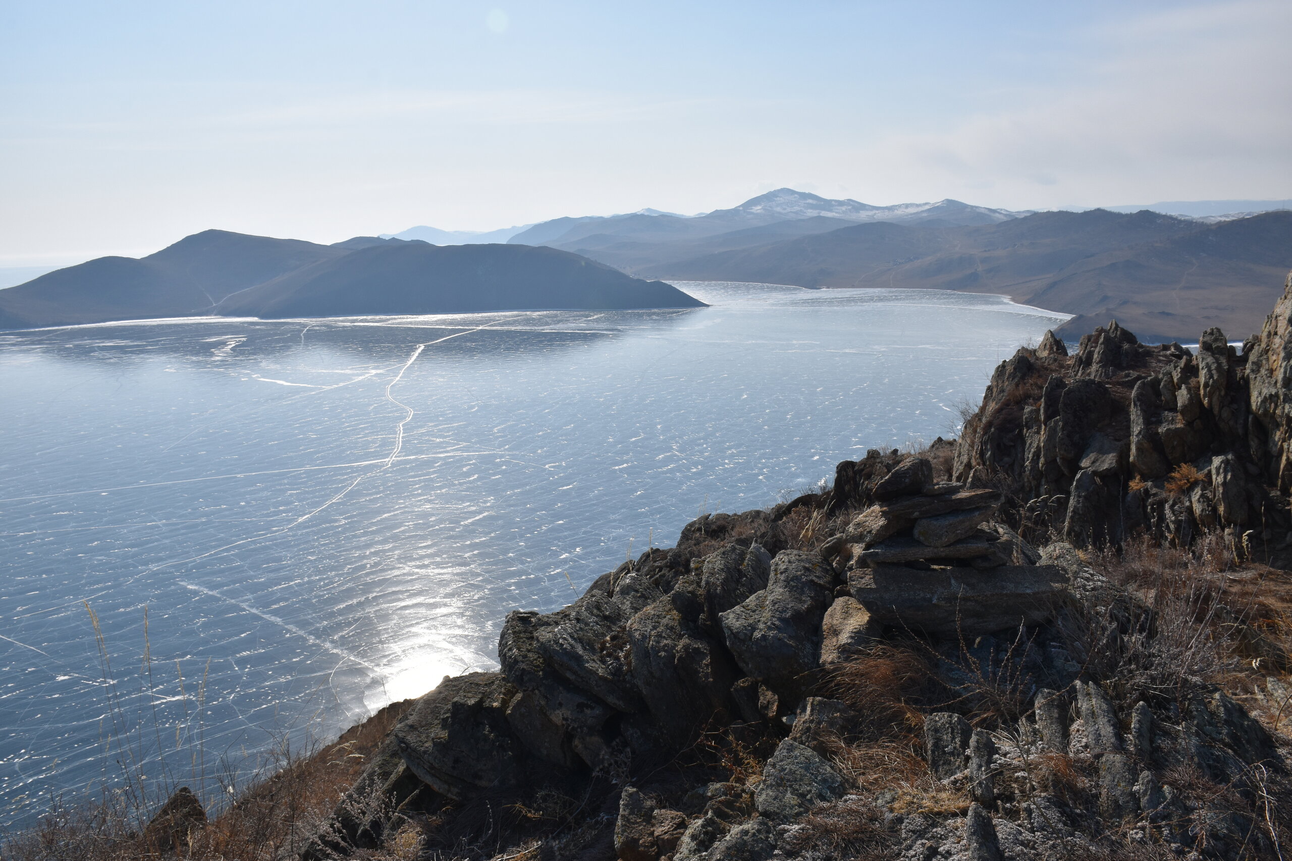 С мыса Уншуй мы впервые увидили Большое море Байкала. Так неофициально называют самую широкую часть озера. Здесь чувствуется вся мощь Байкала! На противоположном берегу в дымке Бурятия. Скоро я увижу и восточные берег Байкала!