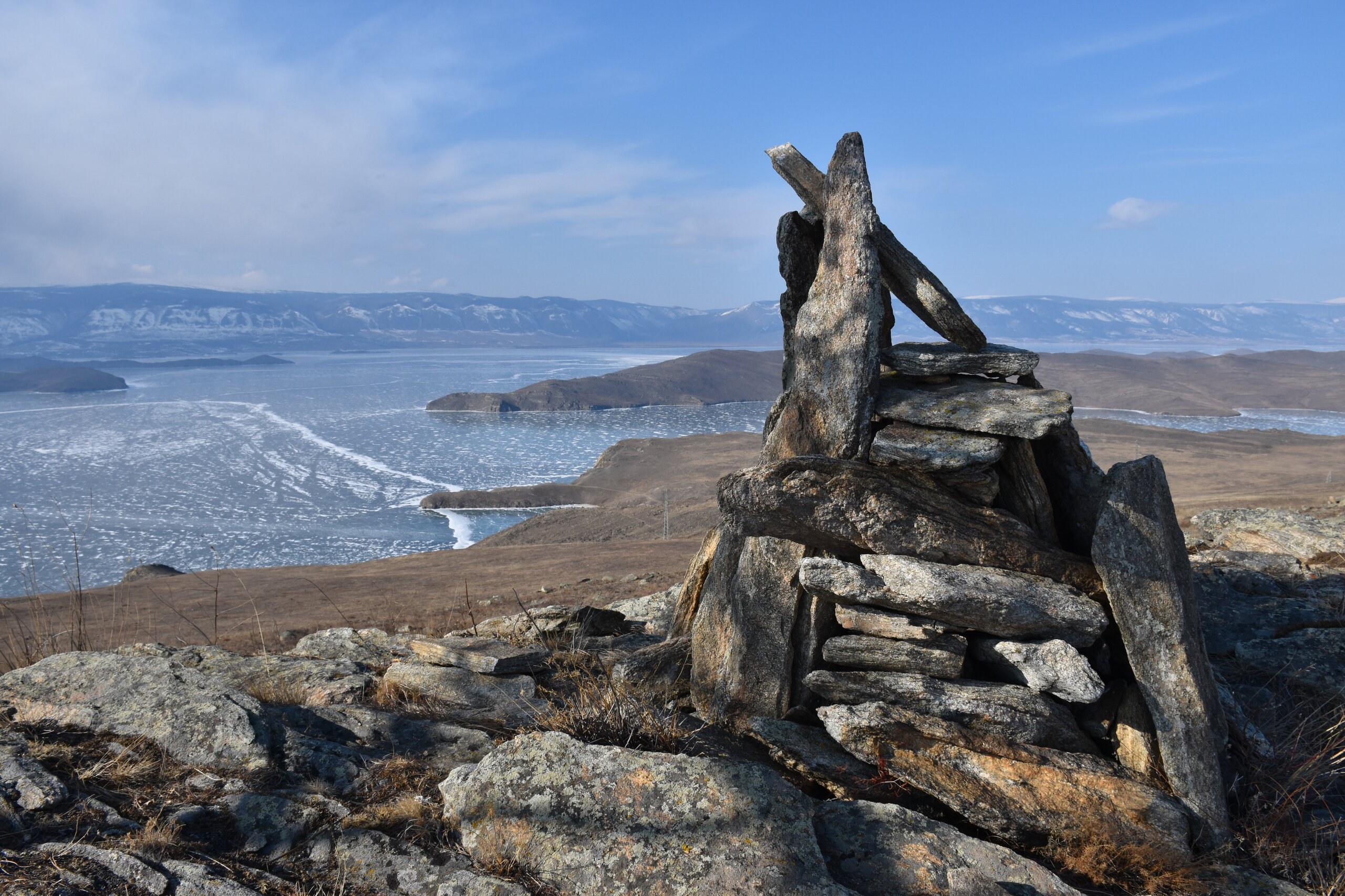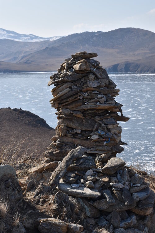 Самые красивые виды с мыса Уншуй! Мыс Уншуй — скалистый мыс, самая южная точка острова Ольхон в Ольхонском районе Иркутской области. Название произошло от бурятского слова «уншен», что означает «сирота», «одинокий». Мыс Уншуй находится в юго-восточной оконечности острова. От материка Ольхон отделён проливом Ольхонские ворота. С одной стороны, пролив уходит в Малое море, с другой — в основную часть Байкала. Некоторые особенности мыса: · Виден издалека как чёрная метка, разделяющая горизонт на рыже-коричневую правую сторону — остров Ольхон и серо-голубую левую сторону со снежными горами на лесистых склонах материка. · Берег Ольхона в этом месте безлесый, склоны холмов покрыты рыжей травой, цвет скал тоже рыжий. · У южного входа пролива, в окрестностях мысов Уншуй и Крест, глубина пролива может достигать 100 метров. Мыс Уншуй — место, которое привлекает туристов, особенно в зимний сезон. От мыса, как правило, идёт становая трещина, характеризующаяся торосами, иногда открытой водой.