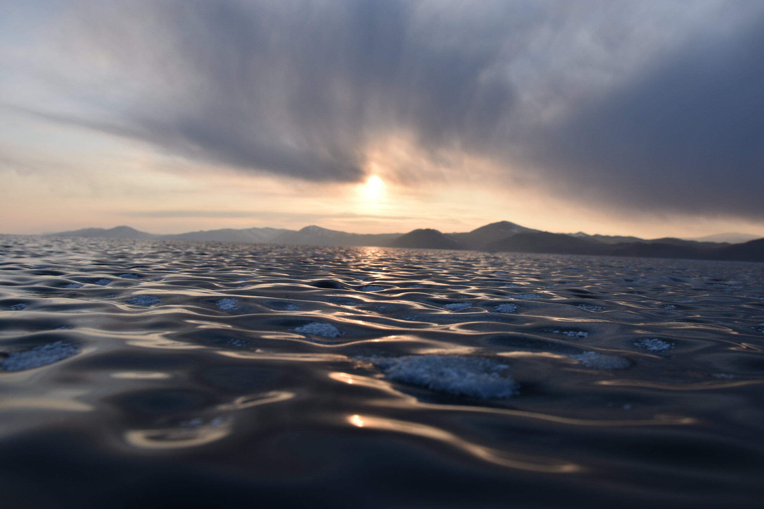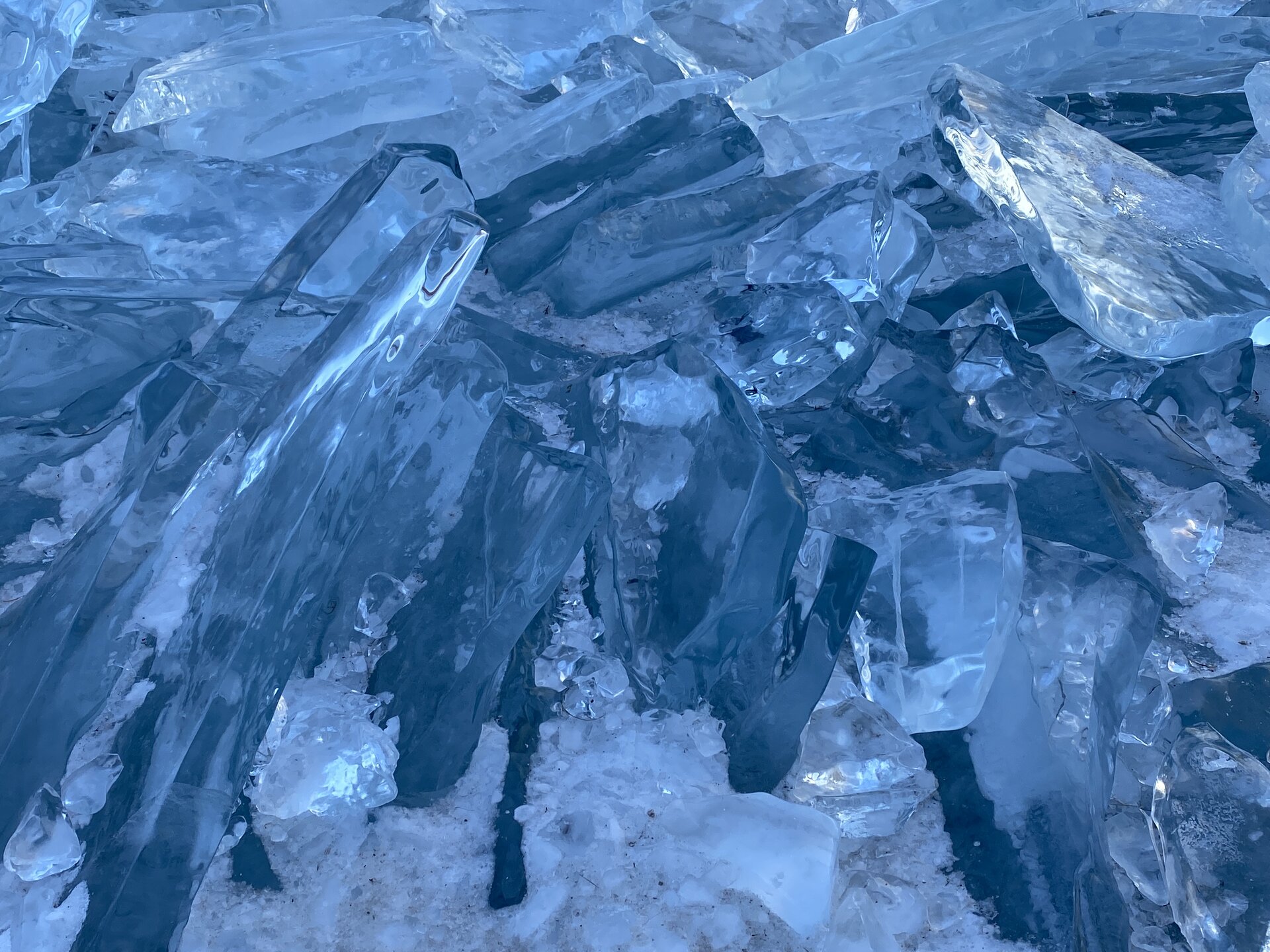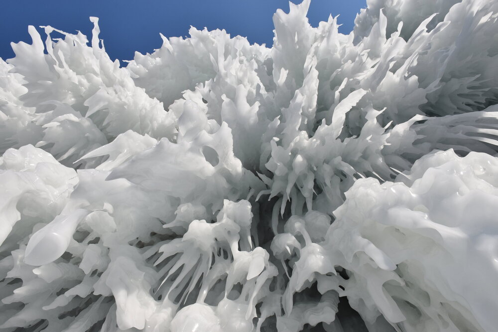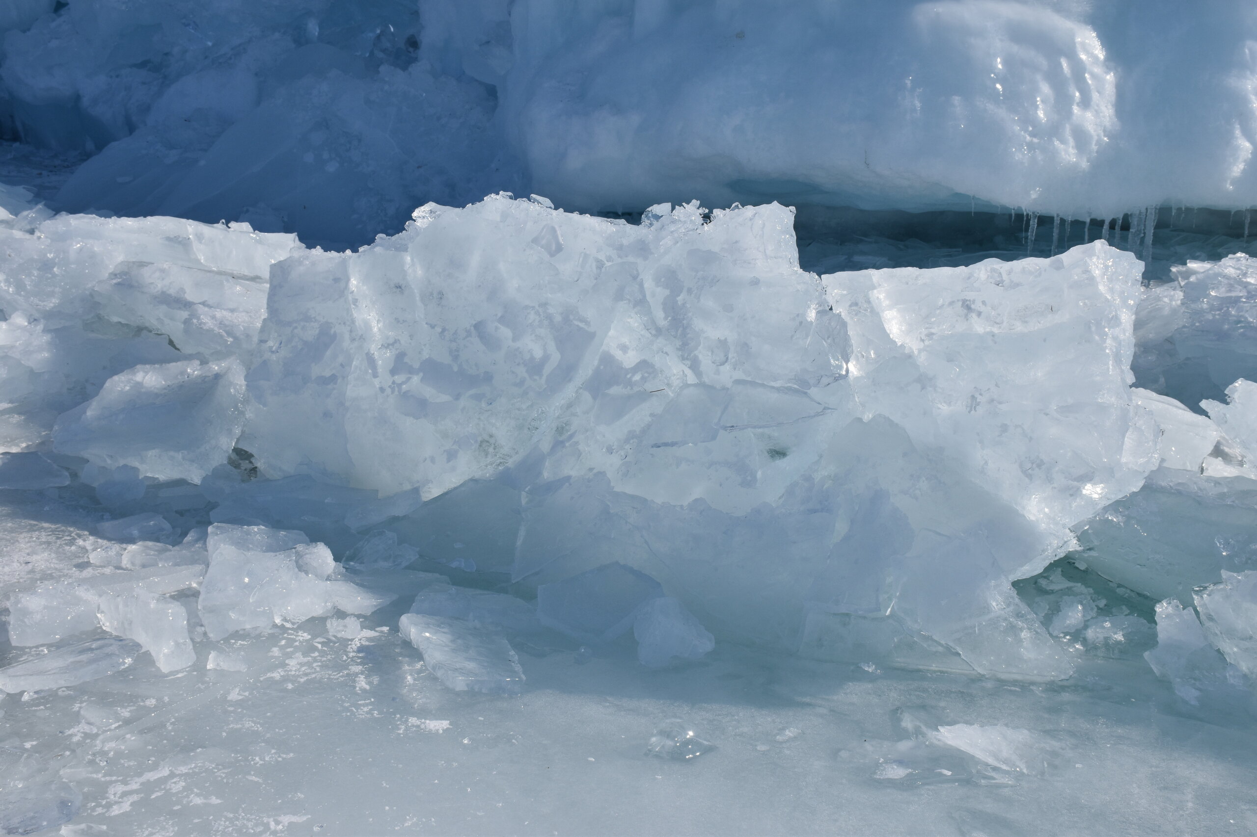 Здесь мы впервые увидели ледяные торосы — нагромождения льдин высотой до 10–20 метров. Торосы состоят из крупных кусков льдин и мелких осколков. На закате глыбы окрашиваются в розовые и золотые оттенки, ночью становятся серебристыми. Каждая плита имеет уникальную форму: от ровных кубов до причудливых обломков, напоминающих скульптуры. Торосы появляются, в основном, в начале зимы и ближе к весне. При этом, глыбы, сформированные зимой, крупнее весенних. Иногда можно встретить торосы изумительного бирюзового цвета, но чаще всего они имеют легкий, голубой оттенок.