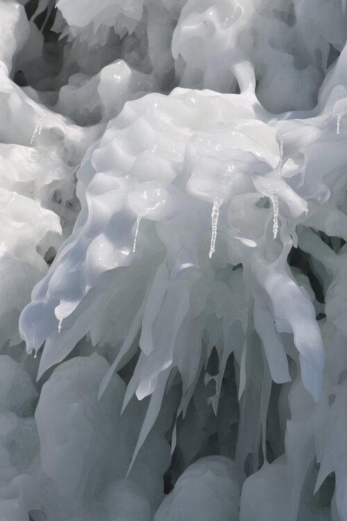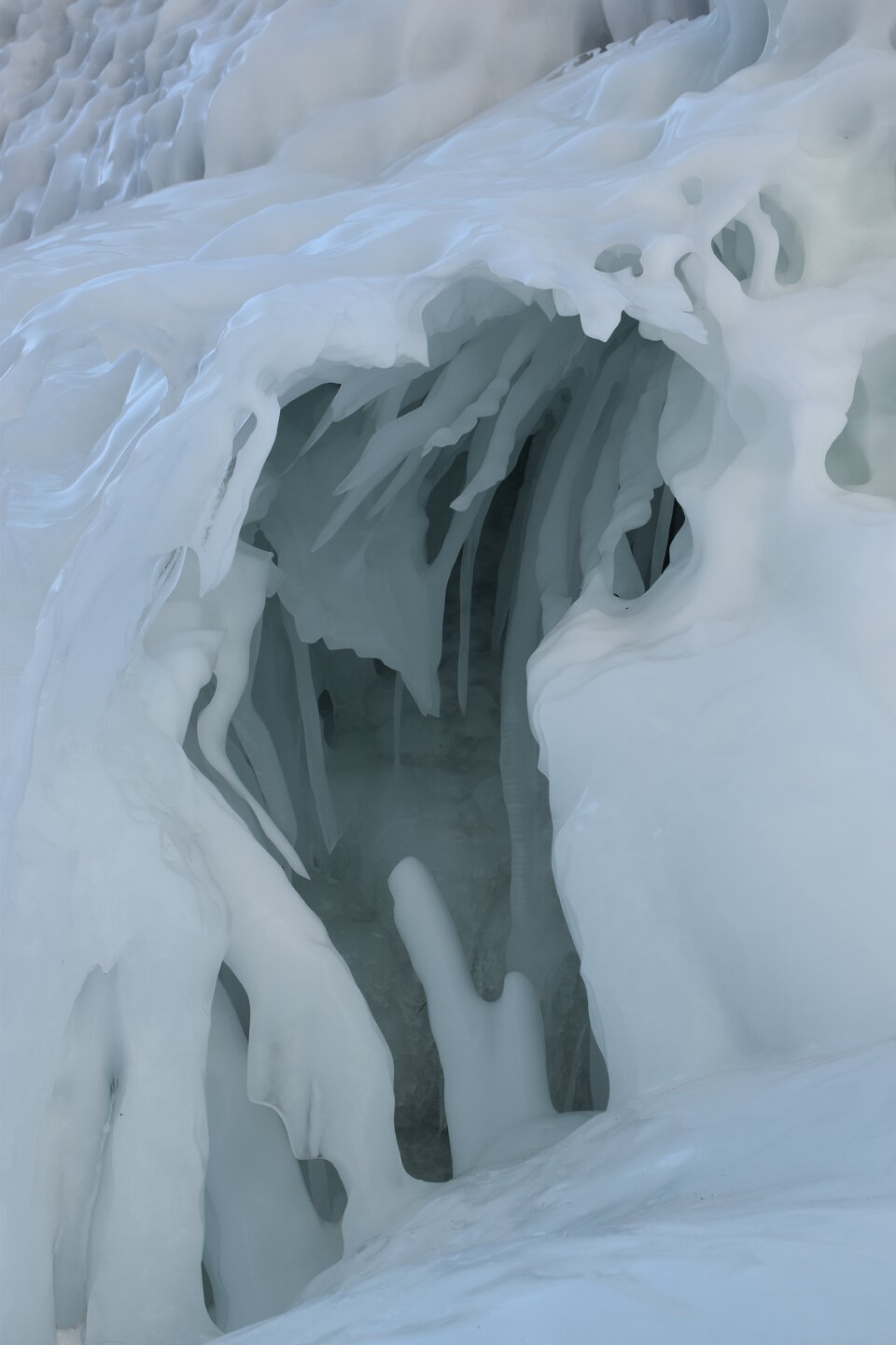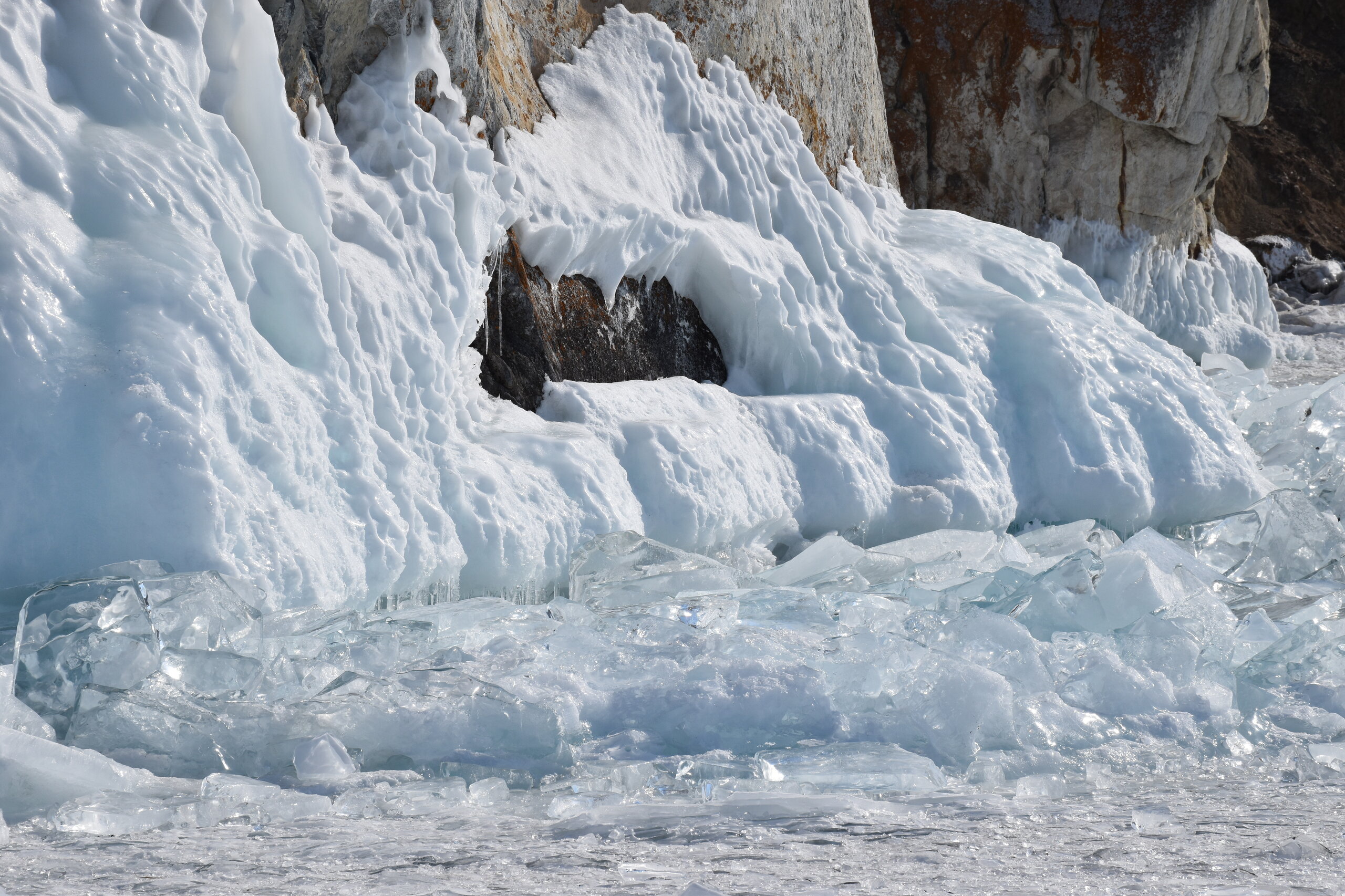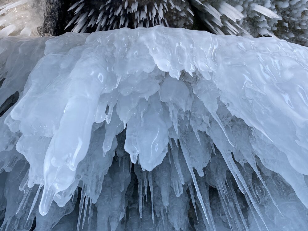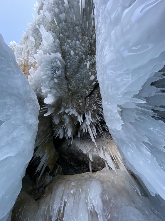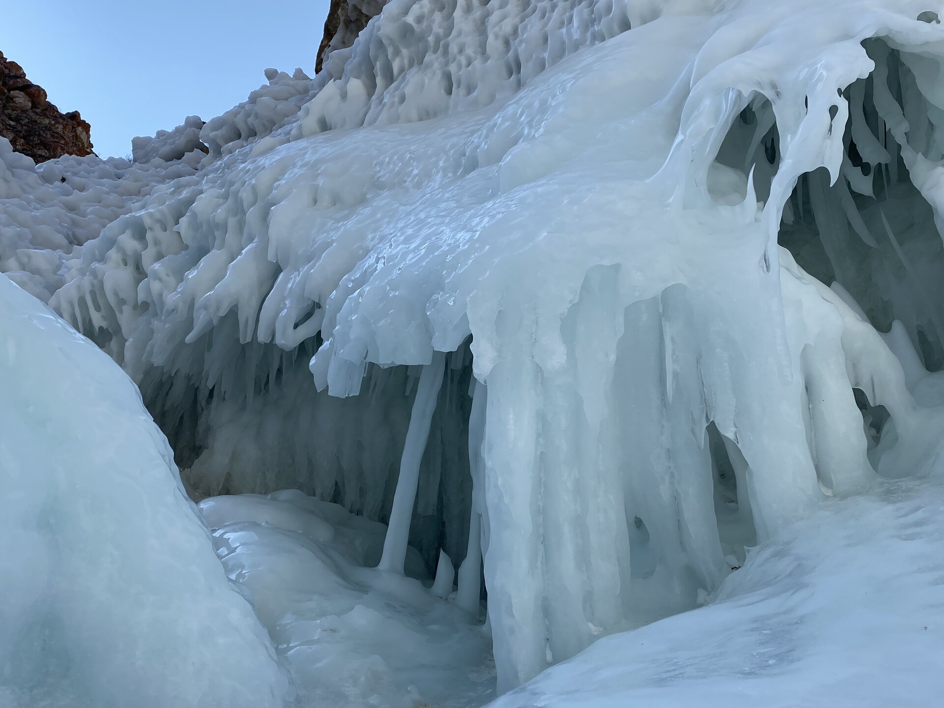 Имеются здесь и сказочные гроты, и игольчатые сокуи. Добираться только до них через нагромождение льда очень сложно.