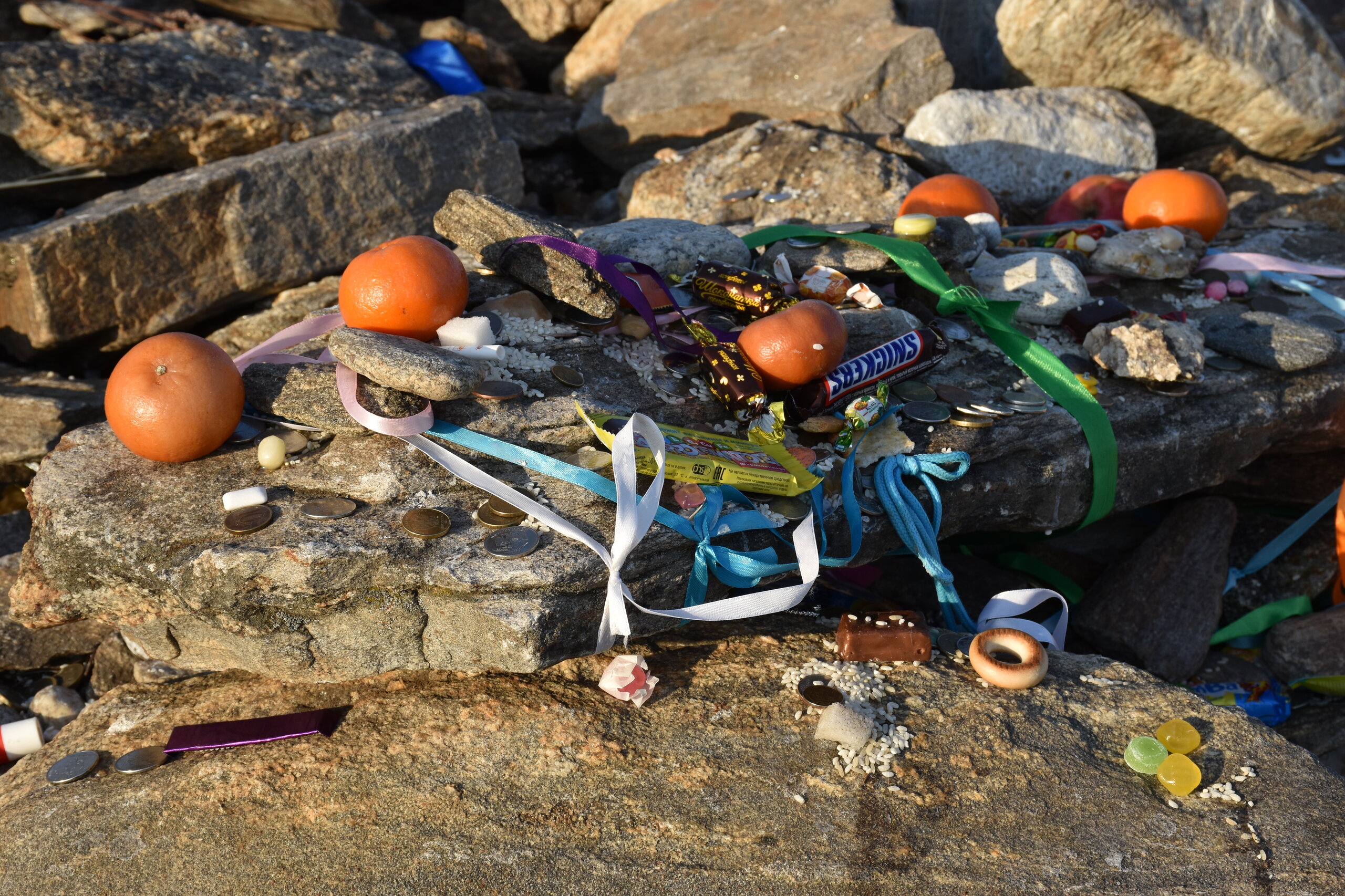 Еще один интересный мыс – Саган-Хушун. Это бурятское название, на русском означает «белый мыс». Назвали его так из-за светлого мрамора, из которого сложены скалы. Второе название мыса: Три брата, вполне вероятно, это название связано с тремя скалами, расположенными на мысу. Существует легенда про трех братьев, которые ослушались своего отца-шамана, за что были превращены в каменные глыбы. Еще одним интересным фактом будет следующая справка: при раскопках московский профессор Фёдор Фёдорович Талыгин нашел в этой пещере небольшой деревянный ящик с орлом, судя по всему захороненный по одному из местных древних обычаев. Саган-Хушун представляет собой живописный скалистый мыс, протяженность которого около 1 км. Белые мраморные скалы густо заросли лишайниками красного цвета. Мыс Саган-Хушун включен во все пешие и водные прогулки по Ольхону. Между мысами Уюга и Цаган-Хушун расположился Курминский залив. Он по праву считается одним из самых теплых на Байкале. Летом температура воды может достигать 22 градусов. У залива галечный берег, на котором приятно отдохнуть. Удачливые туристы иногда находят здесь мраморные голыши. Зимой уступы скалы облачаются в белоснежное одеяние. Края мыса покрываются ледяными наплесками, а в зеркальной глади замерзшего озера отражается сами скалы. В сочетании с синим небом Байкала формируется неповторимый пейзаж, который так и хочется запечатлеть на фото.