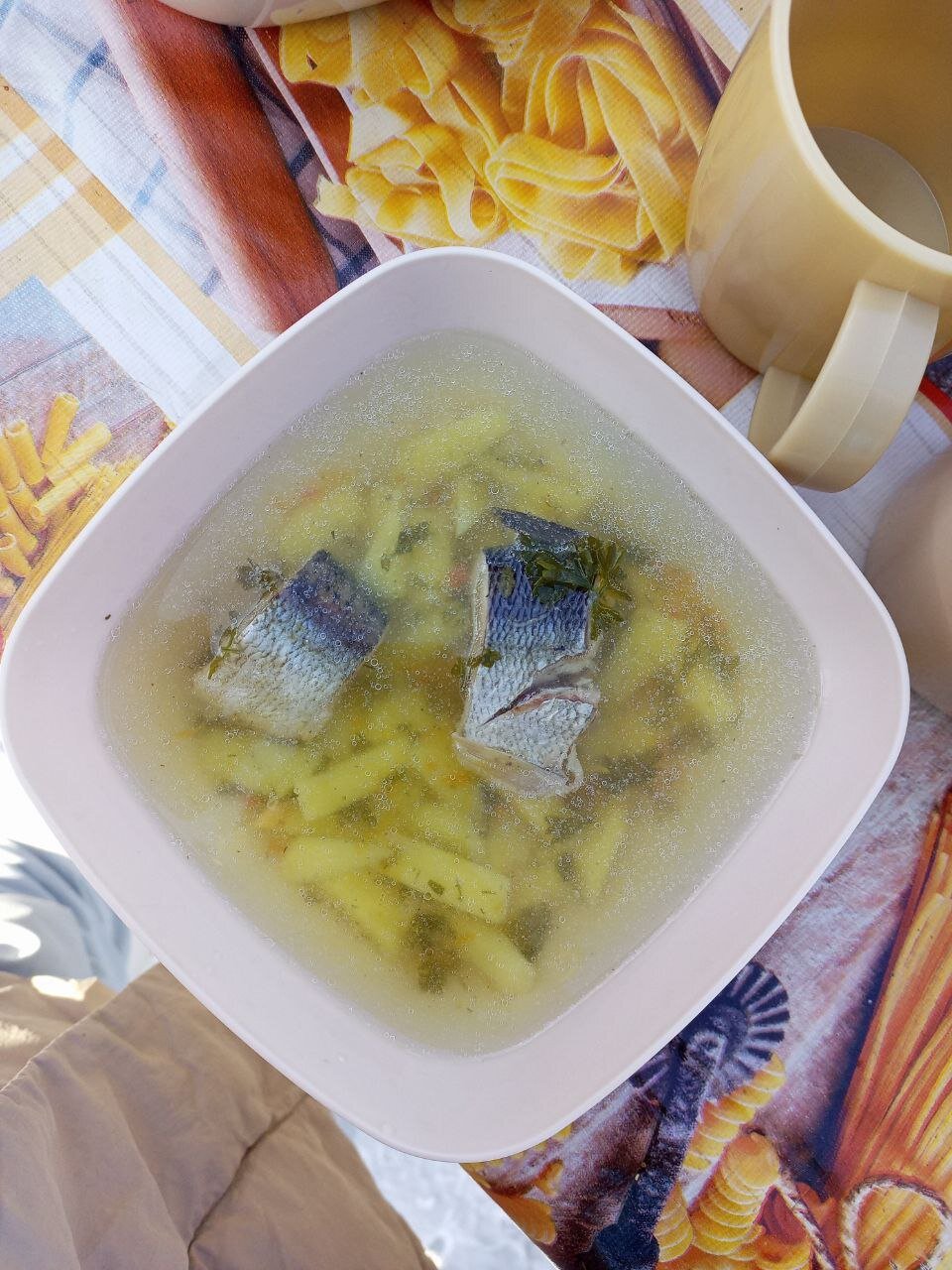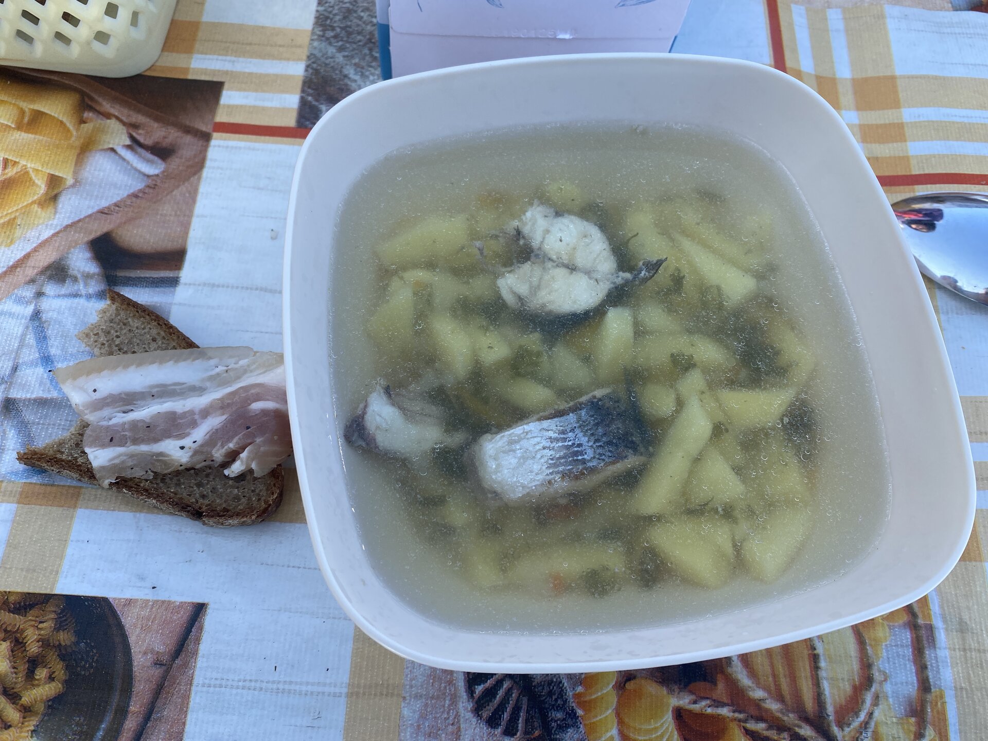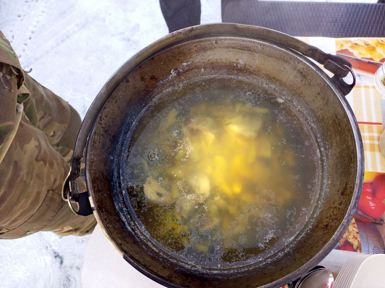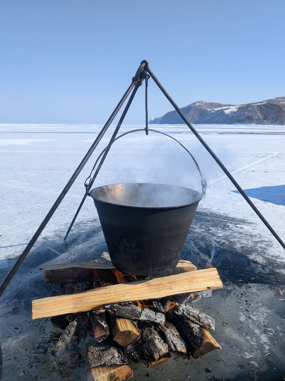 На обед сегодня уха. Ее традиционно готовят водители буханок на экскурсиях к мысу Хобой. Горячий суп на морозе - лучший обед! Вкусно!!!
