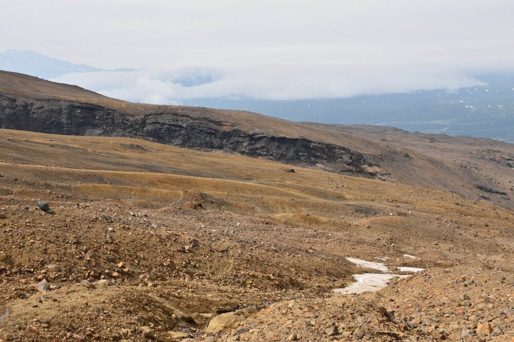 На Мутновском мы также встречали цветочки, но здесь их меньше в отличие от Горелого вулкана. Мы дошли до места высадки из вахтовки, желающие сходили за камушек. Всех дождались и отправились к еще одной точке сегодняшнего маршрута - каньону Опасный.