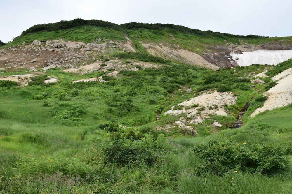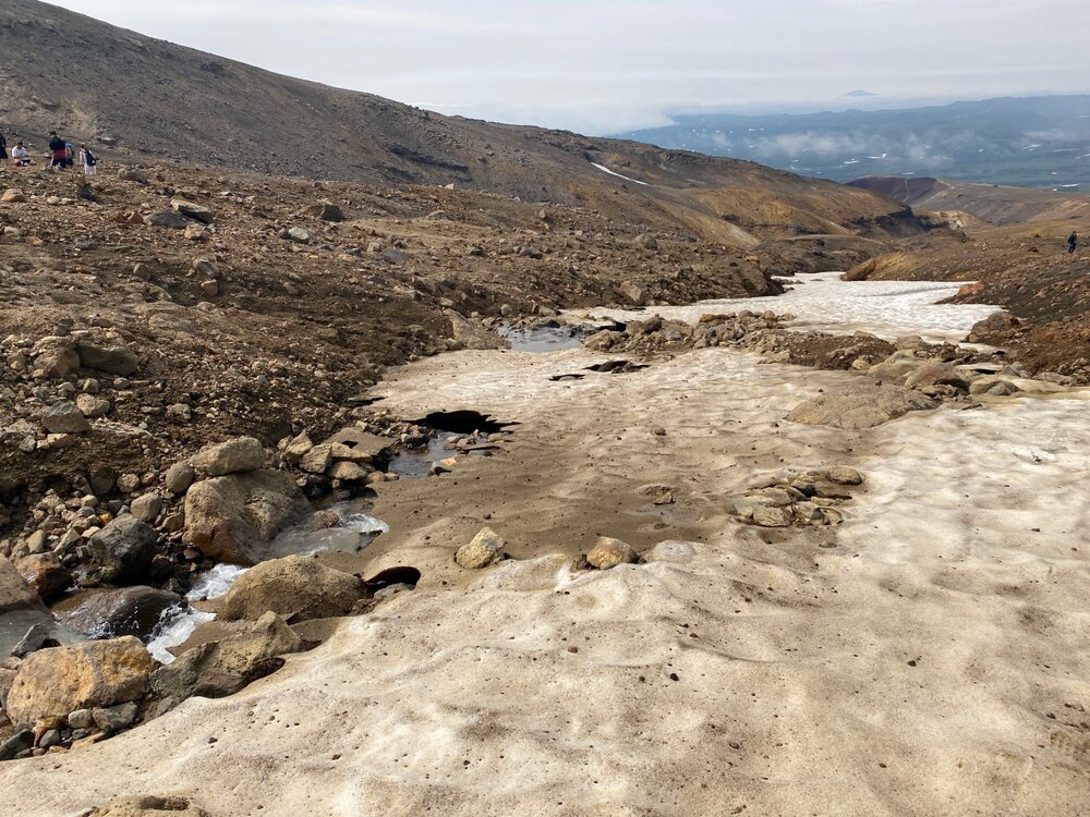 Удивительно, что даже в августе на Камчатке есть снег!!! Снег и зеленая трава!!! К концу тура меня этот факт уже не удивлял)