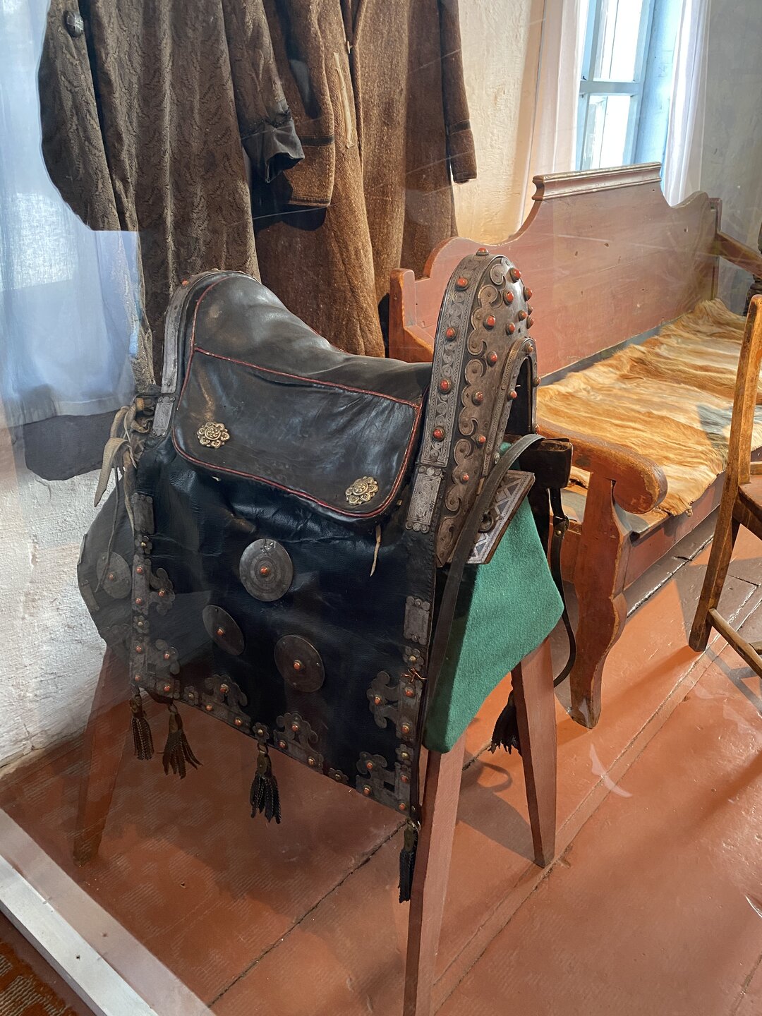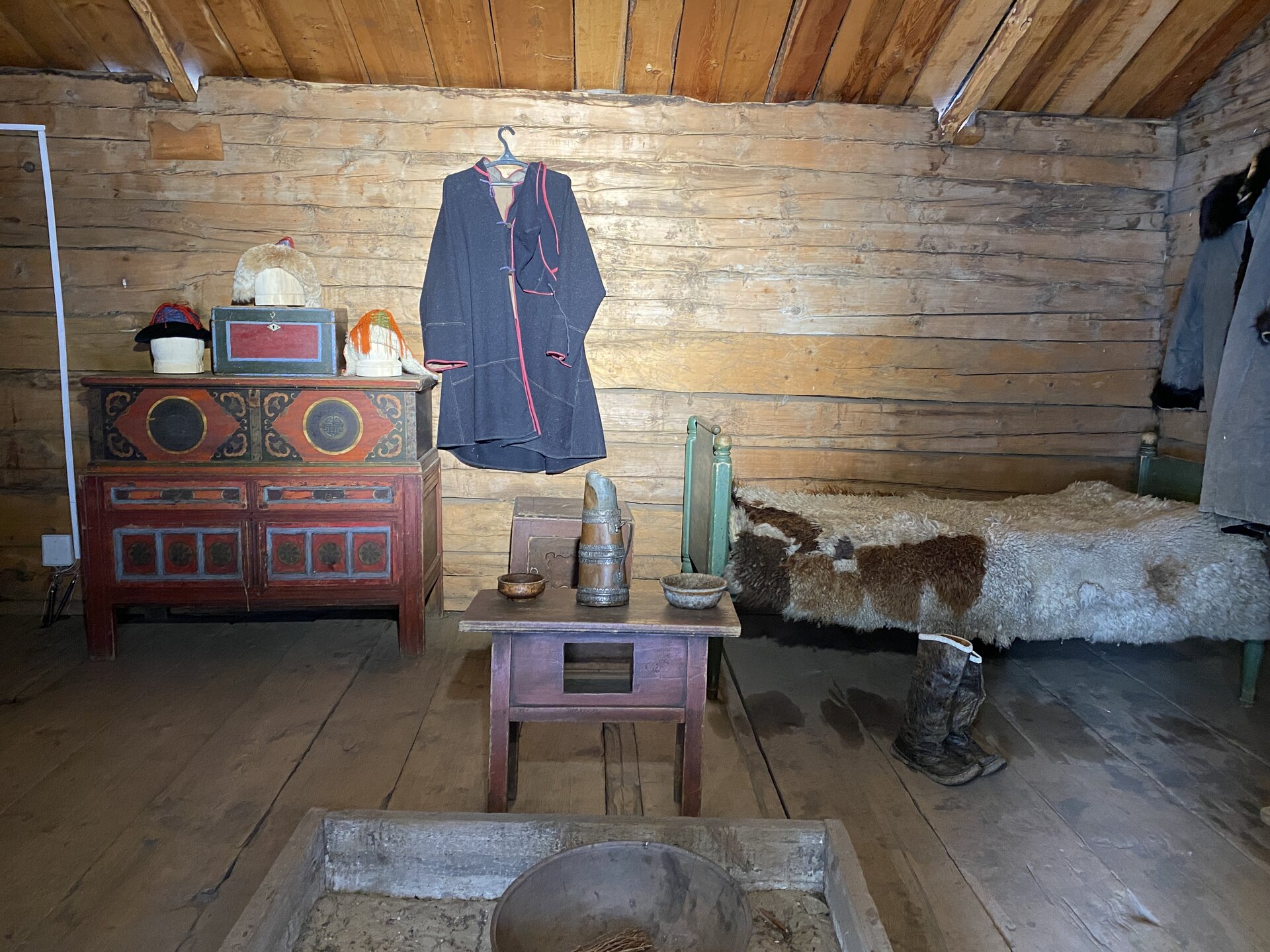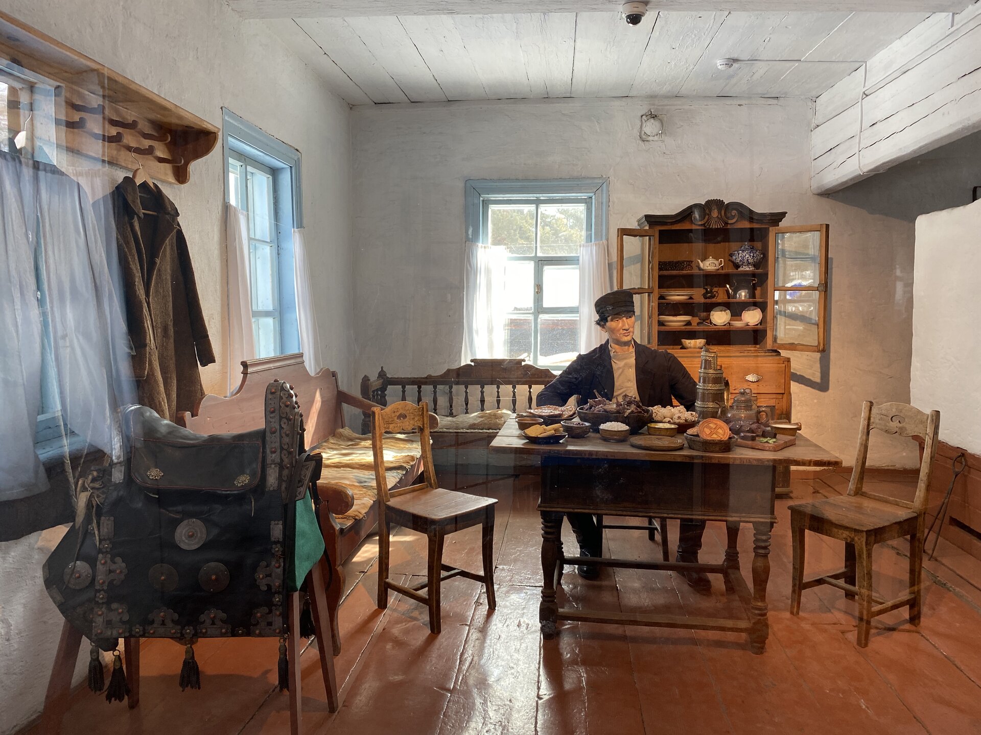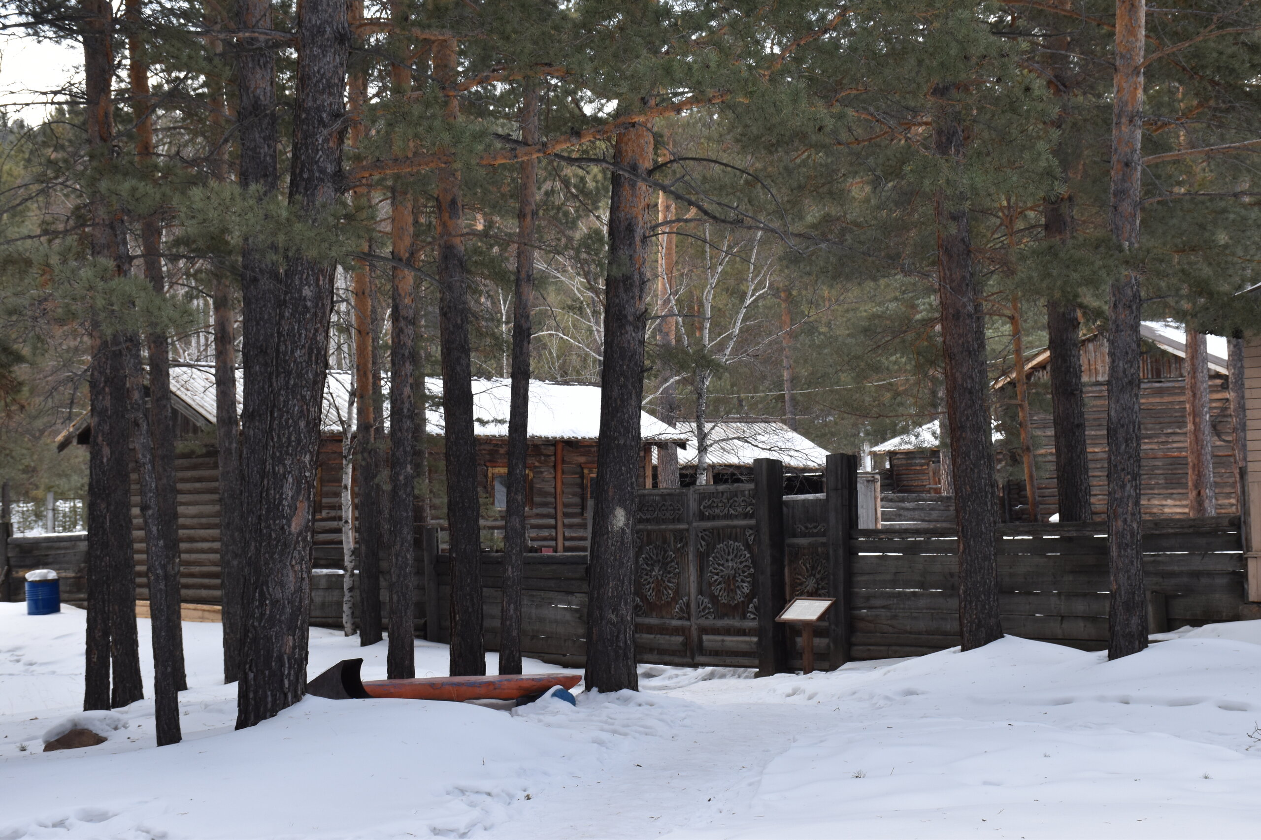 Усадьба Сафронова. Дом-зимник был построен в 1892 г. Он является широко распространенным типом жилищ зажиточных крестьян-бурят, занимавшихся земледелием наряду со скотоводством. Интерьер дома характеризует как традиционный бытовой уклад, так и значительные новшества, привнесенные русскими крестьянами: русская печь, самовары, посуда из фарфора и фаянса, образцы мебели – добротные шкафы, стол из дуба, этажерки, «венские» стулья. На стенах дома вывешены семейные фотографии в рамке, в углу висит христианская икона. На столе представлена традиционная кухня бурят: буузы, бухлер, саламат, боовы. На самодельных деревянных диванах (сапа) лежат хубсары – коврики, сшитые из камусов диких и домашних животных – телячьих, жеребячьих, овечьих, оленьих. На сундуке лежит необычный ковер, сотканный на ручном станке из конских волос – таар, с полосатым орнаментом. Рядом находится седло, богато украшенное кораллами. Бурятский традиционный костюм: