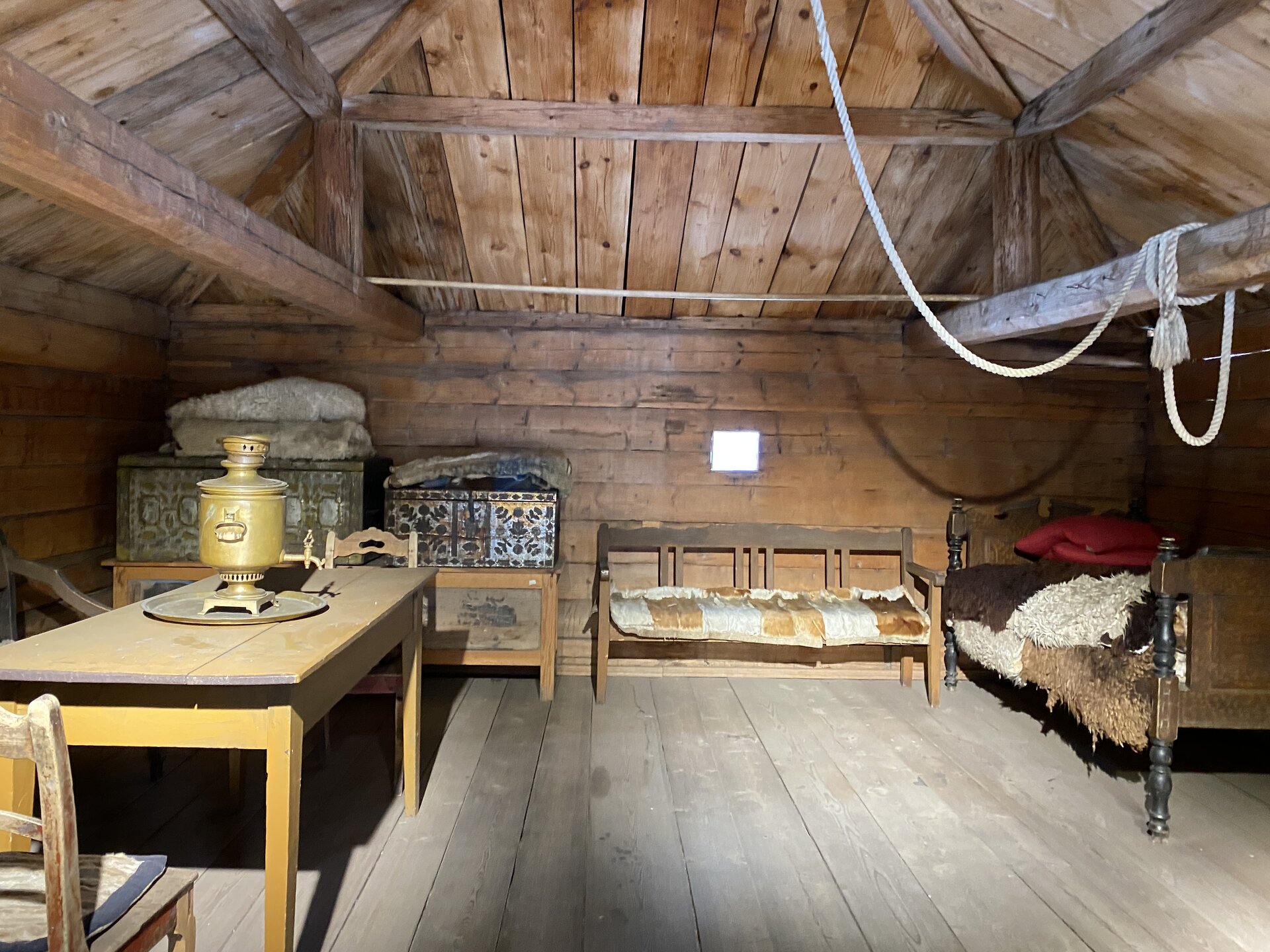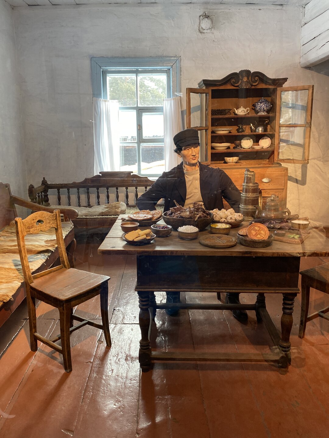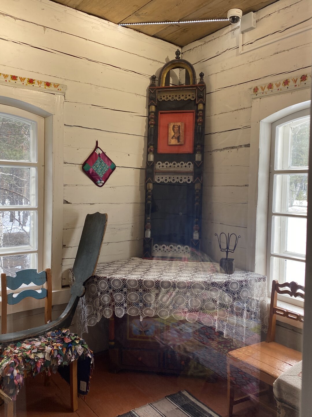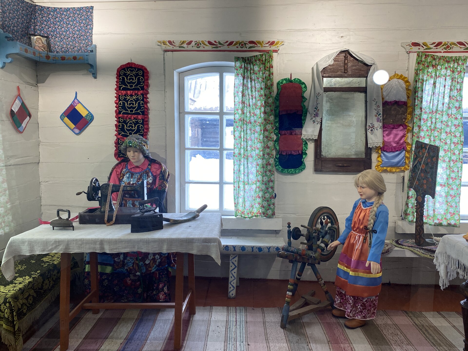 Дом-зимник Забайкальский был построен в 1912 г. русским плотником Степаном Зуевым и хозяином дома Ринчином Цыремпиловым. Перевезен из села Арбижил Заиграевского района. Зимник представляет собой большое прямоугольное помещение с окнами, выходящими на юг и запад. К дому пристроена вторая изба, имеющая подсобное значение, меньшая по размеру и соединенная с первым холодными сенями. Высокое крытое крыльцо с навесом и перилами пристроено ко входу дома с южной стороны. Такие дома, рубленые по русскому образцу, становятся основным типом жилищ забайкальских зажиточных бурят в конце XIX – начале XX вв. В зимнике воссоздан интерьер избы зажиточного бурята конца XIX – начала XX вв. Кирпичная печь русского образца, разделяющая дом на две условные половины, являлась новшеством для того времени. В северном углу дома расположена сакральная часть жилища забайкальских бурят – буддийская божница (гунгарбаа), состоящая из комплекта деревянных шкафов и столов с яркой красочной росписью по лицевой части. В застекленном шкафу находятся иконы на ткани (танка) с изображением разных божеств. На алтарный стол выставлены культовые атрибуты, необходимые при исполнении буддийских ритуалов. Западная часть дома (барун тала) – почетная часть, где встречают гостей. Здесь находятся сундуки с красочной росписью по лицевой стороне. Это «мужская» половина дома, где должен восседать хозяин дома и гости, которых усаживали на «жабдан» – низкое и удобное сидение с множеством шерстяных потников (шэрдэк). За сундуками расположена кровать хозяев дома. Все постельные принадлежности – овчинные одеяла (хунжэл), катаные из шерсти потники (шэрдэк), подголовник (дэрэ) – были изготовлены руками хозяйки дома, что требовало большого усердия и терпения. Заглядываем в различные юрты. Казачий или русский старожильческий рассказывает о типичной жизни Бурятии в XIX веке, когда общество расслоилось на пашенных крестьян и казачье сословие. Небольшой комплекс, состоящий всего из двух усадеб, некогда принадлежащих пашенному крестьянину и атаману местных казаков. Оба дома были вывезены из Батурина и Клочнёва вместе с хозяйственными постройками. Усадьбы датированы 1880 – 1919 годами. В этом музейном секторе также виднеется небольшая церквушка с конусообразной малахитовой крышей и жемчужно-серым куполом, увенчанным огромным крестом.