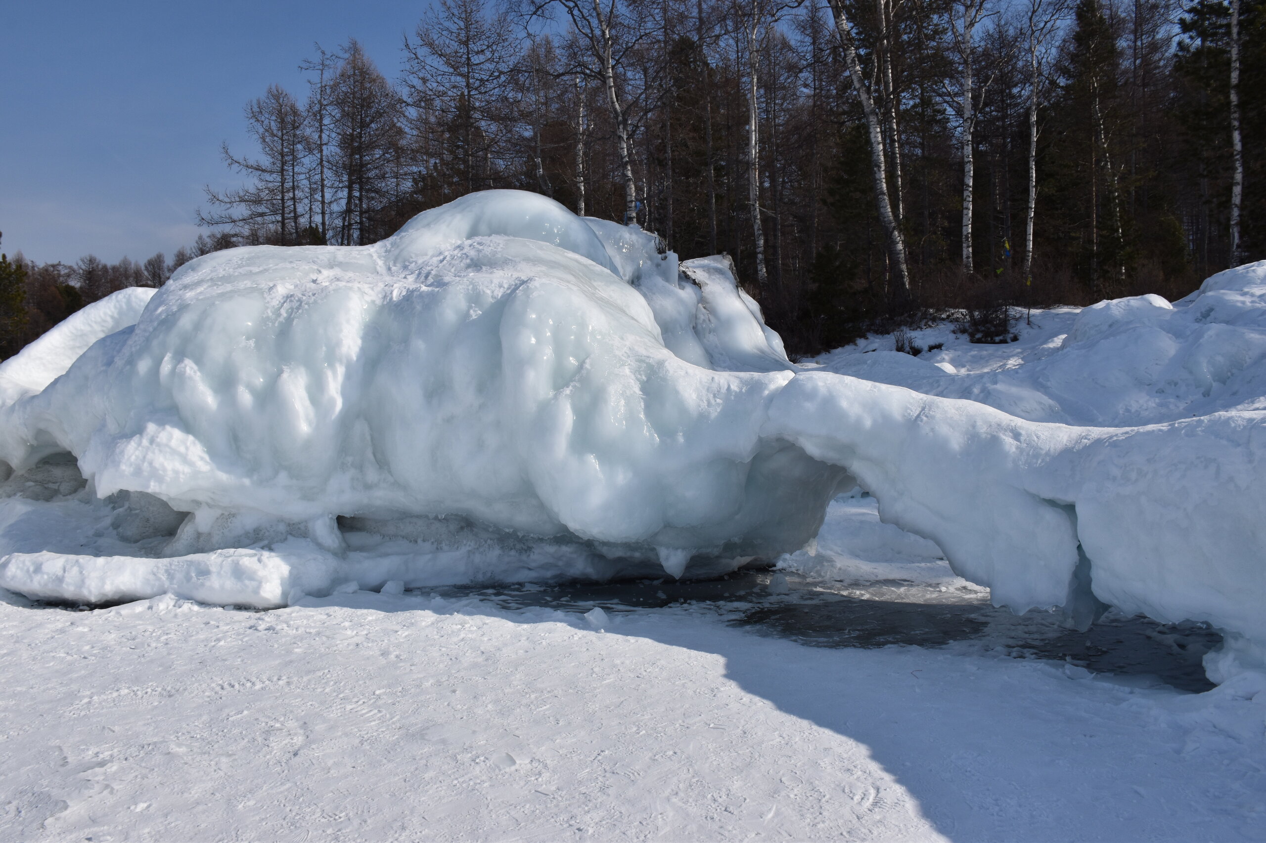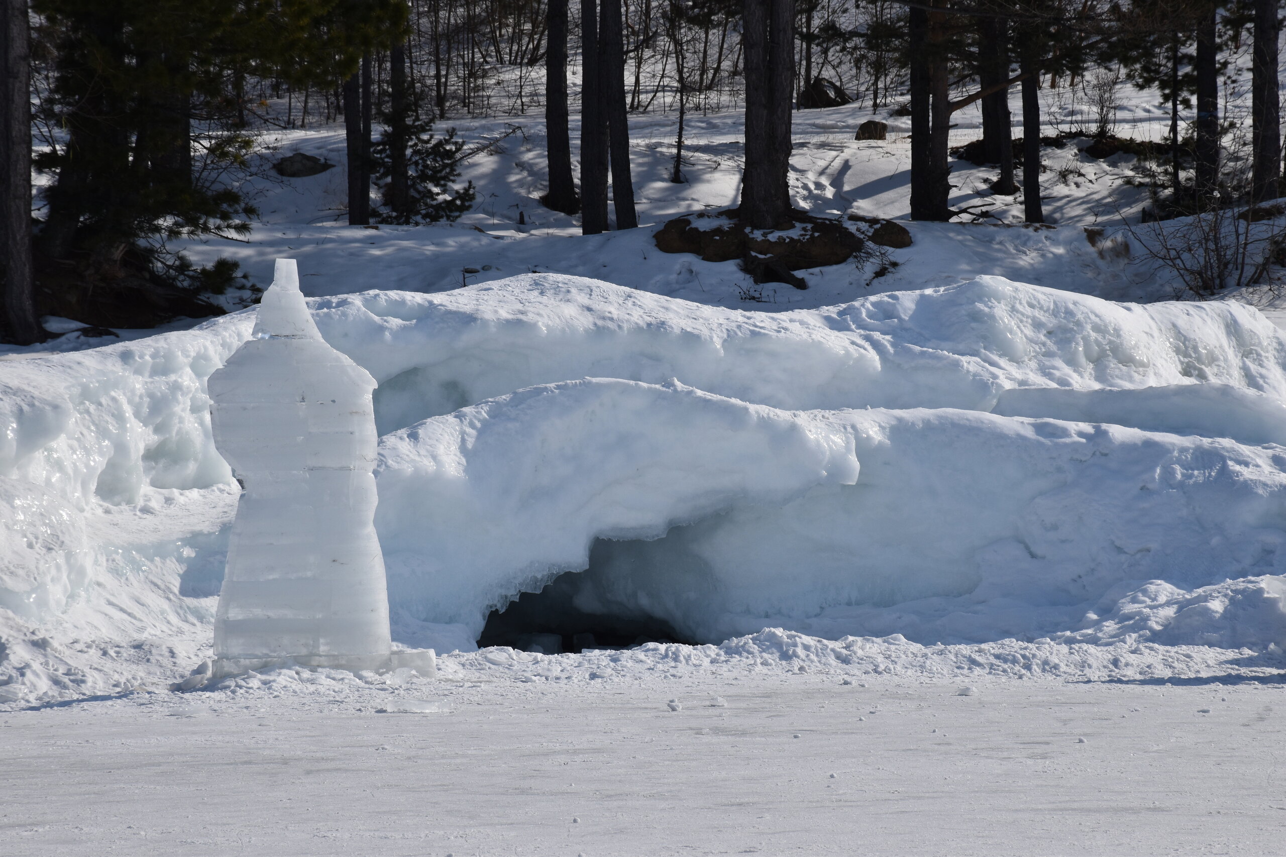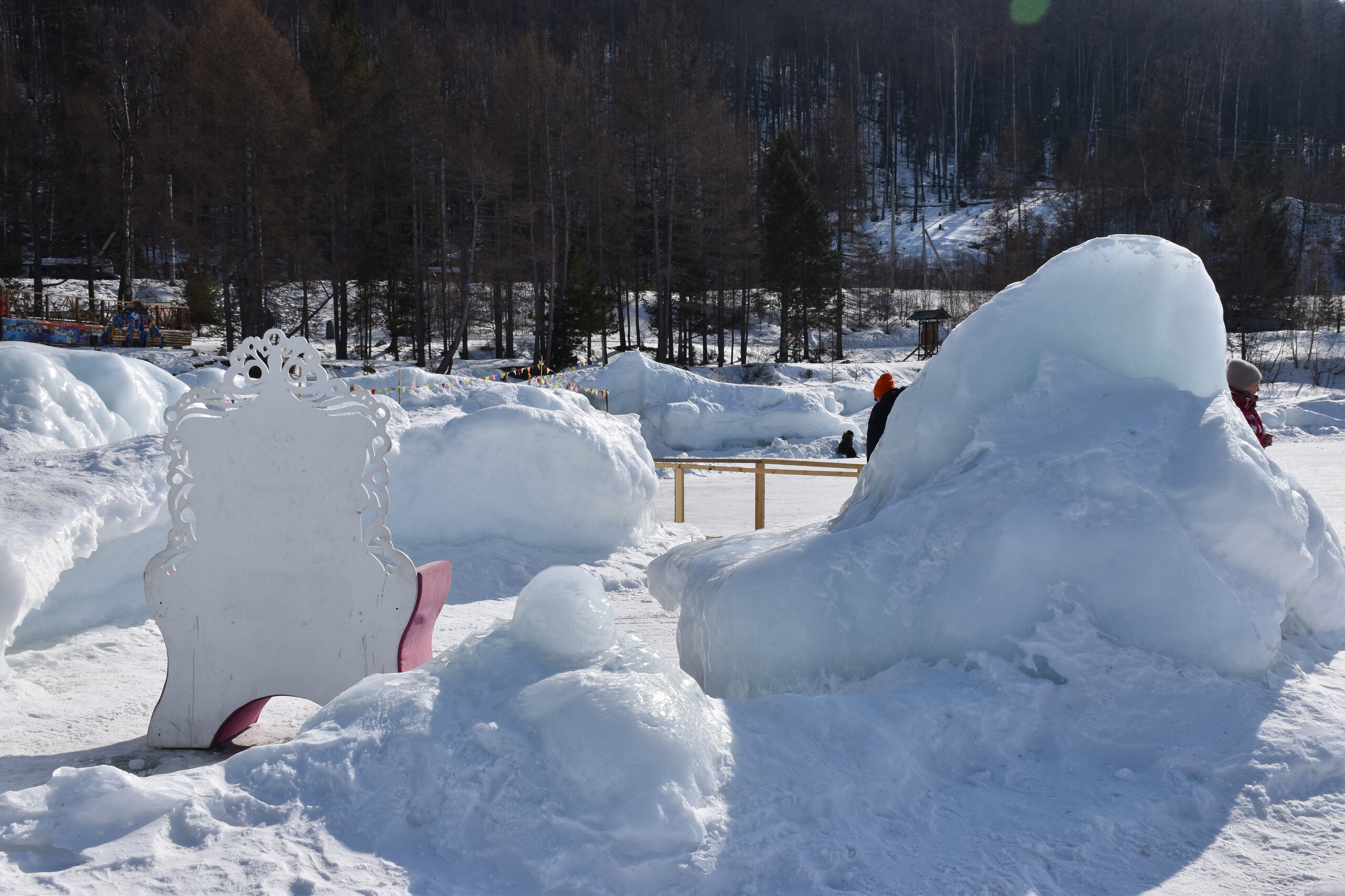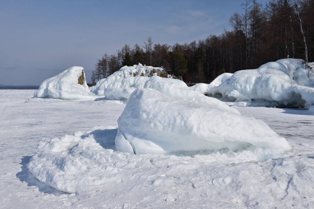 Если поискать, то ледовые узоры здесь тоже можно найти. Но главное развлечение – зимние забавы. И хвойные деревья очень впечатляют! Воздух потрясающий!