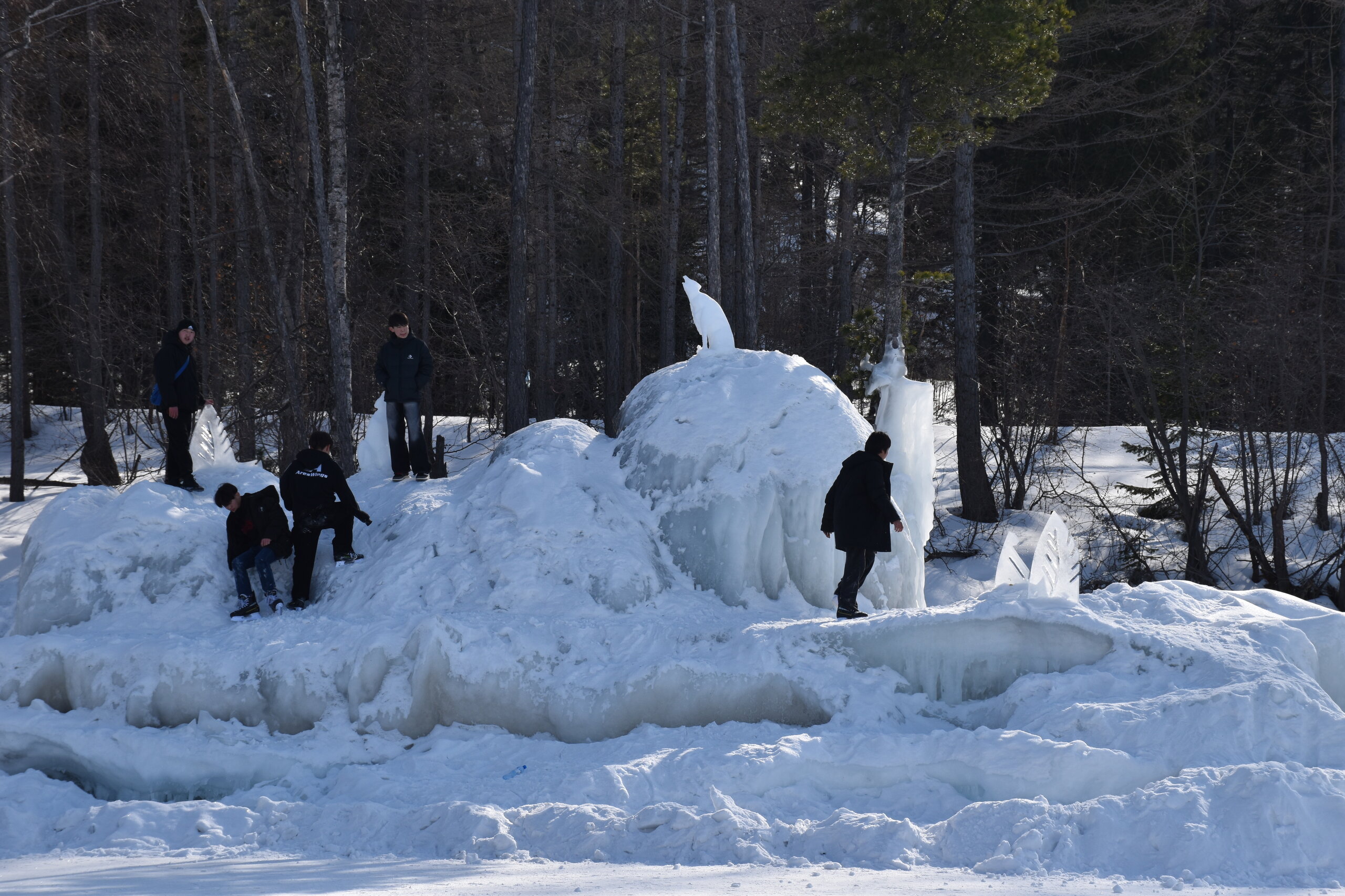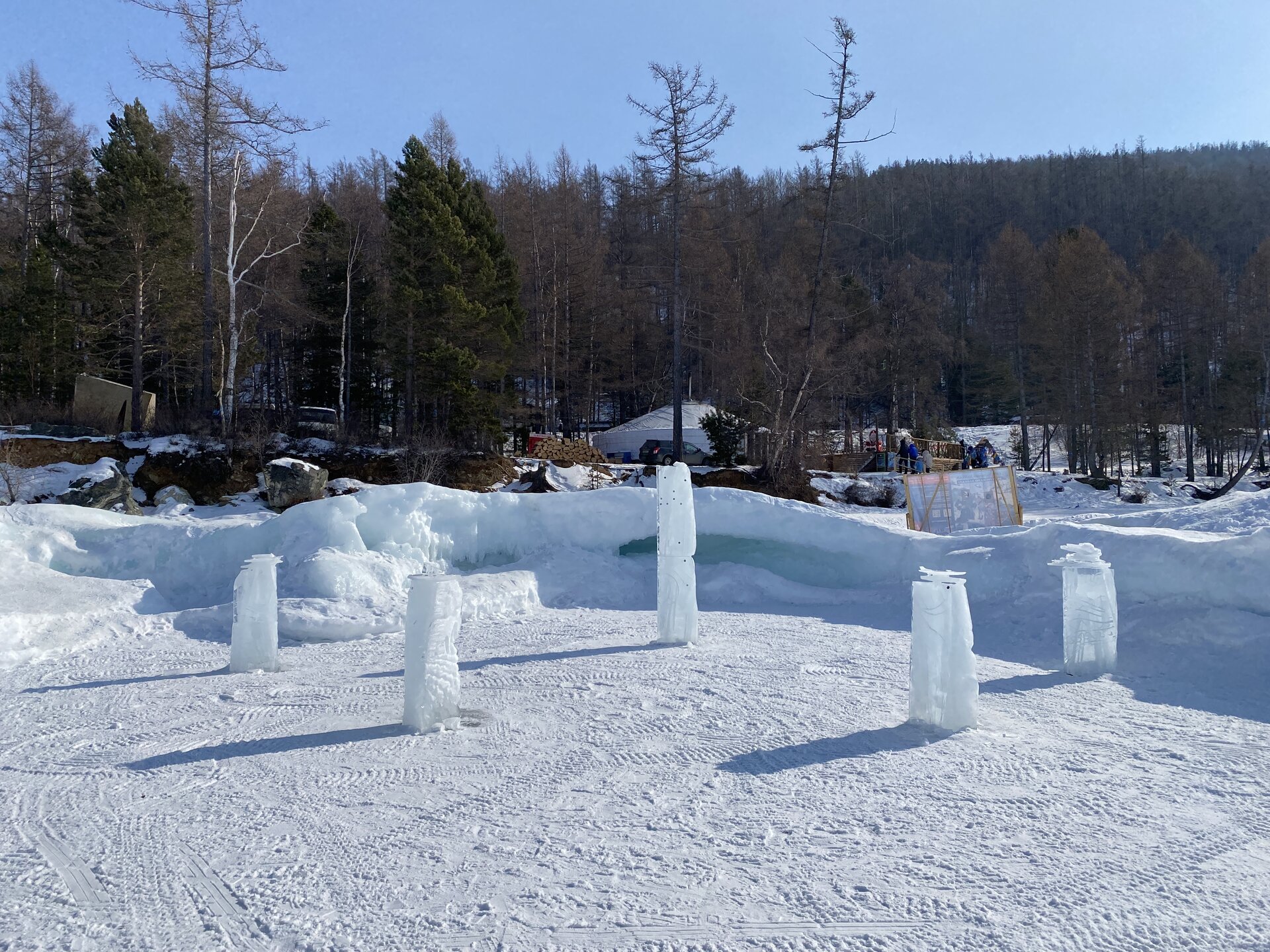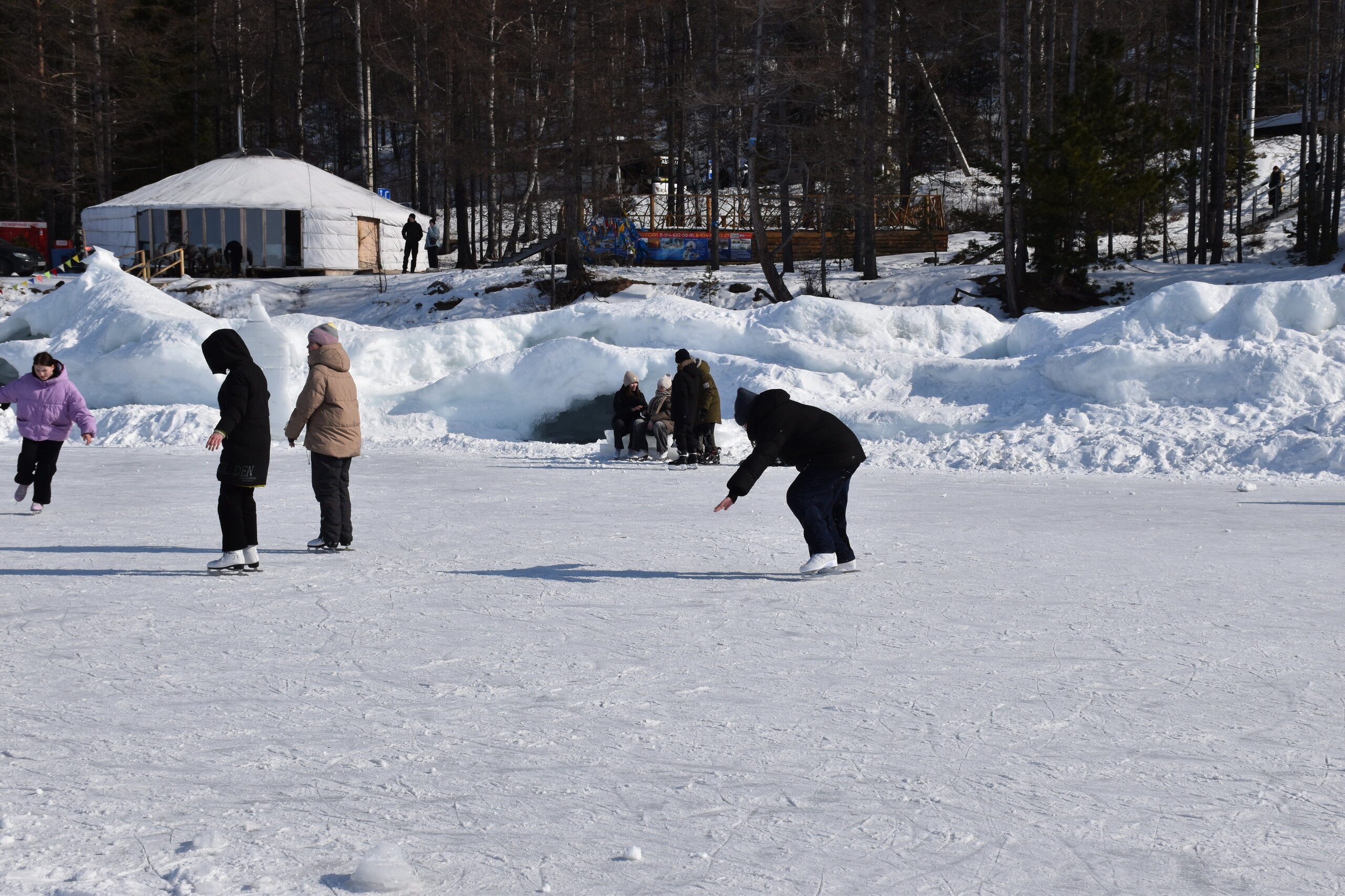 Если поискать, то ледовые узоры здесь тоже можно найти. Но главное развлечение – зимние забавы. И хвойные деревья очень впечатляют! Воздух потрясающий!