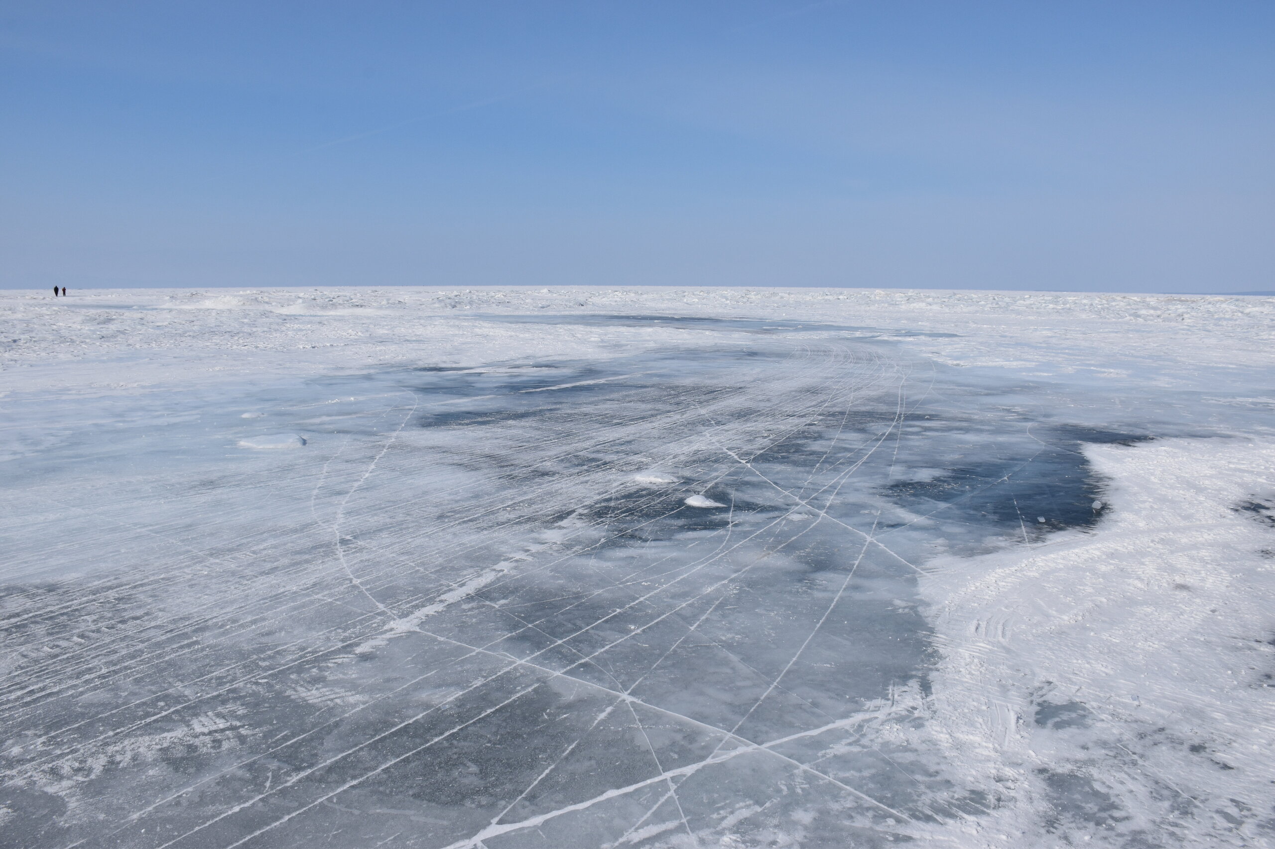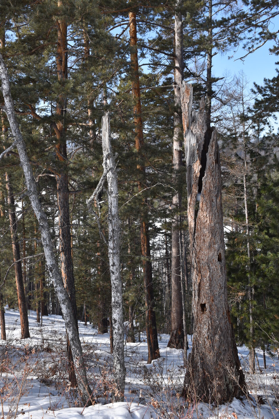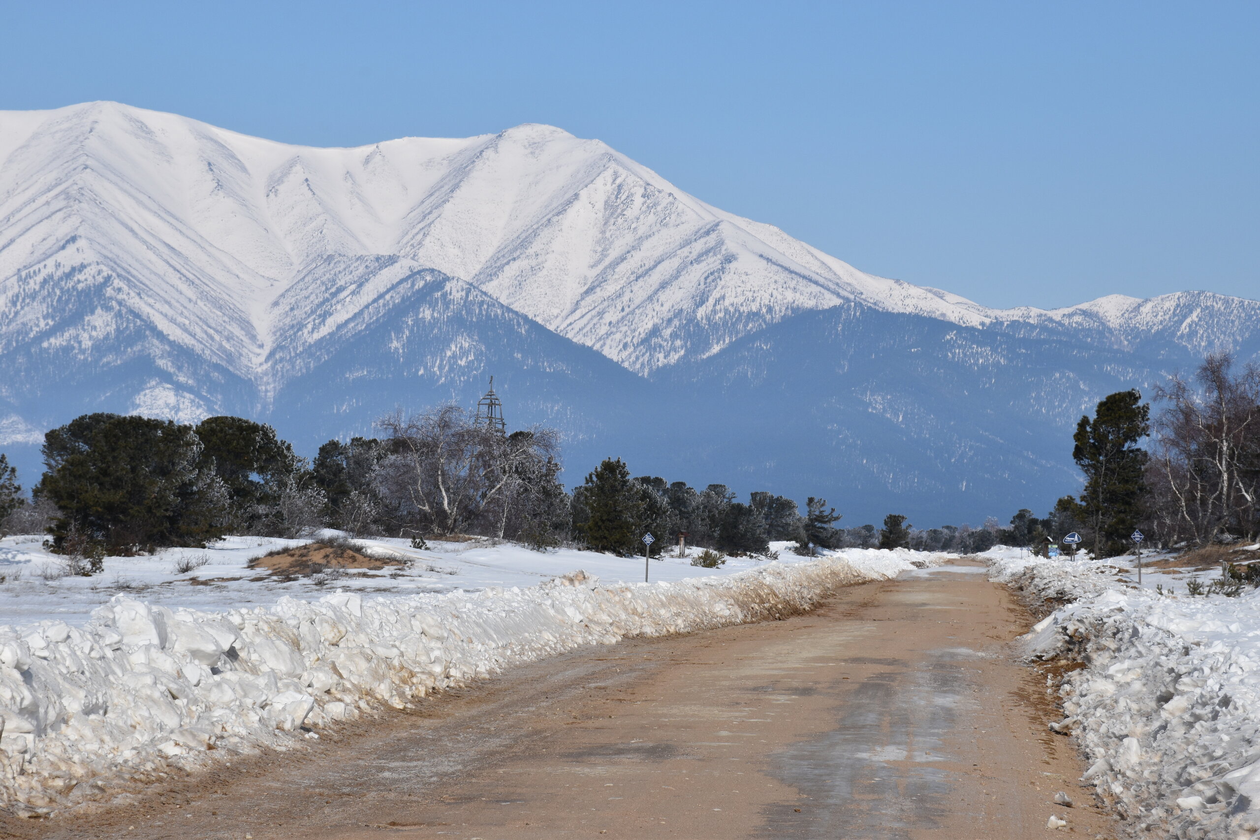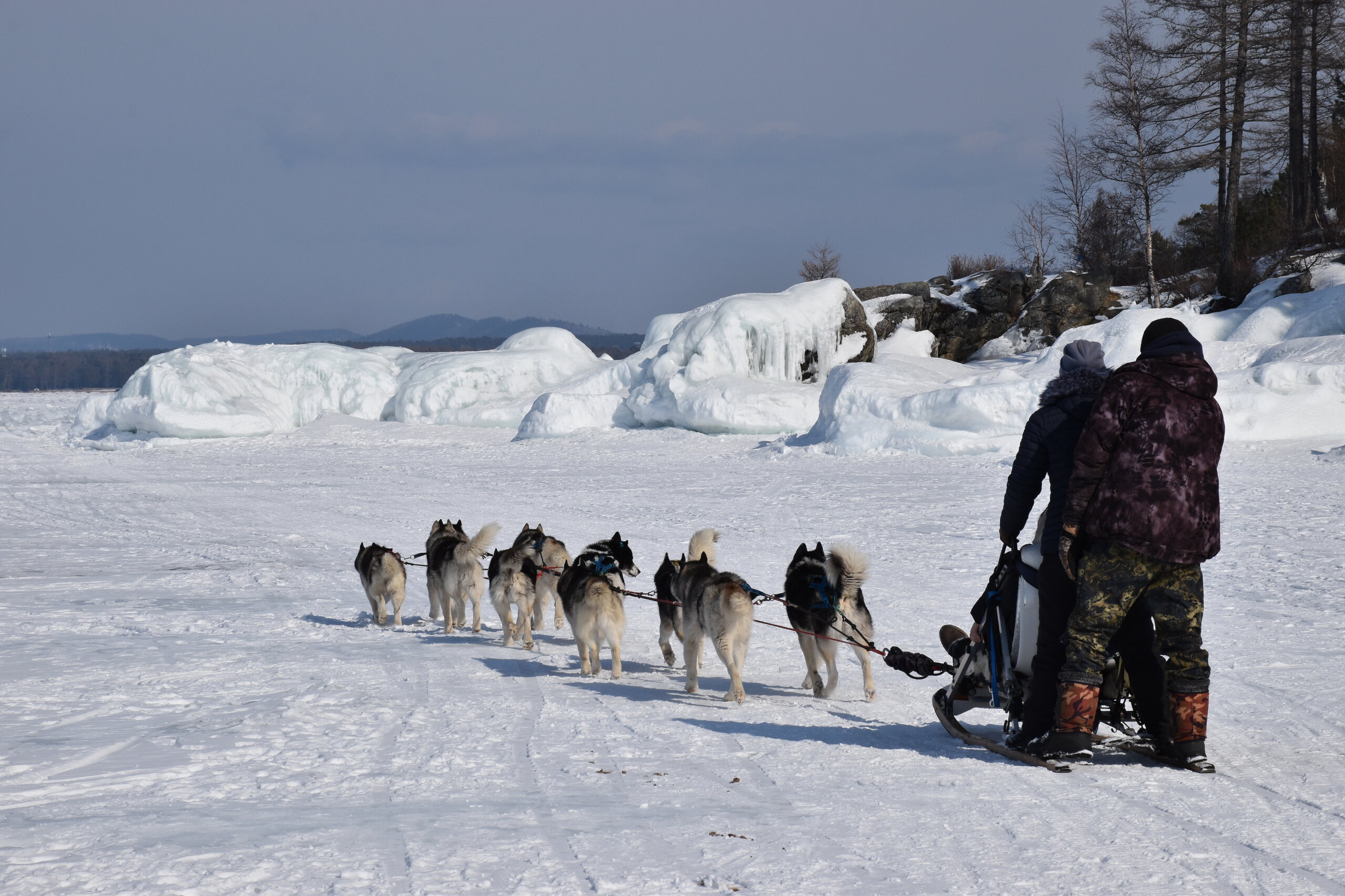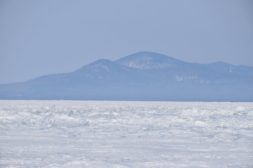 Удивительно, восточное побережье Байкала совершенно другое! Пару дней назад передо мной была зеркальная гладь льда с красивыми узорами, а сейчас – белое полотно озера и отовсюду видны горные цепи, вершины которых покрыты вечными снегами. А еще потрясающие сосны!