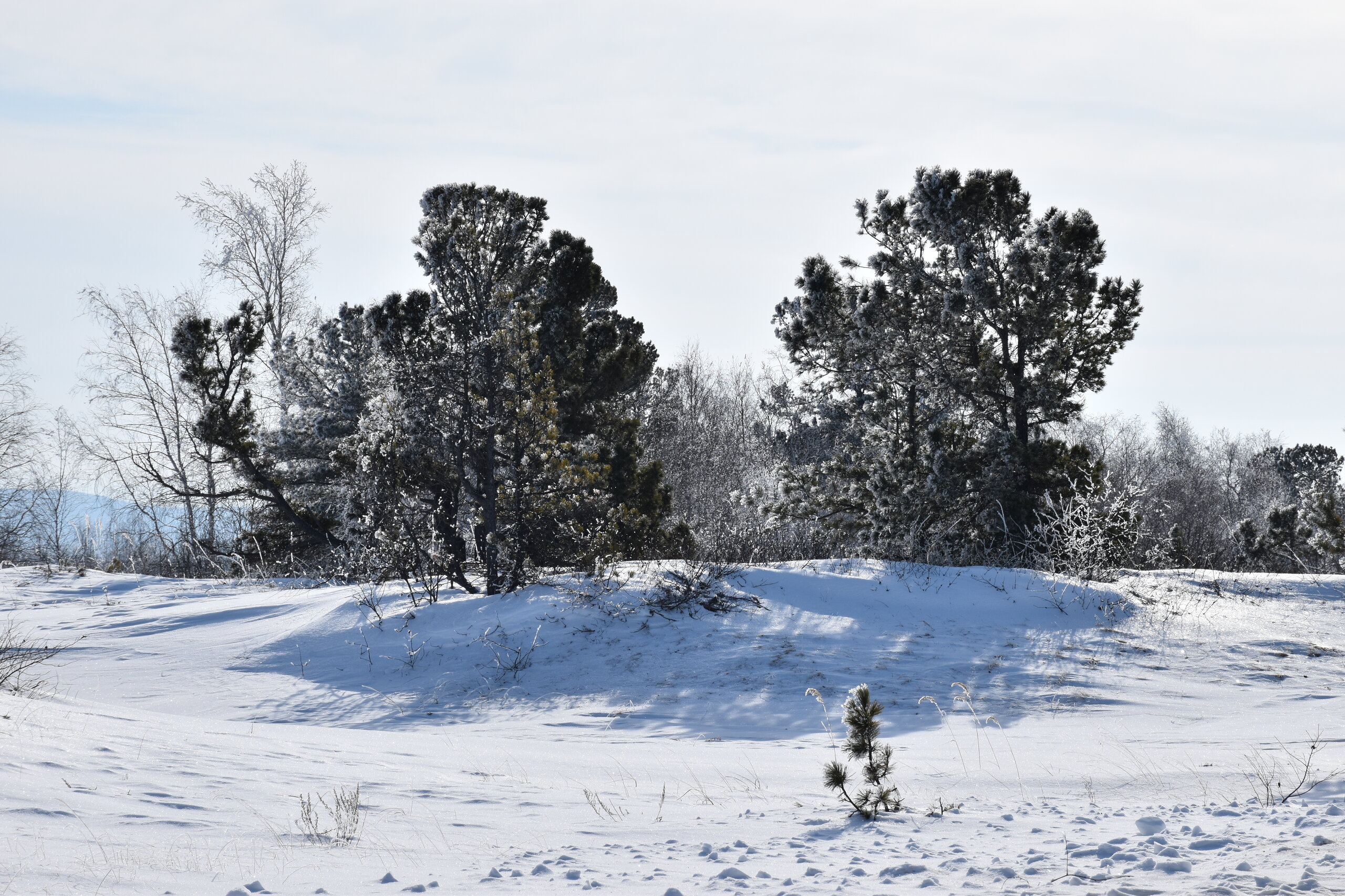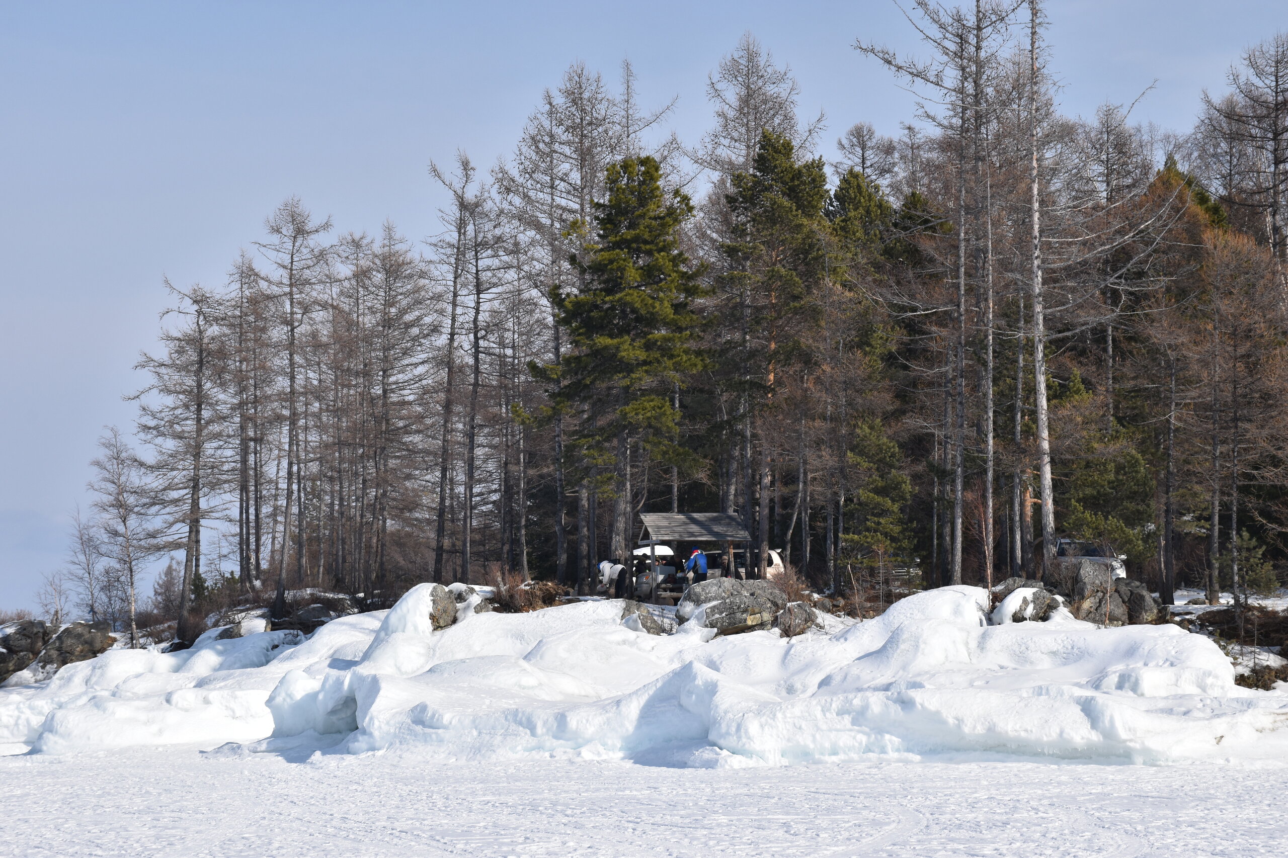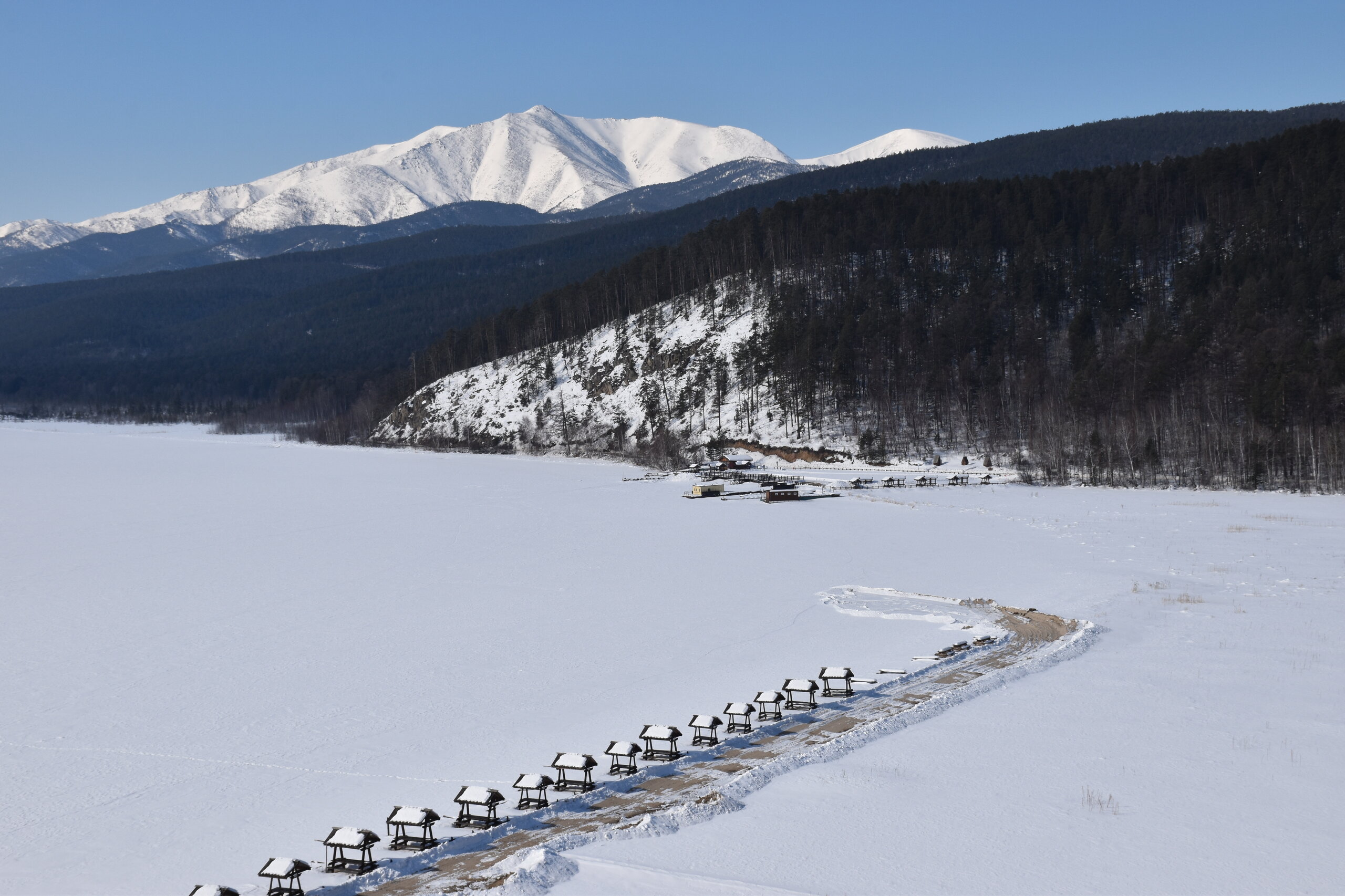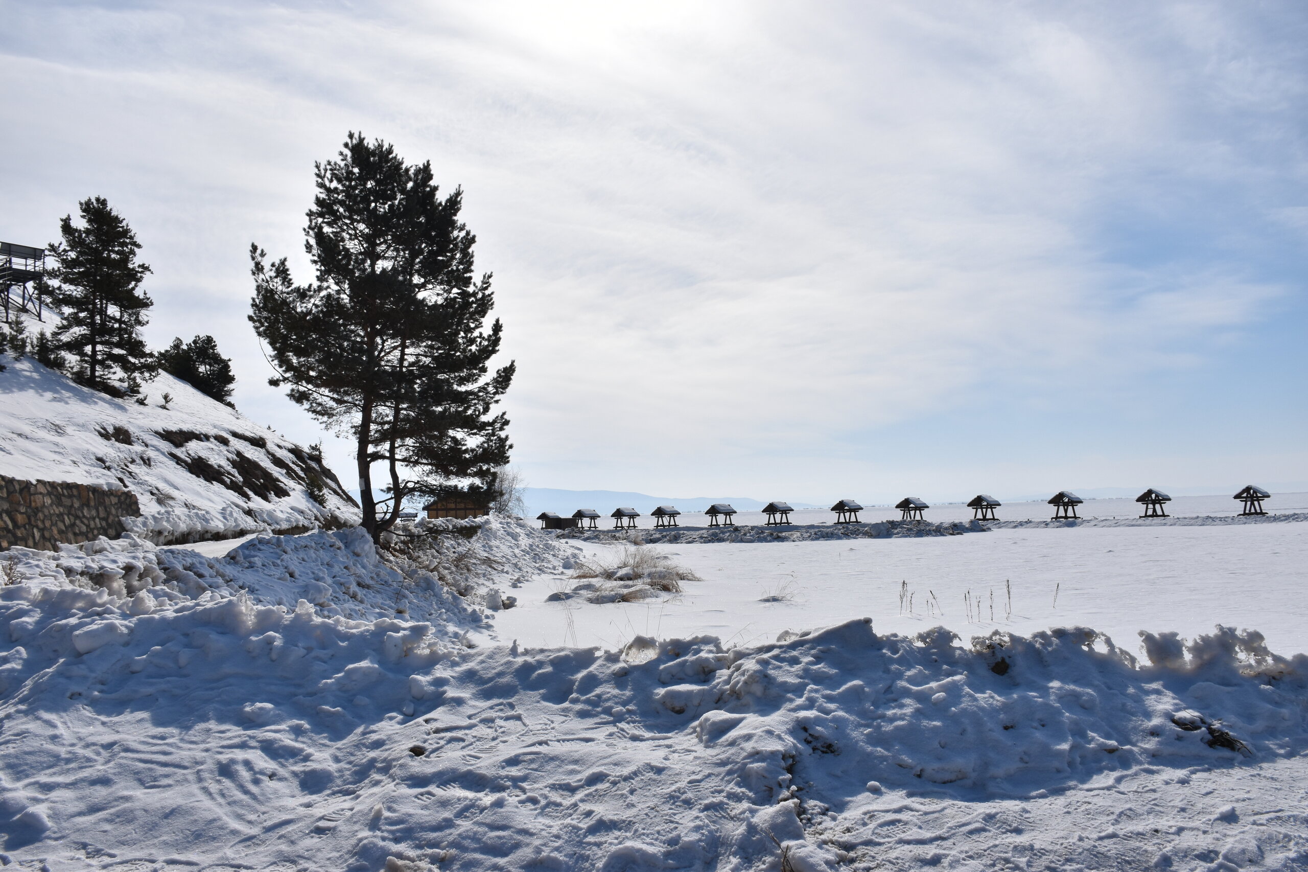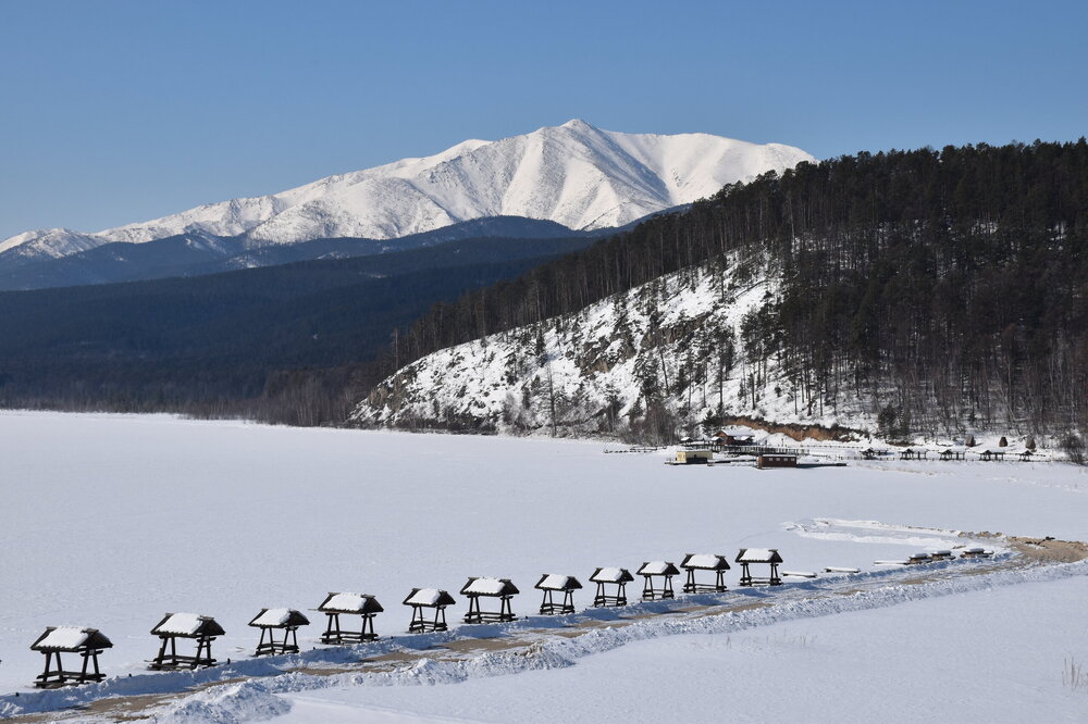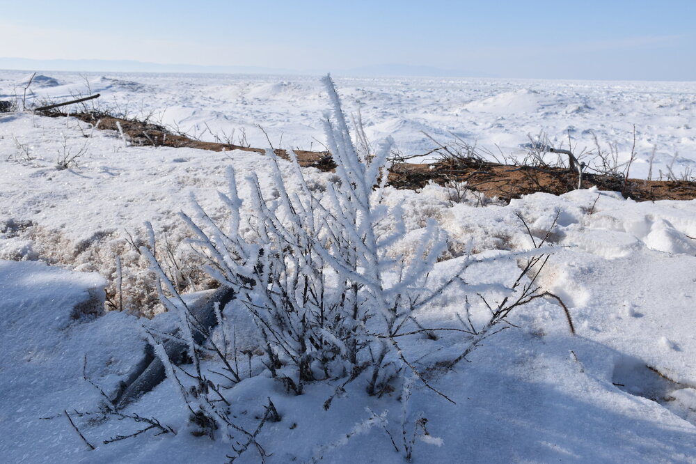 Сибирская зима прекрасна! Здесь много искрящегося снега и прозрачного льда, переливающегося всеми оттенками синего цвета. Картину дополняют вечнозеленые кедры и ели, одетые в пушистые, белоснежные шубы. Делаем остановку с видом на Баргузинский залив. Залив Баргузин – самый глубокий на Байкале: его максимальная глубина доходит до 1300 м. Площадь залива – 725 кв. км. Здешние аборигены – тунгусы, называют залив по-своему – Баргуньи-Омон. Самая крупная река, впадающая в Баргузинский залив – это Баргузин. Ещё две – Громотуха и Максимиха, а также здесь струится множество ручьёв. Учитывая природу объекта, очевидно, что он врезается в сушу. Баргузинский залив делает это на 29 км вглубь материка. Что касается ширины водоёма, то от села Максимиха до Глинки примерно 40 км. Берега Баргузинского залива очень разные в плане природного ландшафта. Например, с севера и востока они соседствуют с Чивыркуйским перешейком и сплошь покрыты разнообразными пляжами, усыпанными песком или галькой. Также здесь множество топких болот, заросших багульником и прочей растительностью. С юга в основном площади занимает густая тайга. Две крайние точки Баргузинского залива – мысы Крестовый и Нижнее Изголовье. Последний принадлежит полуострову Святой Нос. Неизменно прекрасной частью Баргузинского залива, любимой всеми путешественниками, является песчаная коса протяженностью 22 км. Она начинается непосредственно от реки Баргузин и тянется до знаменитого полуострова Святой Нос. Здесь можно увидеть дюны, похожие на те, которыми украшено суровое прибалтийское побережье.