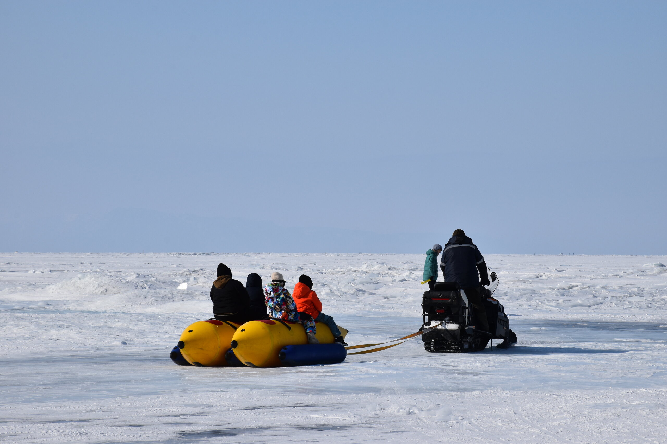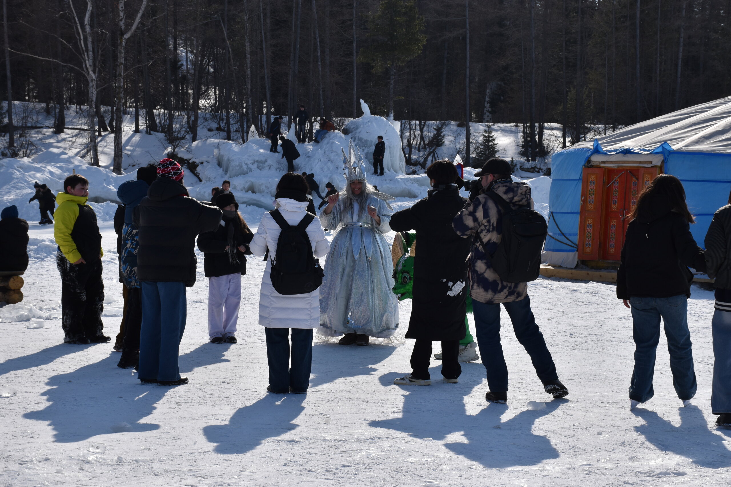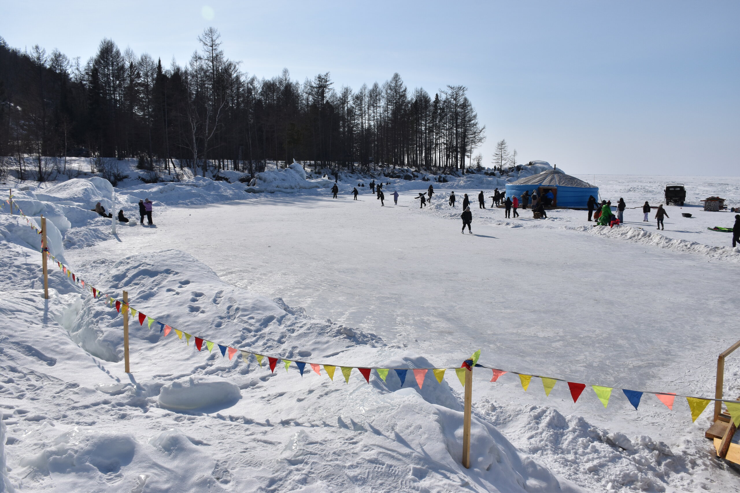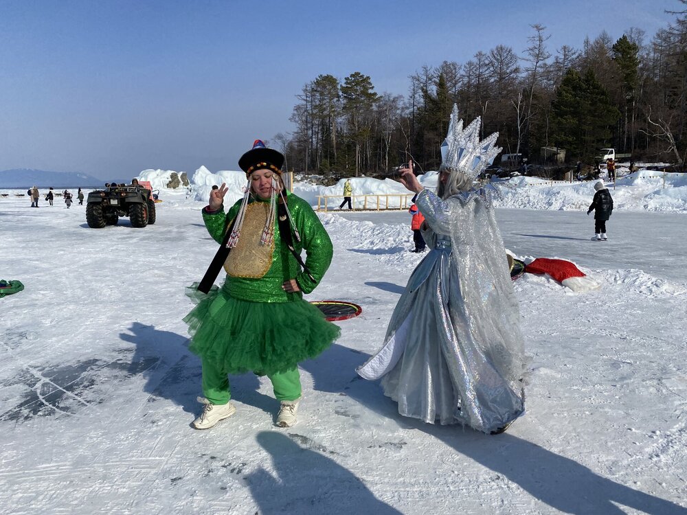 На восточном побережье Байкала мало открытого льда, но зато такого яркого и ослепительно белого снега нет на западном берегу. Я гуляла по снежному льду и как будто вернулась в детство! У нас на Урале всегда было много снега и самые разные зимние развлечения: катание на коньках, лыжах, на подстилке с горки, и хороводы мы водили, и горки нам родители заливали во дворах, а уж если отвезли на центральную площадь к елке и большим горкам, счастье!!! И снежные бабы мы лепили и строили замки из снега… На улице мороз за – 30, в школу не пошли, а на горках весь день катаемся…