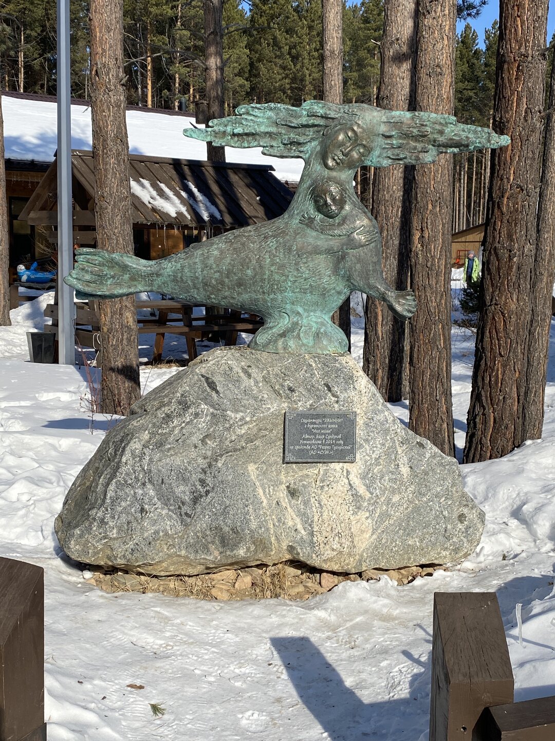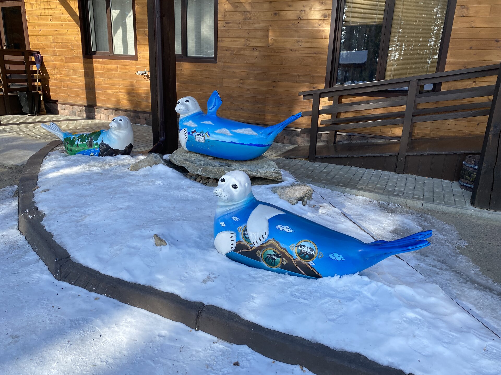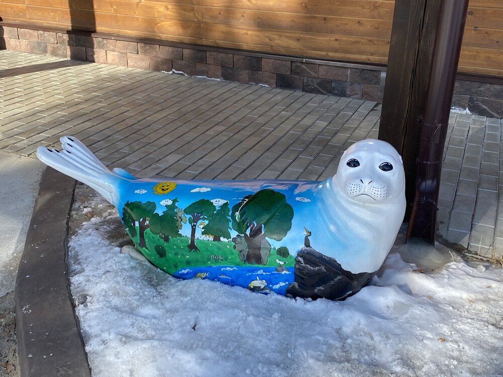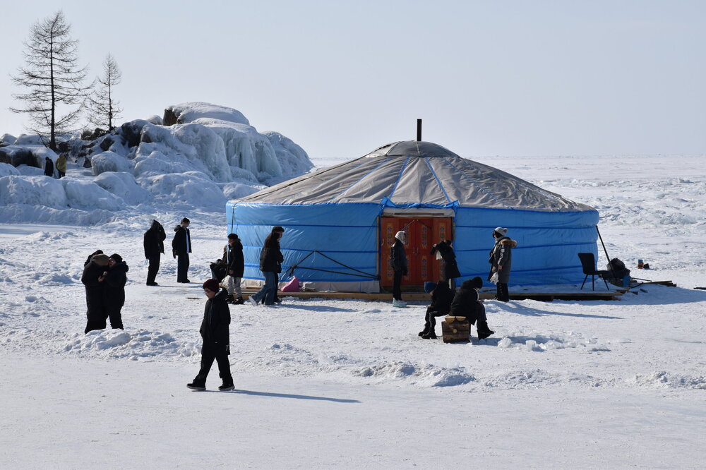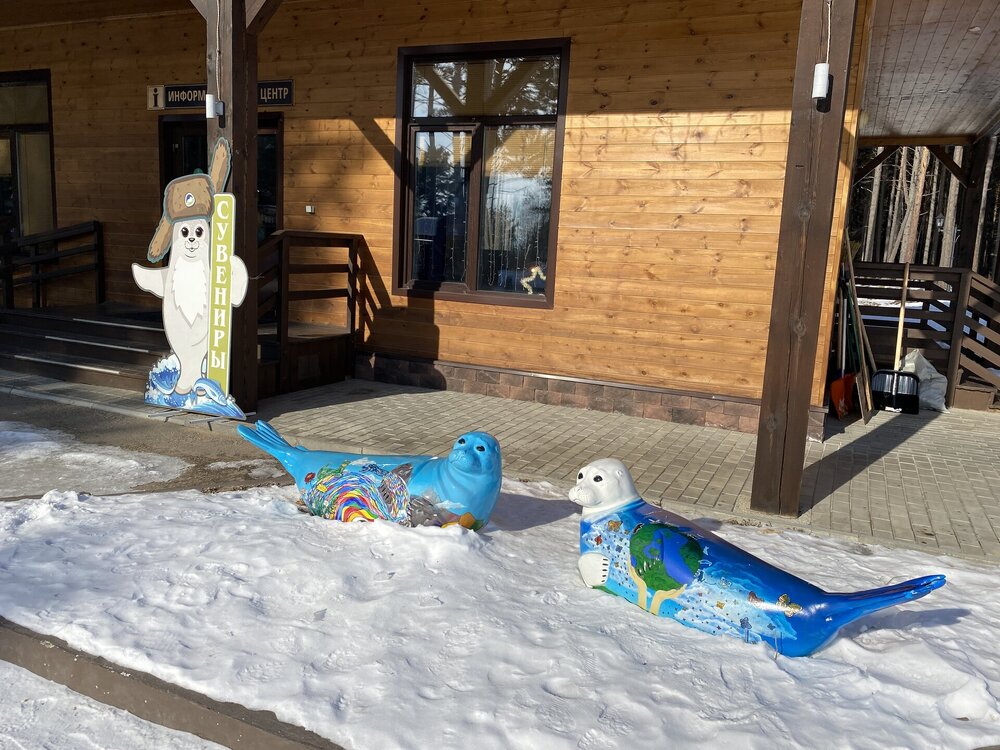 День 9. 17.03.2025 Первый день на восточном побережье Байкала – один из самых ярких и запоминающихся! Мы едем в Забайкальский национальный парк. Эта территория очень живописна, поэтому ее тщательно оберегают! В программе: полуостров Святой нос, Чивыркуйский залив, термальный источник Змеёвый. Активная часть тура: 6,7 км, продолжительность маршрута 7-8 часов. Едем снова на буханке. Забайкальский национальный парк. Территорией в миллион квадратных километров располагают такие крупные страны как Колумбия и Венесуэла. А в России такую площадь имеет относительно небольшая географическая единица, которую называют Забайкальем. Она имеет размеры 1000х1000 км и действительно находится за Байкалом. Забайкалье включает сразу три российских региона — Иркутскую область, Бурятию и Забайкальский край. С точки зрения физической географии всё это — Восточная Сибирь. Значительная часть территории Забайкалья представляет собой безбрежное море первозданной тайги, обрамляющее живописные горы. Населённые пункты здесь можно пересчитать по пальцам. Зато благодаря малолюдности прекрасно сохранилось всё многообразие фауны и флоры. К редким сёлам выходят непуганые медведи. В тайге можно повстречать даже тигра! Для охраны всей этой первозданной природной роскоши был создан Забайкальский национальный парк. Среди природных раритетов парка стоит отметить водопад на реке Шумилиха, три живописных горных озера, мыс Валукан, реку Южный Бирикан, Баргузинский залив, термальные источники в бухте Змеиной и многие-многие другие. В парке проложено несколько экологических троп — в бухту Змеиную, к лежбищу байкальской нерпы, к озеру Фролиха и другие. Для продвинутых туристов есть «Тропа испытаний» повышенной сложности. Пока Илья получает пропуска для посещения парка, мы заглянули в сувенирную лавку (я купила здесь небольшие книжки), посмотрели на входную группу в парк.