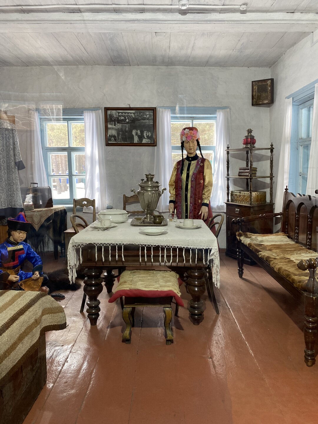 Городской или «Старый Верхнеудинск» комплекс. Самоназвание этого музейного комплекса отчётливо говорит о себе: здесь, на довольно внушительной территории выставлены городские дома Улан-Удэ (ранее столица Бурятии называлась Верхнеудинск). В урбанистическом секторе можно рассмотреть, как выглядело данное поселение в начале XX века. Взглядам туристов предстают дома с мезонином, роскошные купеческие и чиновничьи хоромы. Причём аутентичный интерьер комнат с помощью этнографов полностью восстановлен. Строения перевезены сюда в 1978-1979 годах. Мы зашли в дом Танских. Жилой дом был построен в 1903 г. по заказу горного инженера А.А. Левицкого. Семья Танских переехала в этот бревенчатый дом в 1906 г. и прожила здесь более 60 лет. Здесь они принимали гостей, М.В. Танский вел частную медицинскую практику. После смерти мужа Екатерина Александровна в 1976 г. подарила свой дом министерству культуры, в 1980-х гг. его перевезло из центра города в Этнографический музей. С 1930-х гг. в связи со сдачей частей дома внаём жильцам и учреждениям были сделаны пристройки крылец, частично менялась внутренняя планировка. Михаил Владимирович Танский – выдающийся врач, краевед и общественный деятель, происходивший из старинного казачьего рода, состоявший в родстве с Н.В. Гоголем. В доме мы осмотрели столовую, гостиную и кабинет доктора.