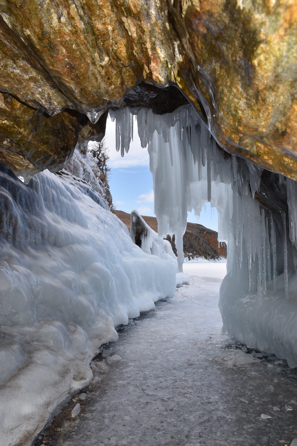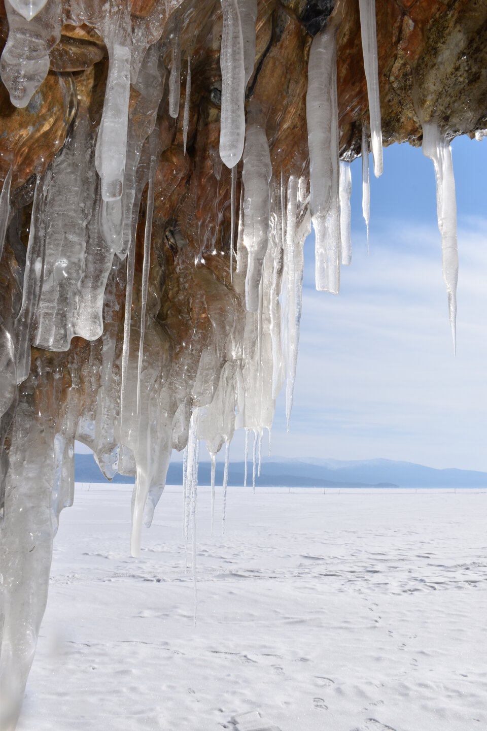 Сокуи и ледяные сопки. Самые красивые фото на Байкале получаются в местах с сосульками. Они образуют целые гроты, внутри которых темно. Выглядит это волшебно. Одна из разновидностей таких сосулек – сокуи. Это ледяные наплески на камнях и скалах. Появляются они в период замерзания озера. Размеры их могут быть небольшими (несколько десятков сантиметров) или достигать десятков метров. Последние появляются после сильных штормов. Часто на отмелях вдоль сокуй образуются ледяные конусообразные шатры с пустотами внутри. Такие образования назвали сопками, поскольку внешне они напоминают небольшие холмы из непрозрачного льда. Сопки располагаются поодиночке или группами, а в высоту могут достигать шести метров. Такая форма характерна только для льда на озере Байкал. Ледяные гроты и пещеры. Байкал со всех сторон окружён горными хребтами, отвесные скалы которых уходят прямо в воду. Берег озера усеян пещерами и живописными гротами, которые в течение нескольких сотен лет создавали волны. А вот ледяную «одежду» пещерам создают вода и ветер. Считается, что чем сильнее шторм, тем сказочнее и красивее застынут волны и брызги. От перепада температур зависит длина сосулек, которые свисают тут с потолка и «растут» из пола, как сталагмиты. Прозрачные острые сосульки, похожие на копья, волнистые молочные и ярко‑голубые ледяные стены и колонны — всё это напоминает сказочный замок Снежной королевы. Особенно атмосферно пещеры и гроты выглядят на закате, когда лучи солнца искрятся на льду. А еще можно увидеть радугу! Про такую фишку нам рассказ наш инструктор Илья.