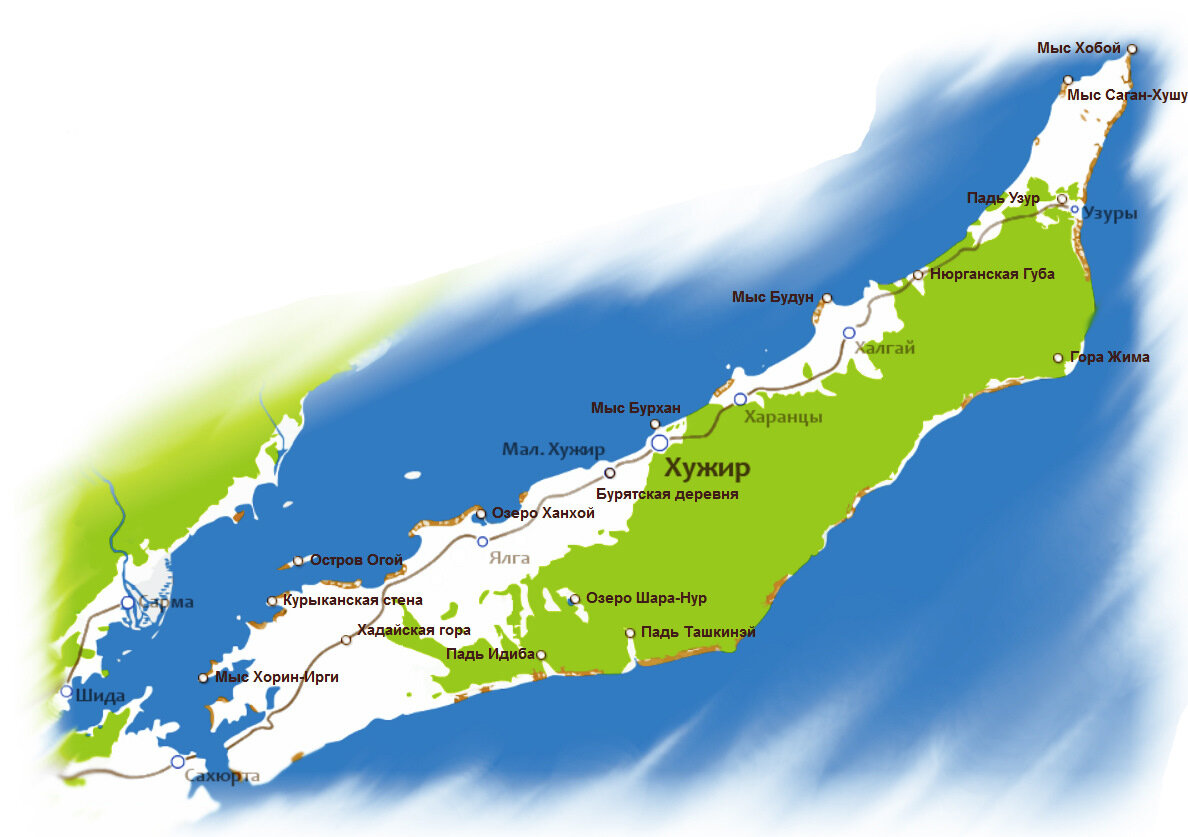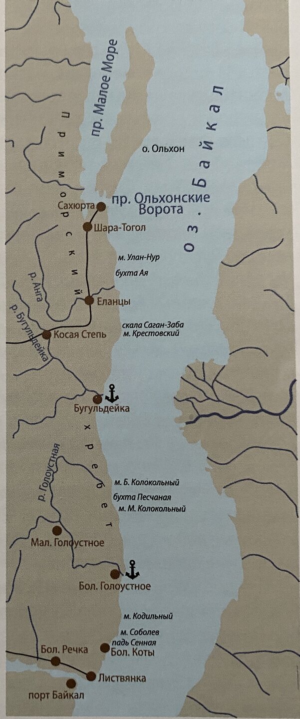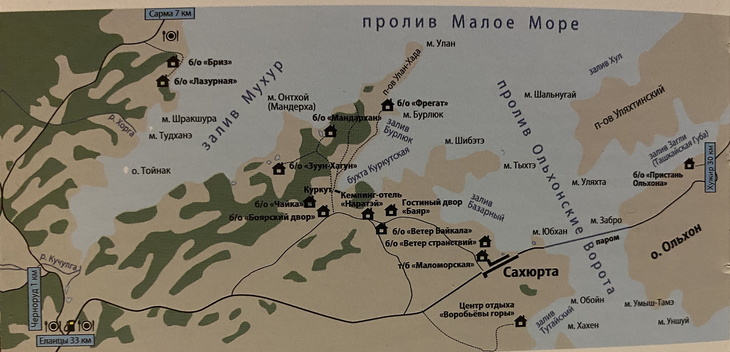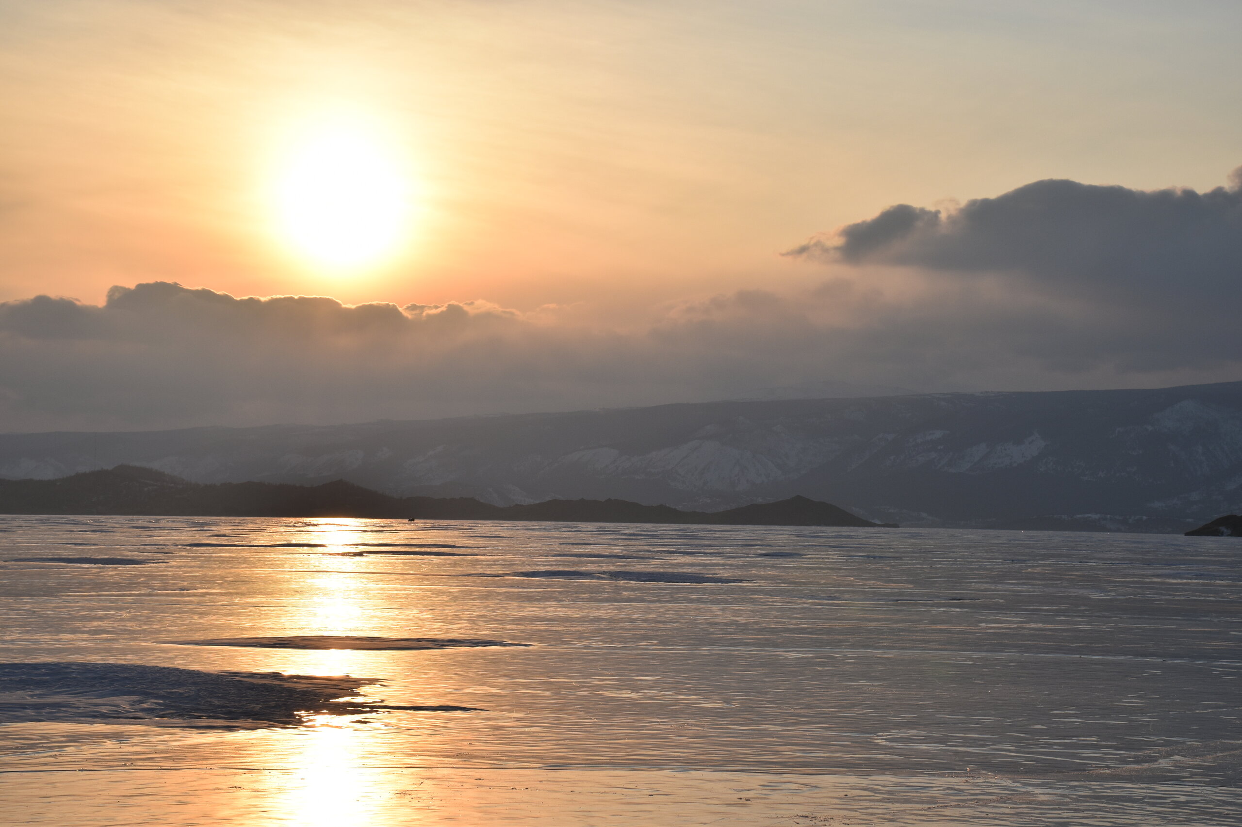 И вот перед нами показался Байкал! Байкал вытянулся с юго-запада на северо-восток. Длина — 636 км, максимальная ширина — 81 км, минимальная ширина — 27 км. Длина береговой линии — около 2 тыс. км. Озеро Байкал находится на границе Иркутской области и Республики Бурятия. Водоем хранит крупнейший мировой запас пресной воды (ее состав уникален: вода настолько чистая и прозрачная, в ней содержится так мало минеральных солей, что ее приравнивают к дистиллированной). В Байкал впадают около 300 рек и ручьев, при этом половину объема воды, поступающей в озеро, приносит река Селенга. Из Байкала вытекает река Ангара. Среди 20 островов озера крупнейший — знаменитый остров Ольхон. Впервые Байкал упоминается в 110 году до н. э. О происхождении озера Байкал до сих пор идут научные споры. Есть версия, что оно образовалось на месте тектонического разлома — гигантской трещины в земной коре. Существует альтернативное мнение, что озеро Байкал по происхождению ледниковое. Старинная легенда о происхождении озера повествует о том, что в один из дней земля разверзлась, а из впадины вырвался огненный поток, поглощая сёла и тайгу. Жители в ужасе разбегались, умоляя небеса о пощаде. Услышали ли боги людскую мольбу — не известно, но огонь исчез, а огромная котловина заполнилась пресной водой, которая побежала с гор. Название «Байкал» произошло от бурятского слова «Байгал далай», что в переводе означает «необозримый водоем». По мнению ученых, название могло произойти от тюркского «Бай-Куль» значит «богатое озеро». Народы, обитающие в Прибайкалье, называли озеро Ламу, то есть море, а буряты — Байгал-Нуур – озеро Байкал. Альтернативные версии происхождения названия — от монгольского Байгал (Богатый огонь) и даже от китайского Бэйхай (Северное море). Байкал действительно магическое место! Мы провели на его берегу почти неделю, ходили в походы и восхищались сказочными узорами льда, знаменитыми ледовыми гротами и скульптурами. Лёд здесь невероятно прозрачный, что позволяет наблюдать за увлекательной подводной жизнью: видно, как на большой глубине, прямо под нами, снуют между камней шустрые бычки и омули. В первый день у нас было мало активностей – заселение в отель «Наратэй» у Куркутского залива Байкала, первый выход на лед и небольшая ознакомительная прогулка по нашей базе. Отель «Наратэй» расположен около поселка Сахюрта, вернее в его пригороде. Пешком до него далековато, мы и не ходили в него. Рядом много других баз отдыха, но почти все они летние. Весной в марте здесь очень малолюдно и тихо. Я приехала под конец зимнего сезона, и эта тишина мне по душе. Посёлок Сахюрта находится в Ольхонском районе Иркутской области, на южном берегу бухты Базарной пролива Ольхонские ворота. В 46 километрах от него стоит районный центр – село Еланцы. В посёлке проживает чуть больше 200 человек. Известен он, прежде всего, расположенной на окраине пристанью, откуда отправляются паромы на остров Ольхон. Альтернативное название места – МРС Байкал. Эта аббревиатура расшифровывается как «Маломорская речная станция». Встречаются и другая расшифровка – «Маломорская рыболовецкая станция». Нередко и сам посёлок называют МРС, игнорируя настоящее название. В переводе с бурятского «сахюур» означает «кремень». Дело в том, что раньше на месте поселка велась добыча этого минерала. Паромная переп