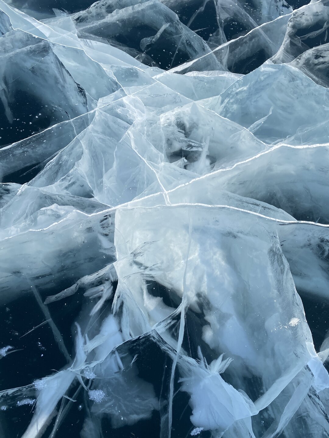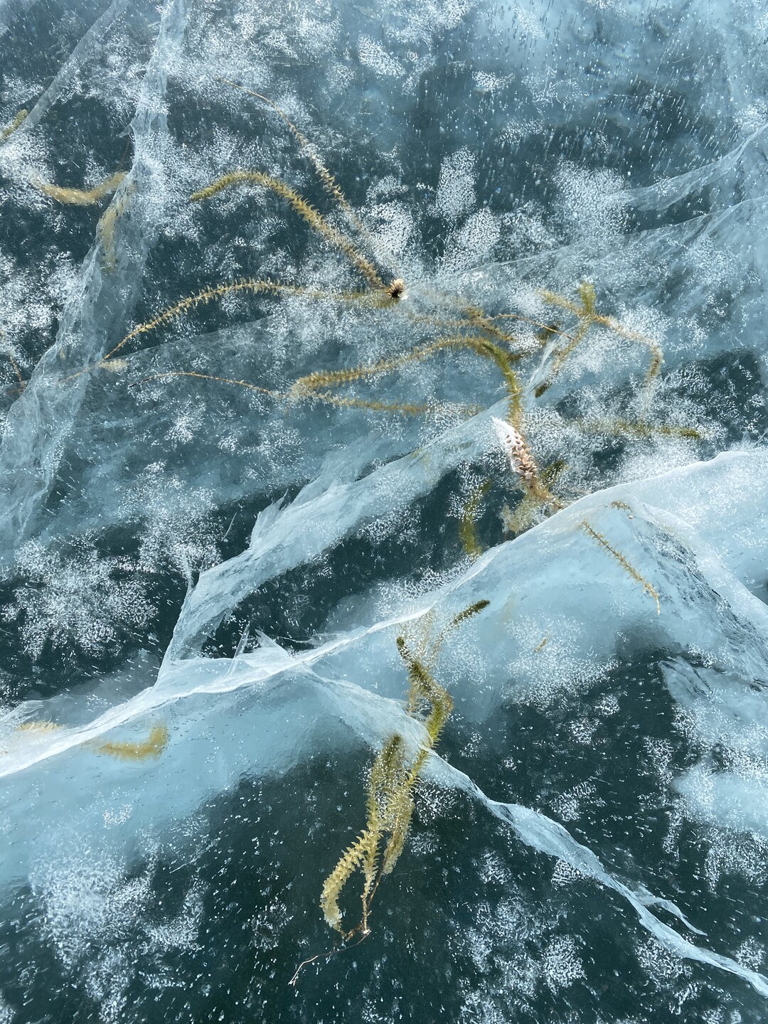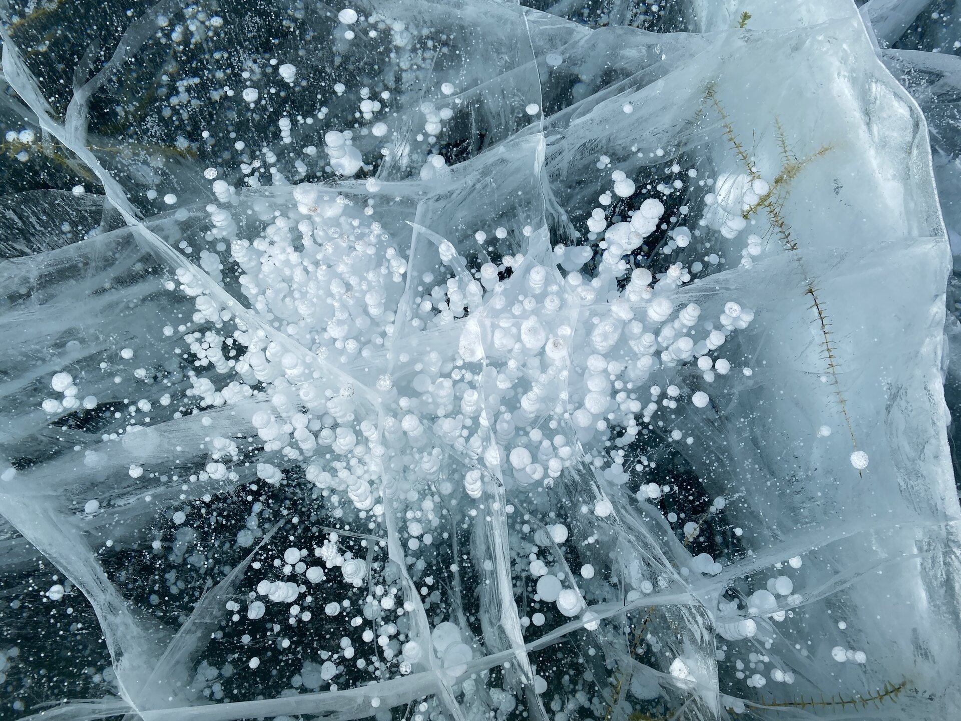 Каким бывает Байкальский лёд? На Байкале он прозрачный, испещрённый поднимающимися к поверхности пузырьками, белыми линиями и причудливыми завитками. Сквозь лёд легко разглядеть дно с водорослями и плавающими рыбками, причём не только на мелководье. На озере есть участки, где подводный мир просматривается на целых 40 метров в глубину. Кстати, удивительной прозрачности воды Байкал обязан крохотному планктону эпишуре, который фильтрует воду, делая её кристально чистой. Формирование и вид байкальского льда зависит от места его образования, температуры, течений, волн, ветра. Специалисты различают более 50 видов льда на Байкале, но туристам достаточно знать основные. Например, отдельные кристаллики льда на поверхности воды, — это сало. Со временем они смерзаются, превращаясь в тонкую хрупкую корочку, обломки которой перемешиваются с водой, и становятся шугой. Плавучий прочный лед белого цвета — осенец. Глыбы округлой формы — колобовник. Забереги — узкие полоски льда, они намерзают при накате волн на берег. Тарельник — отдельные льдины трутся друг о друга, и по их краям образуется приподнятая кромка, а затем они смерзаются вместе. В пик зимнего сезона вы обязательно увидите: метановые пузыри, сокуи, трещины, торосы, ледяные гроты и пещеры. Одно из самых чудесных явлений природы Байкала – метановые пузыри. Смотрится это потрясающе. Даже может показаться, что здесь без магии не обошлось. На самом деле всему есть объяснение: метан, который находится на дне озера, поднимается на поверхность и замерзает под воздействием низких температур. В результате появляются необычные шарики, застывающие один за другим. Выглядит, словно под водой кто-то выдул мыльные пузыри и мгновенно заморозил их. Самые красивые метановые пузыри мы увидели в поселке Бугульдейка. На поверхности льда Байкала можно увидеть многочисленные трещины, образующие уникальные геометрические узоры. Они могут быть как маленькими и незаметными, так и гигантскими. Иногда они достигают десятков метров в ширину. Появляются они на протяжении всего ледостава из‑за подводных течений и перепада температур. Неглубокие радиальные трещины обычно безопасны для езды и хождения по льду, а вот в «становые» — большие сквозные щели — неопытный путешественник может провалиться. Они образуются в одних и тех же местах и могут растягиваться на 40 километров и достигать от одного до четырёх метров в ширину. Благодаря этим щелям вода в озере насыщается кислородом, и рыба не гибнет зимой. Но главная особенность байкальских трещин — это их удивительный звук. Причём звучит лёд по‑разному: это и тихое потрескивание, и поскрипывание, и раскатистая канонада, и необычный космический звук, напоминающий выстрелы из лазерного оружия. Кстати, появление треска как из «Звёздных войн» учёные объясняют тем, что вибрации через толщу льда проходят неравномерно. Высокие частоты быстрее достигают человеческого уха, и поэтому мы слышим звуки, похожие на стрельбу из космического бластера. На льду можно увидеть много интересных фигур. Торосы. Выглядят как груды ледяных обломков разного размера. Формируются, как правило, в феврале, когда толща льда уже окрепла. А вот образуются из‑за давления ледяных глыб друг на друга, часть которых выдавливается на поверхность, а затем осколки примерзают друг к другу. Обычн