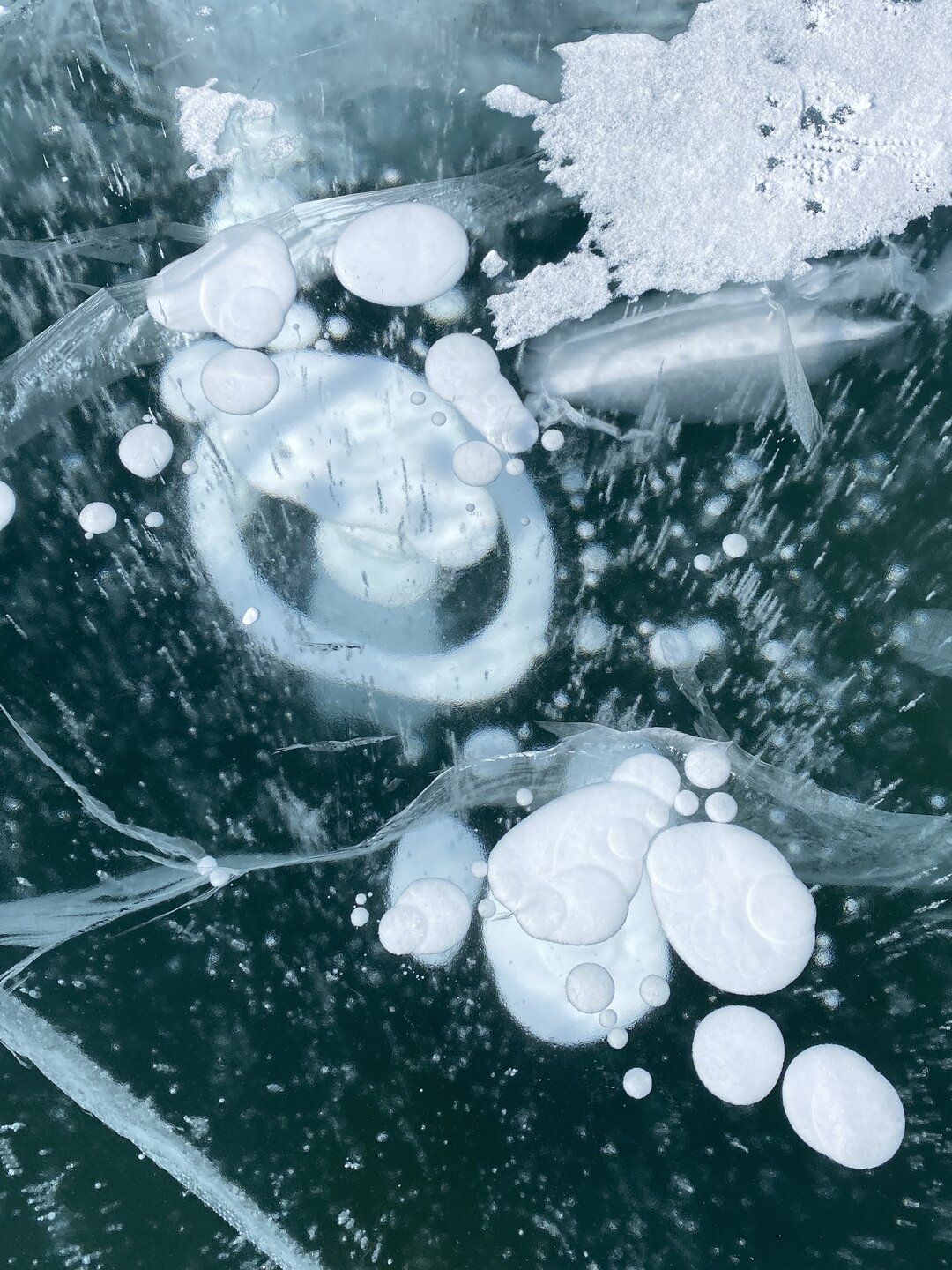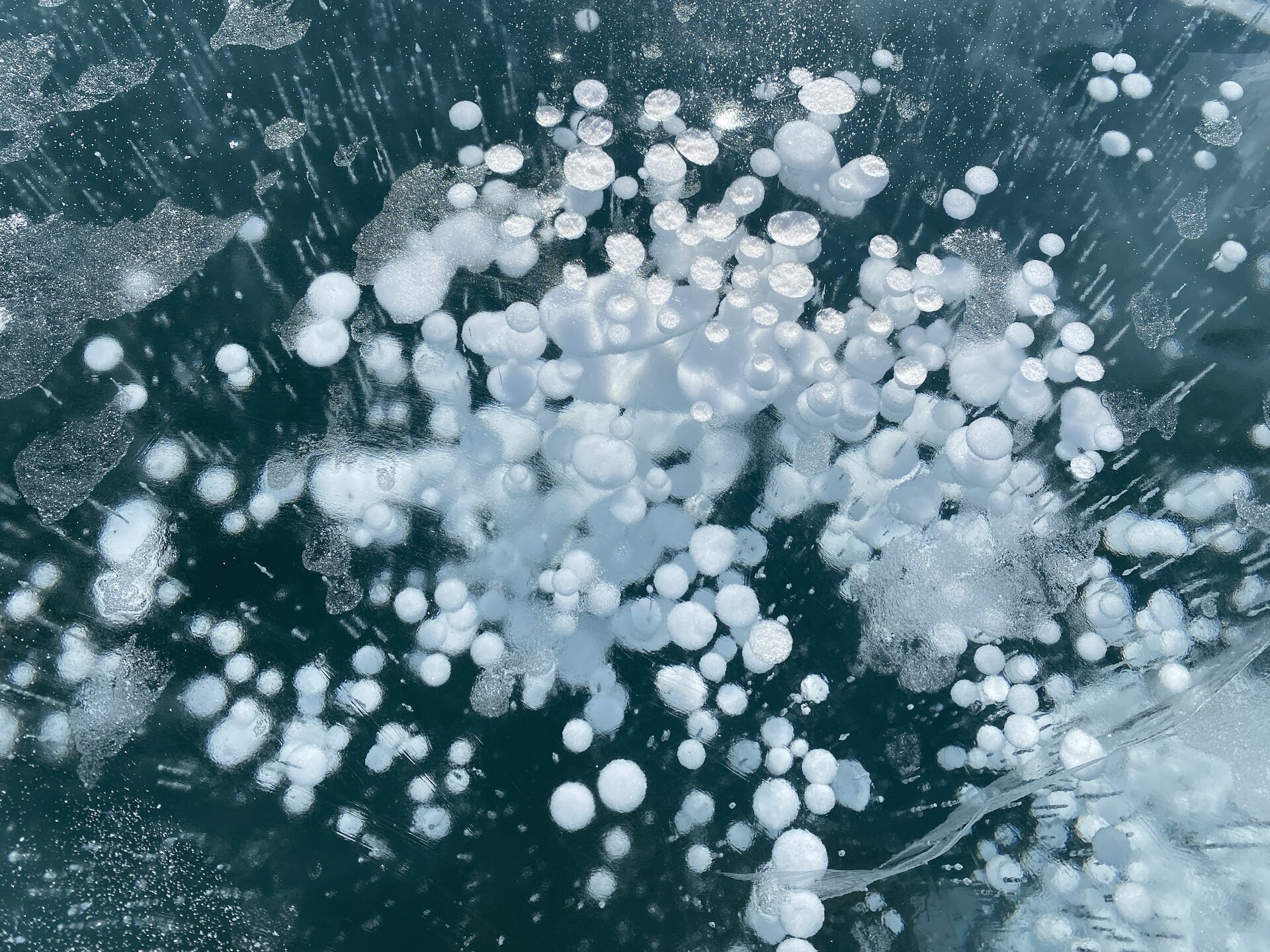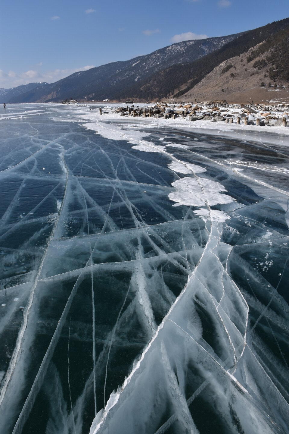 Каким бывает Байкальский лёд? На Байкале он прозрачный, испещрённый поднимающимися к поверхности пузырьками, белыми линиями и причудливыми завитками. Сквозь лёд легко разглядеть дно с водорослями и плавающими рыбками, причём не только на мелководье. На озере есть участки, где подводный мир просматривается на целых 40 метров в глубину. Кстати, удивительной прозрачности воды Байкал обязан крохотному планктону эпишуре, который фильтрует воду, делая её кристально чистой. Формирование и вид байкальского льда зависит от места его образования, температуры, течений, волн, ветра. Специалисты различают более 50 видов льда на Байкале, но туристам достаточно знать основные. Например, отдельные кристаллики льда на поверхности воды, — это сало. Со временем они смерзаются, превращаясь в тонкую хрупкую корочку, обломки которой перемешиваются с водой, и становятся шугой. Плавучий прочный лед белого цвета — осенец. Глыбы округлой формы — колобовник. Забереги — узкие полоски льда, они намерзают при накате волн на берег. Тарельник — отдельные льдины трутся друг о друга, и по их краям образуется приподнятая кромка, а затем они смерзаются вместе. В пик зимнего сезона вы обязательно увидите: метановые пузыри, сокуи, трещины, торосы, ледяные гроты и пещеры. Одно из самых чудесных явлений природы Байкала – метановые пузыри. Смотрится это потрясающе. Даже может показаться, что здесь без магии не обошлось. На самом деле всему есть объяснение: метан, который находится на дне озера, поднимается на поверхность и замерзает под воздействием низких температур. В результате появляются необычные шарики, застывающие один за другим. Выглядит, словно под водой кто-то выдул мыльные пузыри и мгновенно заморозил их. Самые красивые метановые пузыри мы увидели в поселке Бугульдейка. На поверхности льда Байкала можно увидеть многочисленные трещины, образующие уникальные геометрические узоры. Они могут быть как маленькими и незаметными, так и гигантскими. Иногда они достигают десятков метров в ширину. Появляются они на протяжении всего ледостава из‑за подводных течений и перепада температур. Неглубокие радиальные трещины обычно безопасны для езды и хождения по льду, а вот в «становые» — большие сквозные щели — неопытный путешественник может провалиться. Они образуются в одних и тех же местах и могут растягиваться на 40 километров и достигать от одного до четырёх метров в ширину. Благодаря этим щелям вода в озере насыщается кислородом, и рыба не гибнет зимой. Но главная особенность байкальских трещин — это их удивительный звук. Причём звучит лёд по‑разному: это и тихое потрескивание, и поскрипывание, и раскатистая канонада, и необычный космический звук, напоминающий выстрелы из лазерного оружия. Кстати, появление треска как из «Звёздных войн» учёные объясняют тем, что вибрации через толщу льда проходят неравномерно. Высокие частоты быстрее достигают человеческого уха, и поэтому мы слышим звуки, похожие на стрельбу из космического бластера. На льду можно увидеть много интересных фигур. Торосы. Выглядят как груды ледяных обломков разного размера. Формируются, как правило, в феврале, когда толща льда уже окрепла. А вот образуются из‑за давления ледяных глыб друг на друга, часть которых выдавливается на поверхность, а затем осколки примерзают друг к другу. Обычн