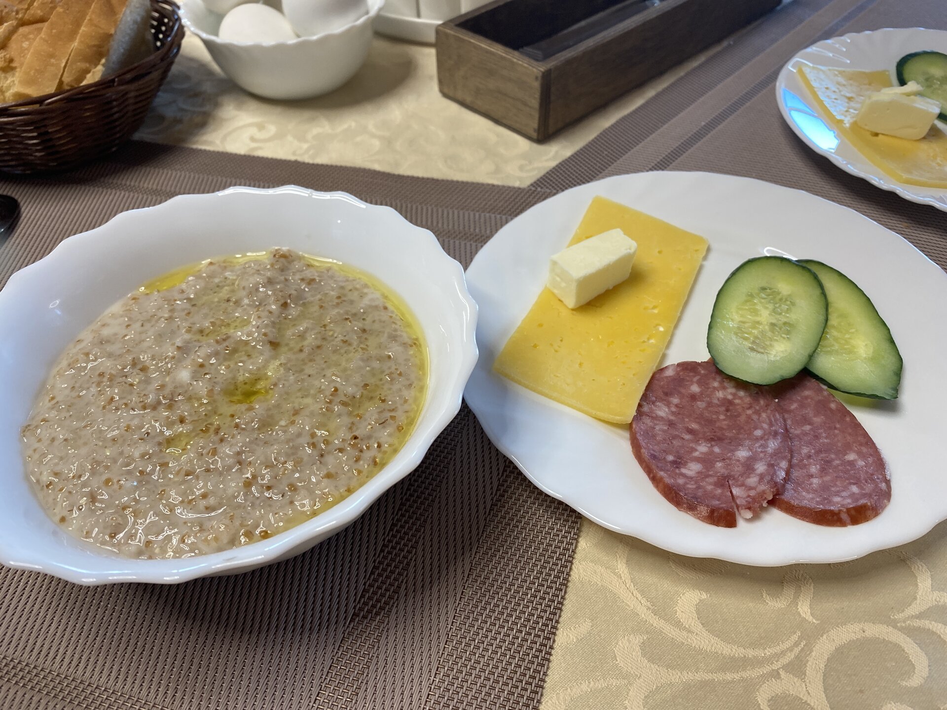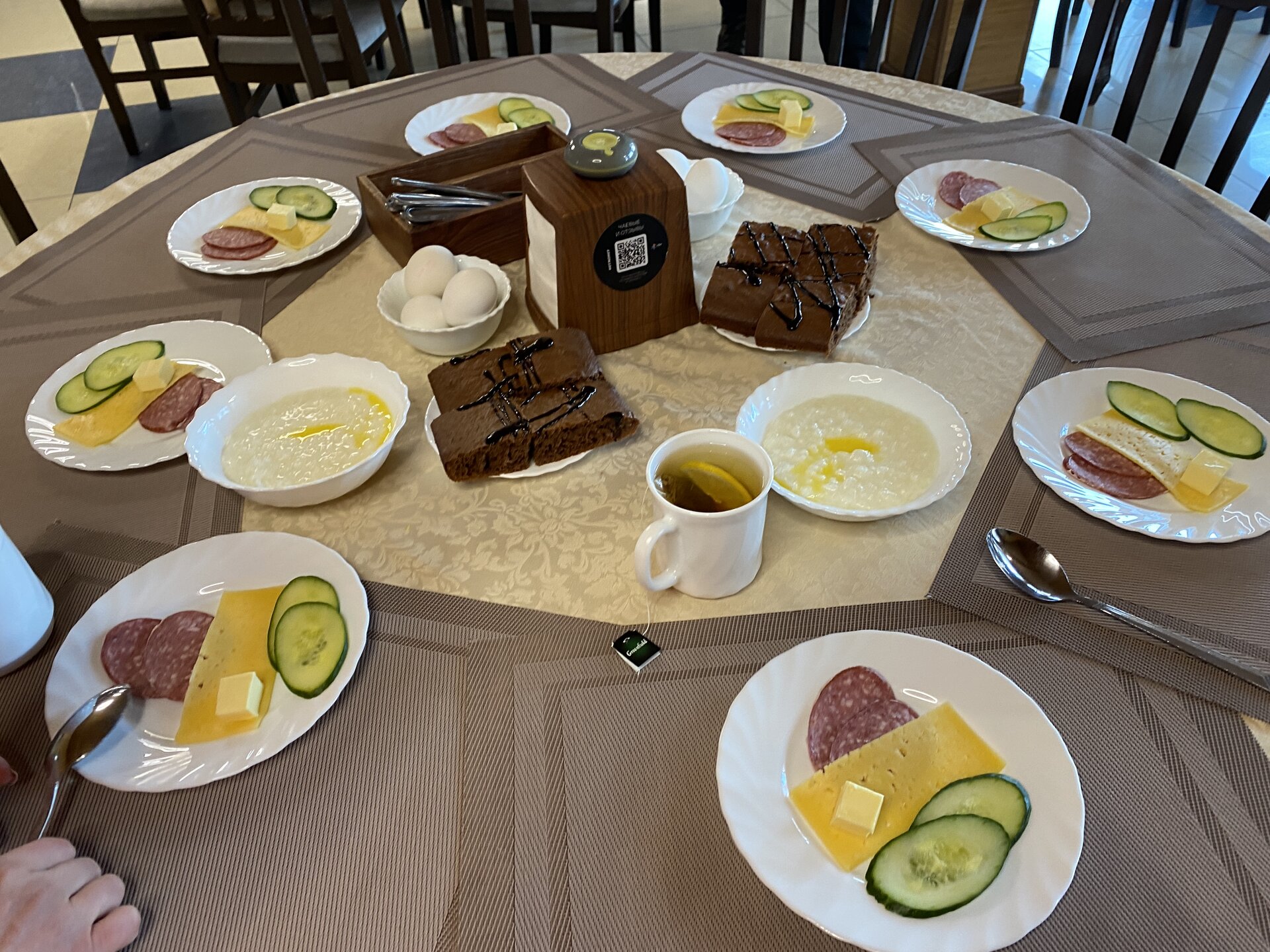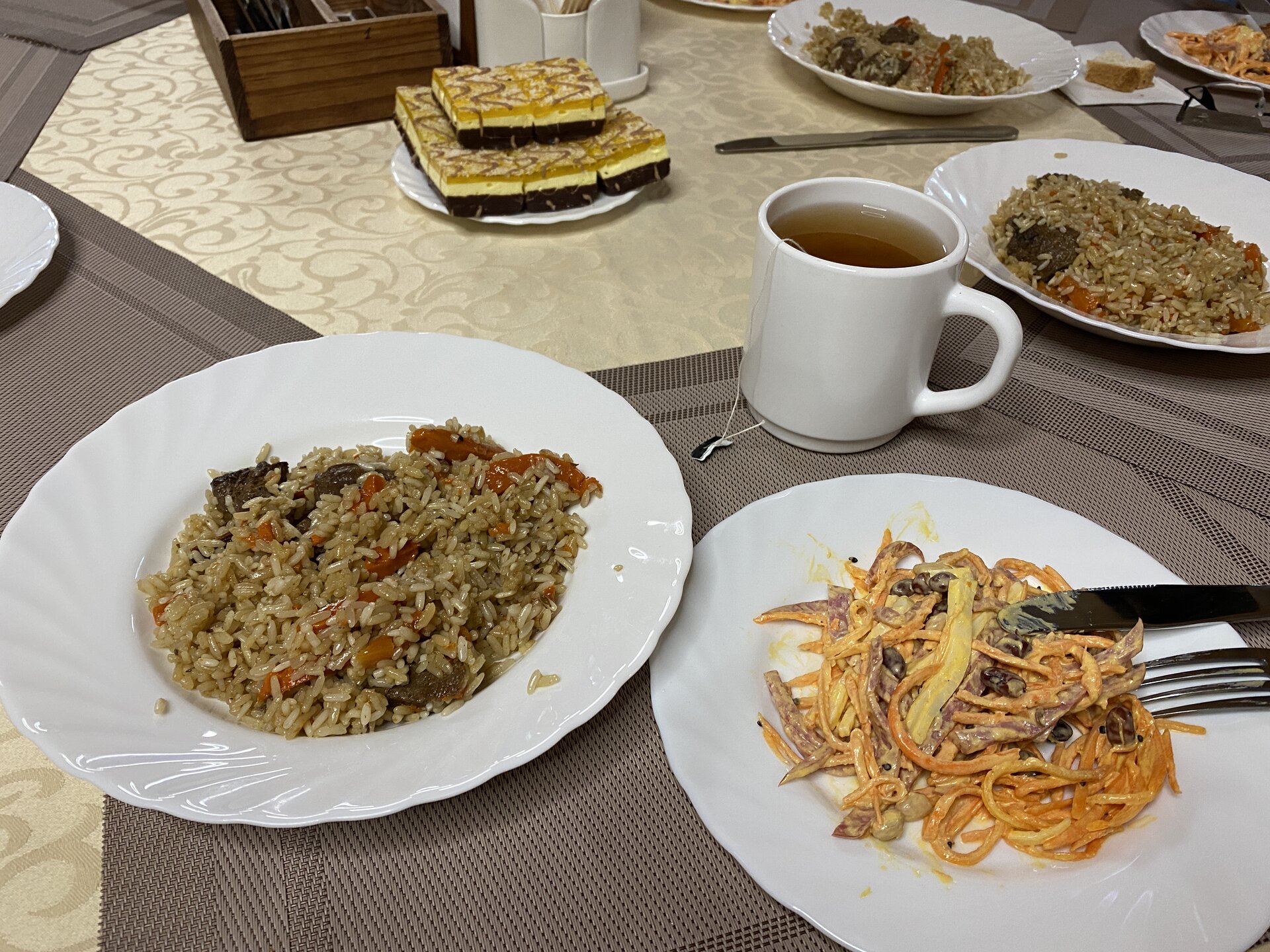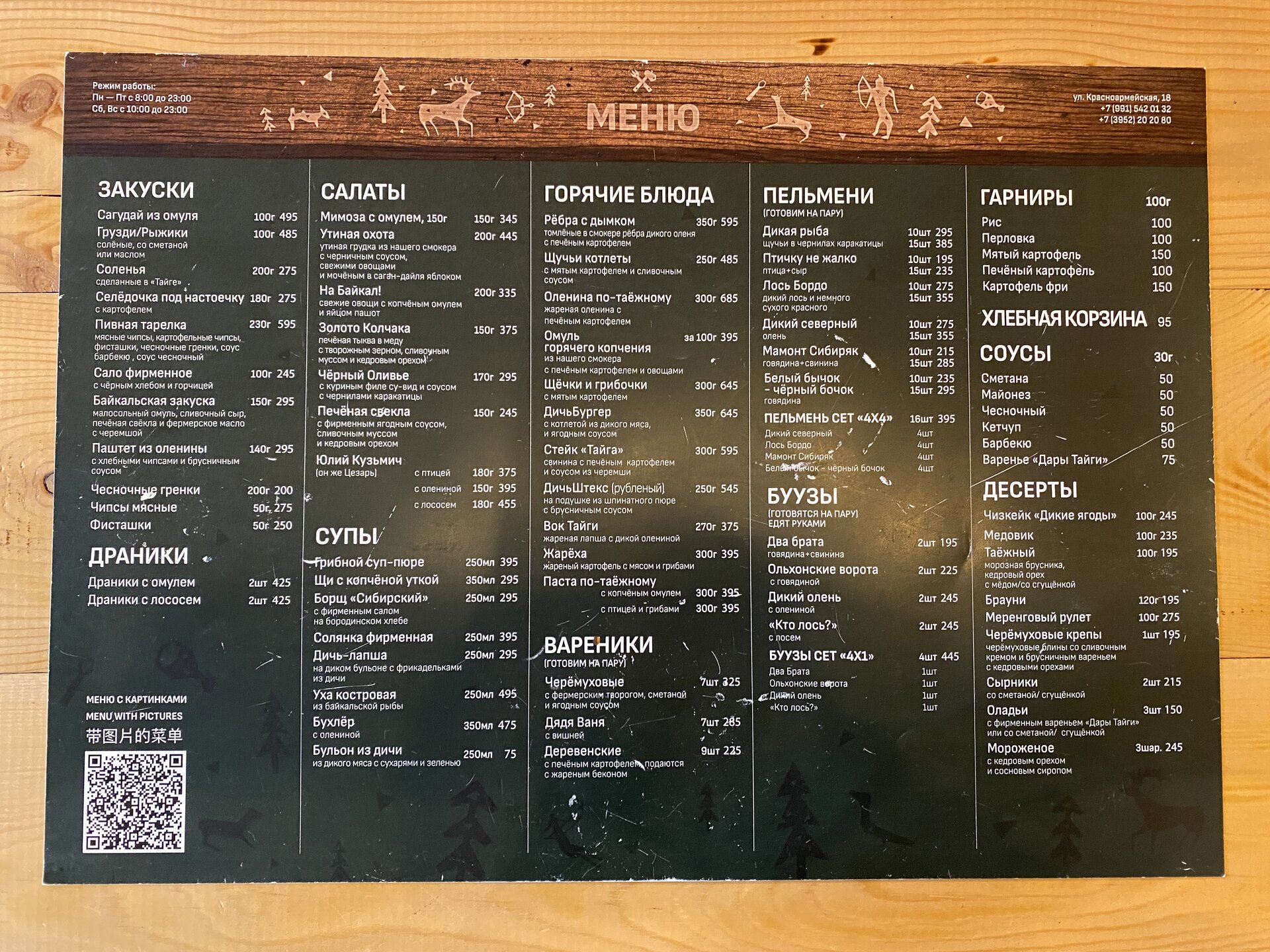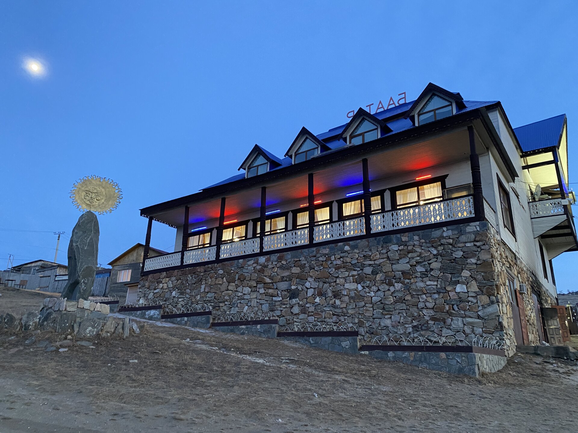 Питание В зимнее время здесь работает лишь один ресторан (круглогодичный). Он находится на 1 этаже развлекательного центра «Баатар», рассчитан на 110 посадочных мест. В меню - блюда бурятской, русской и восточной кухни. Здесь можно организовать и проводить различные мероприятия: от семейных торжеств до корпоративных вечеринок. Свидетелем одного такого семейного торжества мы стали в один из вечеров. Именинницу очень тепло поздравили. У нас по программе были комплексные завтраки и ужины. Кормили вкусно и разнообразно. Можно было делать заказ и по меню, но мне хватало комплекса. Алкоголь (различные местные настойки) наши девочки заказывали в баре за дополнительные деньги. Я же отвыкла пить алкоголь в треккинговых турах. Мы с соседкой по комнате татаркой! по вечерам гоняли чаи. Может я и русская, но живу среди татар (друзья, коллеги и уже даже родственники), чай тоже очень люблю) День рождения отмечала одна семья: Завтраки: Ужины: