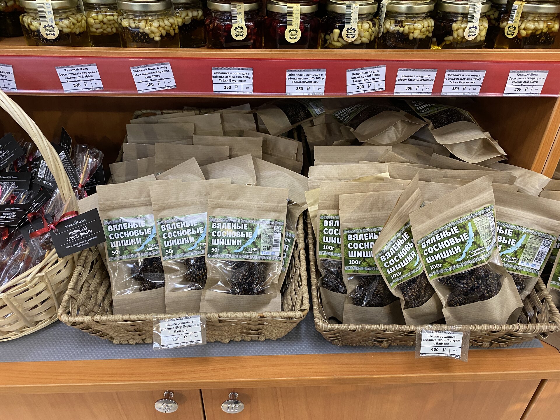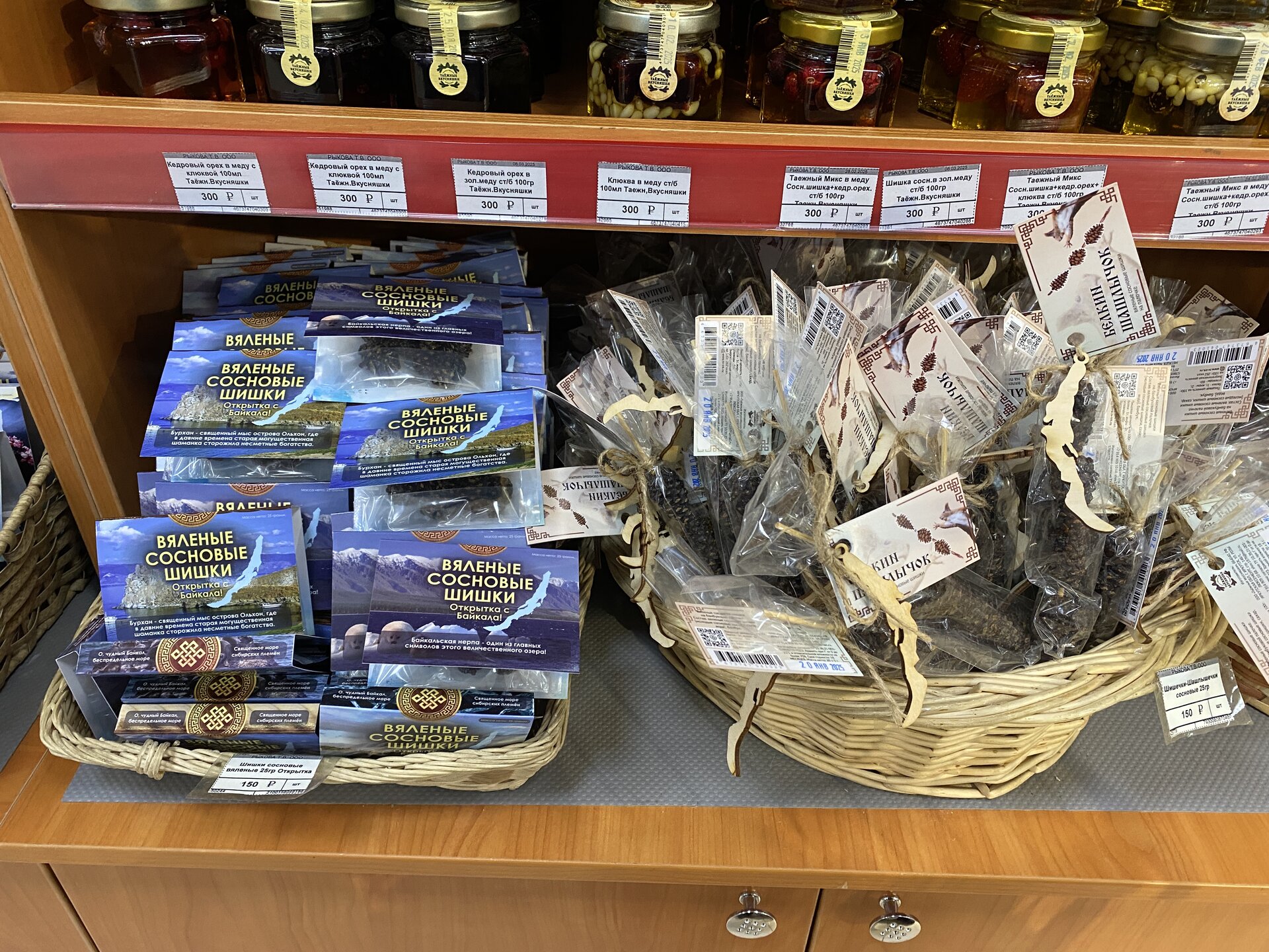 Что привезти с БайкалаНа Байкал едут отдыхать душой и телом, наслаждаться незабываемыми видами на озеро, вкушать местные деликатесы, покупать сувениры, подарки и лакомства. Все это продается в обычных магазинах, на рынках и в супермаркетах. Бывалые туристы рекомендуют отправляться за вкусностями прямиком на продуктовые рынки или в специализированные магазины. Омуль — визитная карточка Прибайкалья. Каждый, кто планирует здесь побывать, обязан отведать этой вкуснейшей рыбы. Мясо у нее нежное, деликатесное, легко усваивается и не вредит фигуре. Свежего омуля с Байкала вы домой точно привезти не сможете, даже в автомобильном холодильнике. Поэтому смело берите рыбку горячего или холодного копчения, желательно в вакуумной упаковке, либо соленую в масле без добавок или с ароматными специями в герметичной таре. Дешевле всего омуль не в специализированных сувенирных лавках, а в обычных супермаркетах. Там он стоит намного дешевле, и есть богатый выбор вариантов в красивых подарочных упаковках. Адреса центральных рынков: - г. Иркутск, ул.Чехова, 22; - г. Улан-Удэ, ул. Балтахинова, 9. Кедровые орехи. Банально, скажете вы. Но побывать на Байкале и не привезти домой мешок кедровых орехов из шишек, собранных в бурятских лесах, куда не ступала нога промышленника, — настоящее преступление. Тем более, стоимость орехов на Байкале намного ниже, чем, например, в столице. Детям интересно будет увидеть настоящие кедровые шишки. Извлечение орехов станет увлекательным занятием, которое увлечет ребенка на долгое время. Оставшиеся пустые шишки станут отличным сырьем для поделок. Сами орешки продаются в упаковках на любой вкус: не только в привычных пакетиках, но и в мешочках и берестяных туесках. Предлагаются туристам и всевозможные сладости. Самые популярные из них – мед с орешками и кедровый грильяж. Такой подарок не только будет напоминать о Байкале, но и порадует своим неповторимым вкусом. Покупать кедровые орехи дешевле в местных супермаркетах. Правда, такого выбора вариантов упаковки, как на рынке, в них нет. Грильяж кедровый. Грильяж с добавками из клюквы, брусники или облепихи можно купить в фирменных магазинах, супермаркетах или на продуктовых рынках. Набор конфет в шоколадной глазури можно купить за 350-400 рублей. Шишки в сиропе. Варенье из сосновых шишек в тягучем сиропе — то, что вы обязаны попробовать на Байкале и прихватить несколько баночек полезного лакомства домой. Варенье облегчает отход мокроты, улучшает пищеварение и расслабляет. Где купить? На рынках или в лавках с сувенирами. Ягодное варенье. В лесах Байкала собирают чернику, бруснику, жимолость, голубику, землянику, клюкву и готовят из всего этого великолепия потрясающее варенье. Его можно купить у бабушек на рынке, в специализированных магазинчиках или в супермаркетах. Вяленые сосновые шишки - содержат полезные компоненты: эфирные масла, смолы, дубильные вещества, витамины С, В, К, Р, каротин, фитонциды и антиоксиданты. Эти компоненты помогают бороться с разными заболеваниями, повышают иммунитет и нормализуют обменные процессы в организме. На любителя. Мне они очень понравились. Можно есть вместо обычных конфет с чаем, украсить ими праздничный салат или десерт (пирог, торт). Травяные чаи. Короткое лето и долгая суровая зима делают травы Байкала поистине волшебными. Концентрация поле