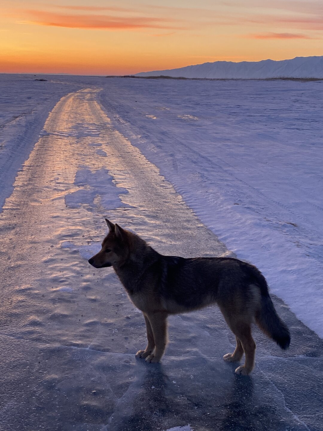 А еще у нас на базе живут собаки, особенно нас умиляла мама с кучей щенят. Она их часто бросала и ходила с нами в походы по льду в заливе Ольхонские ворота. Кстати, щенята симпатичные и их быстро разбирают.