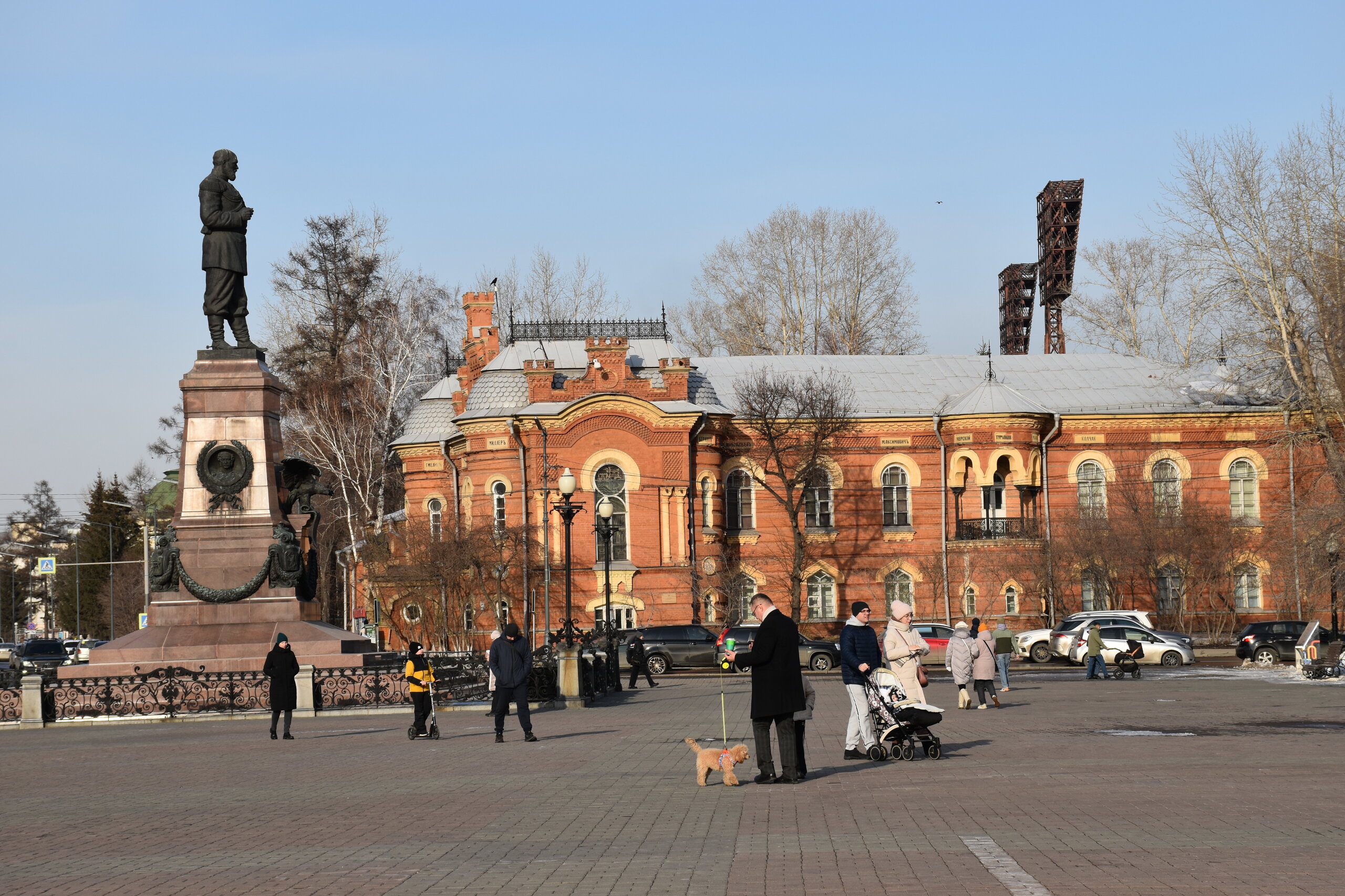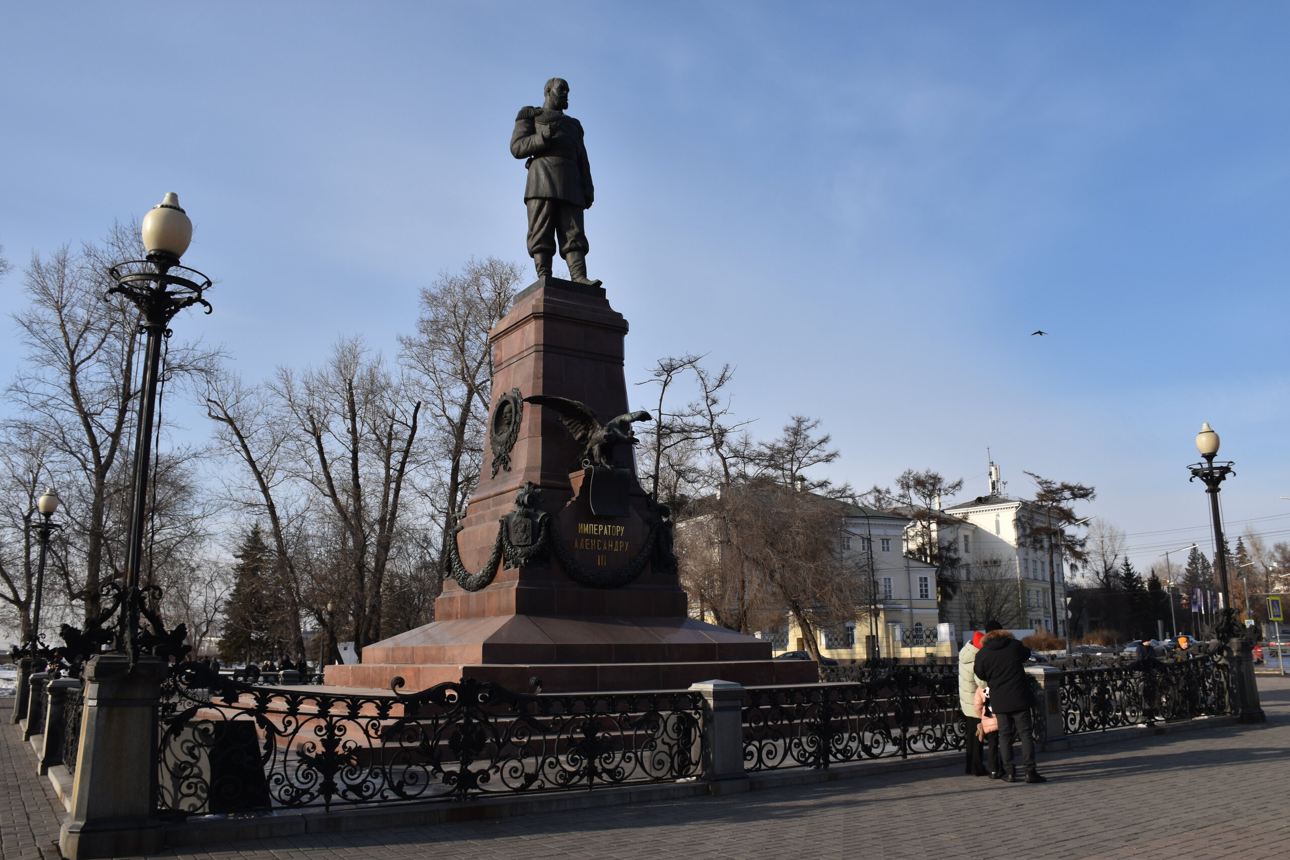 Иду дальше по Карла Маркса к реке Ангара. Иркутский «Белый дом» - бульвар Гагарина, 24. У архитектурного памятника на Гагаринском бульваре богатая история. Особняк в стиле «ампир» возводили в 1804 году для купца Сибирского, а уже в середине XIX века он стал резиденцией губернаторов Восточной Сибири, в том числе и для известного государственного деятеля Муравьева-Амурского. В послереволюционные годы стены роскошного особняка занимал Сибирский ЦИК. В настоящее время в нем располагается Иркутский университет. Иркутский областной краеведческий музей - ул. Карла Маркса, 2. Ни один турист не сможет пройти мимо этого места, так как оно находится по пути основного туристического маршрута. Само здание, построенное в мавританском стиле, привлекает взор, а его внутреннее наполнение стоит уделенного времени. Краеведческий музей Иркутска был создан в 1792 году по инициативе действующего губернатора города – Н. Ф. Клички. Сегодня музей насчитывает 7 подразделений, каждое из которых отвечает за определенную экспозицию и располагается по отдельному адресу. В отделе истории можно узнать о коренных сибирских народах – эвенка и тофаларах, а также прикоснуться к быту и культуре бурят. Здесь можно рассмотреть древние археологические находки и документы. В отделе природы можно изучить зоологические и геологические коллекции, которые подробно познакомят с местной флорой и фауной. Верхняя набережная привлекает туристов променадом по бульвару Гагарина. Отсюда открывается изумительный вид на величественную Ангару, кроме того здесь можно сесть на речной трамвайчик и отправиться на водную прогулку по реке. Бульвар Гагарина, названный в честь первого космонавта, представляет собой широкую асфальтированную улицу. Здесь можно отдохнуть на лавочке, которых на бульваре предостаточно, прокатиться на велосипеде и роликах, а также просто прогуляться, разглядывая памятники и скульптуры. На бульваре Гагарина есть монумент Погибшим милиционерам, бюст Юрия Гагарина и памятник Александру III. Летом на бульваре можно купить мороженое, которое продают в уличных лотках, или пообедать в ресторане или стейк-хаусе. В теплую погоду здесь часто поют уличные музыканты, а также есть развлечения для детей – батуты, электрокары, детская площадка. В праздники на бульваре Гагарина проводят культурно-массовые мероприятия. Бульвар Гагарина – наиболее обустроенная часть Верхней Набережной Ангары. Он представляет собой широкую пешеходную улицу с бетонированной дорожкой вдоль реки. Вдоль бульвара посажены хвойные и лиственные деревья, разбиты живописные клумбы. На всём протяжении улицы стоят скамейки. На одном из участков Ангары сооружен фонтан. На Бульваре Гагарина стоит памятник Александру III. В 1908 году по повелению императора Николая II в Иркутске установили памятник Александру III – инициатору строительства Транссибирской железной дороги. В 1920 году памятник демонтировали, отправив бронзовую фигуру царя на переплавку. Долгое время постамент пустовал, но в 2003 году скульптуру императора отлили вновь и вернули на прежнее место. Фигура императора выполнена в полный рост, он одет в казачий мундир. На постаменте – фигура орла с расправленными крыльями, держащего документ с указом о строительстве Транссиба.