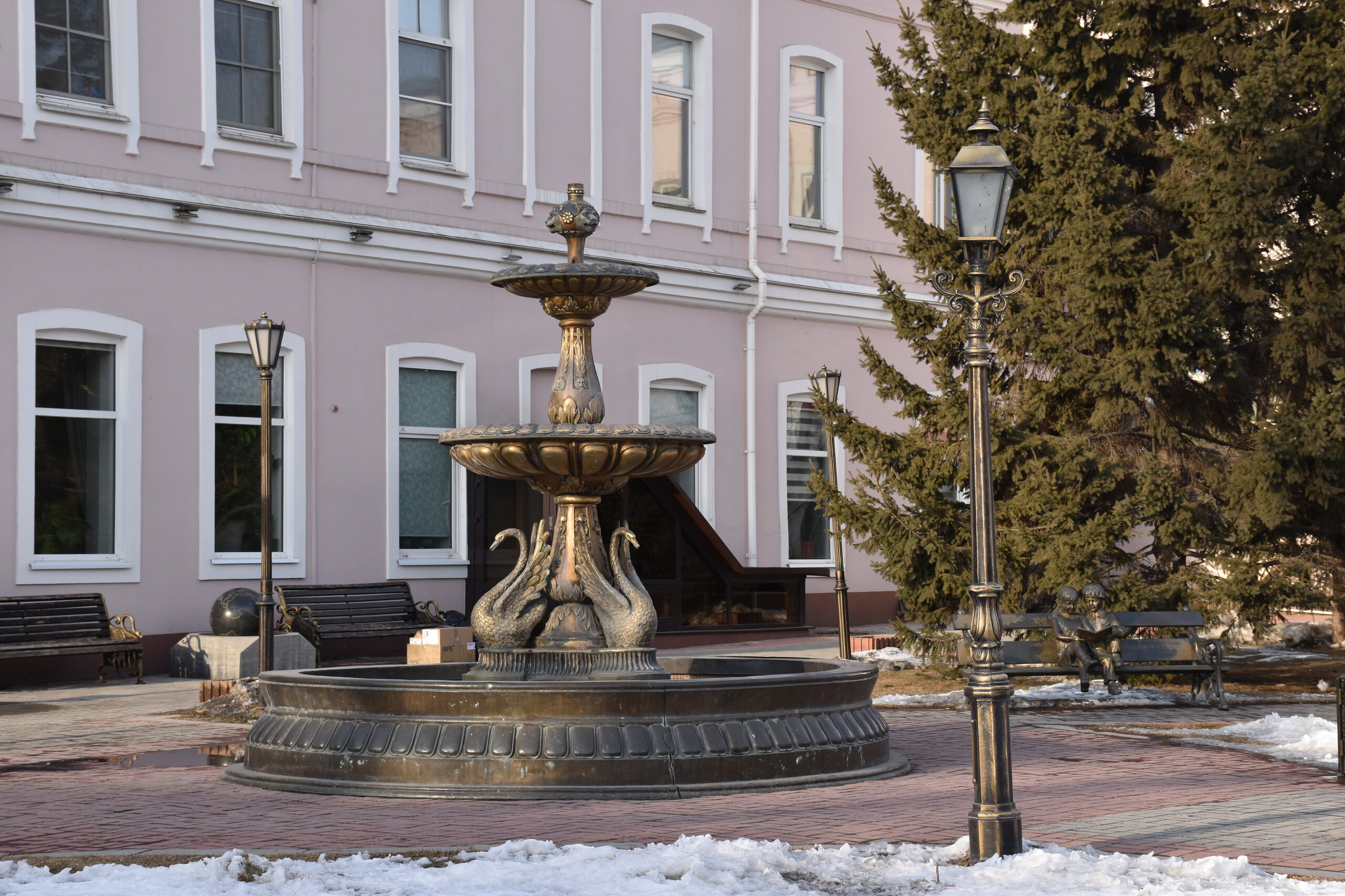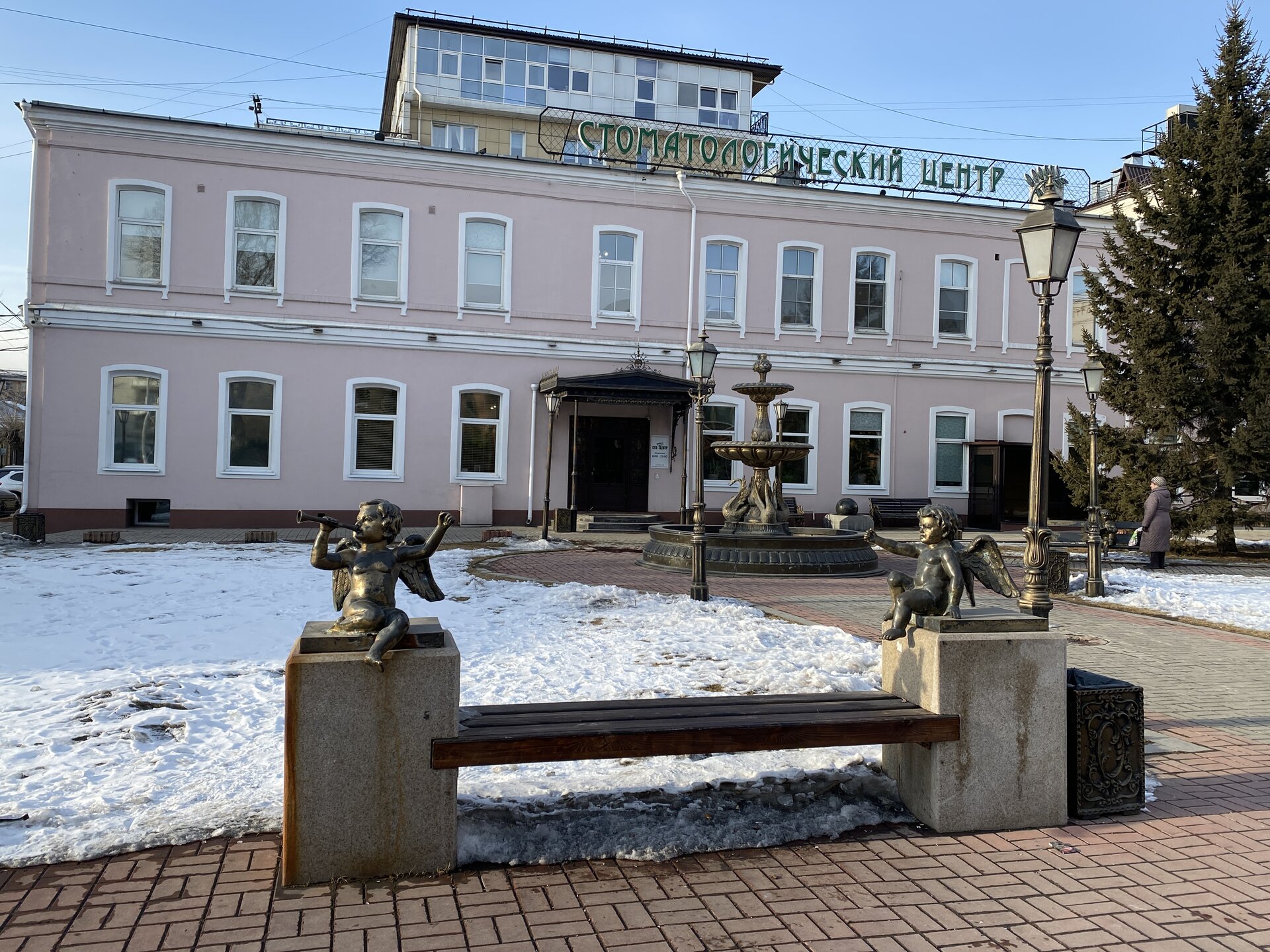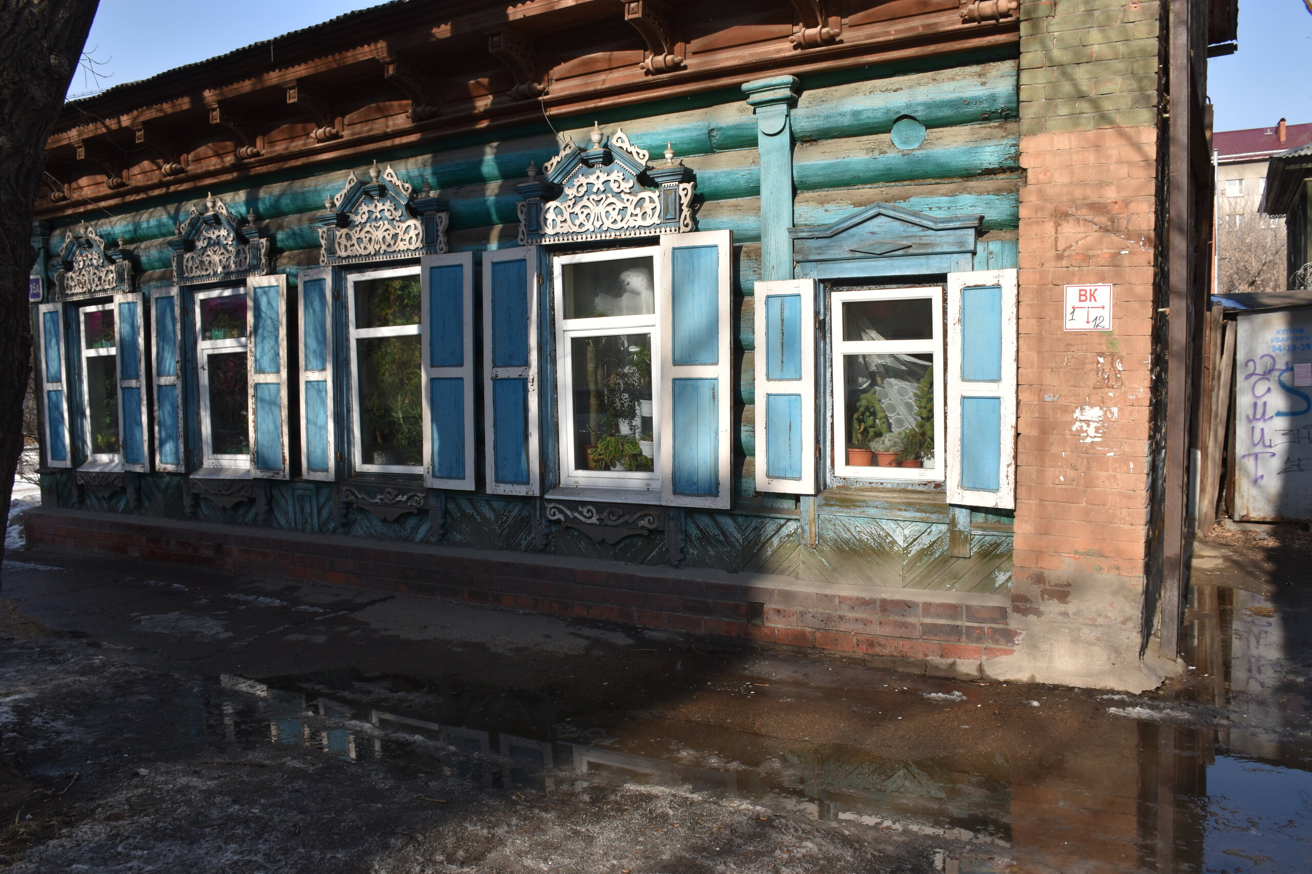 Иду по улице Декабрьских событий. Следующая остановка у Купеческого сквера. Здесь целый комплекс красивых деревянных домов, а также офис Инфоцентра. В одном из домиков я набрала кучу макулатуры) Купеческий сквер — сквер в Иркутске, расположенный на пересечении улиц Декабрьских Событий и Фридриха Энгельса, напротив Дома Европы. Современная благоустроенная территория. Дом купцов Шастиных (ул. Фридриха Энгельса, 21) - также известен под названием «кружевной дом». Построен в XIX веке в стиле русского барокко. Большая часть украшений дома появилась в 1907 году, когда владельцем дома стал купец Шастов. Кровля дома имеет сложные очертания с башенками, фасад украшен декоративными фигурами и резными деревянными столбиками. Оконные наличники имеют уникальную рельефную «кружевную» резьбу и изящный орнамент. В период советской власти уход за домом не осуществлялся, и он утратил свой нарядный внешний вид, однако в 1997 году было принято решение отреставрировать здание. Задача была трудной — необходимо было сохранить уникальность резных наличников и фасадных узоров. Сегодня усадьба представляет собой архитектурный комплекс, который позволяет зрительно воссоздать облик Иркутска 18-19 столетий.