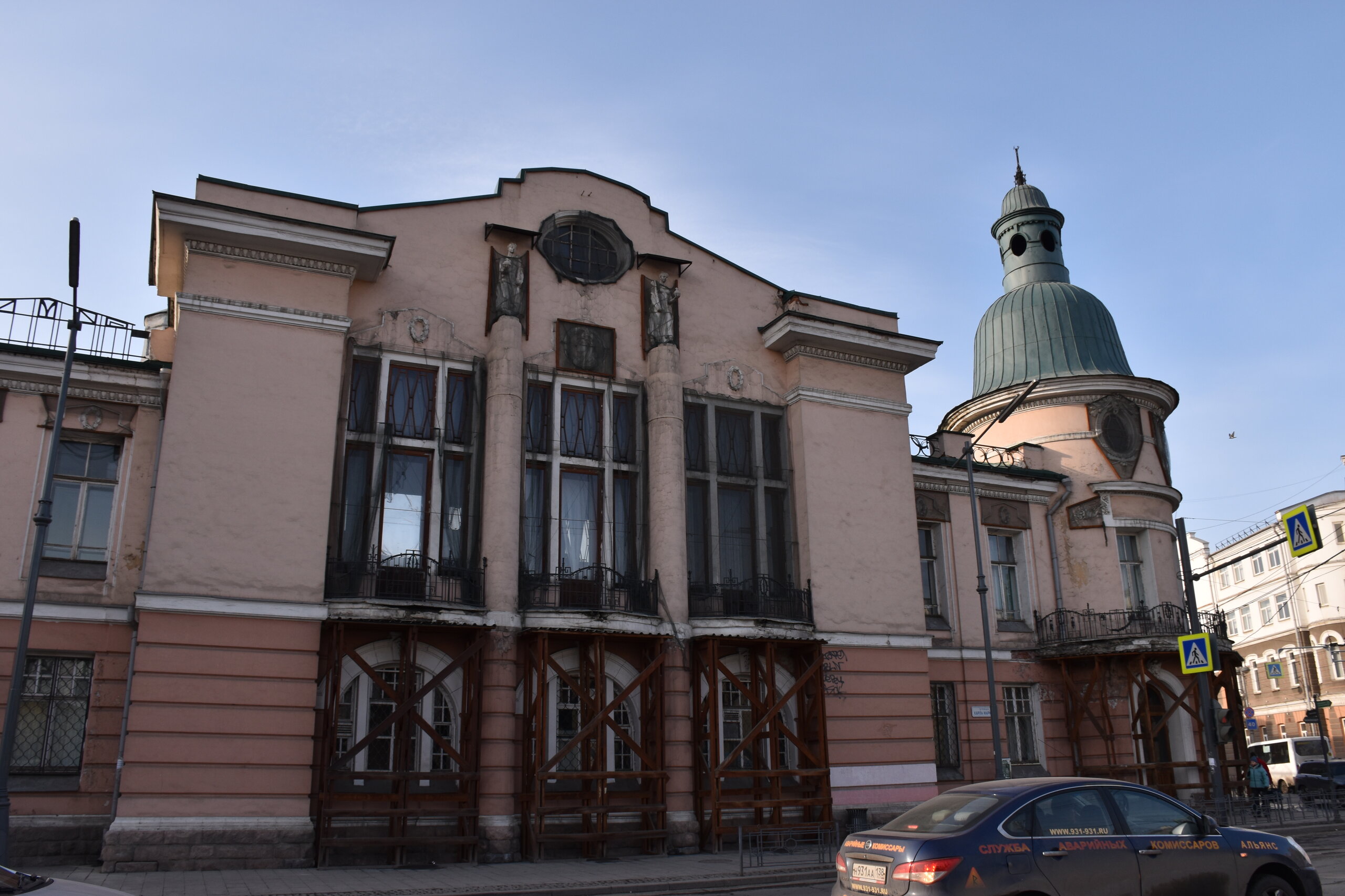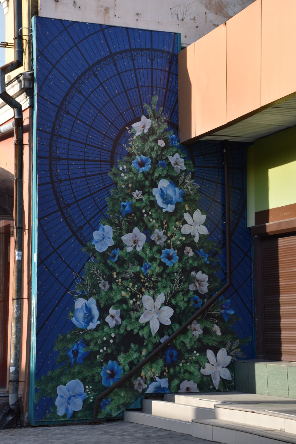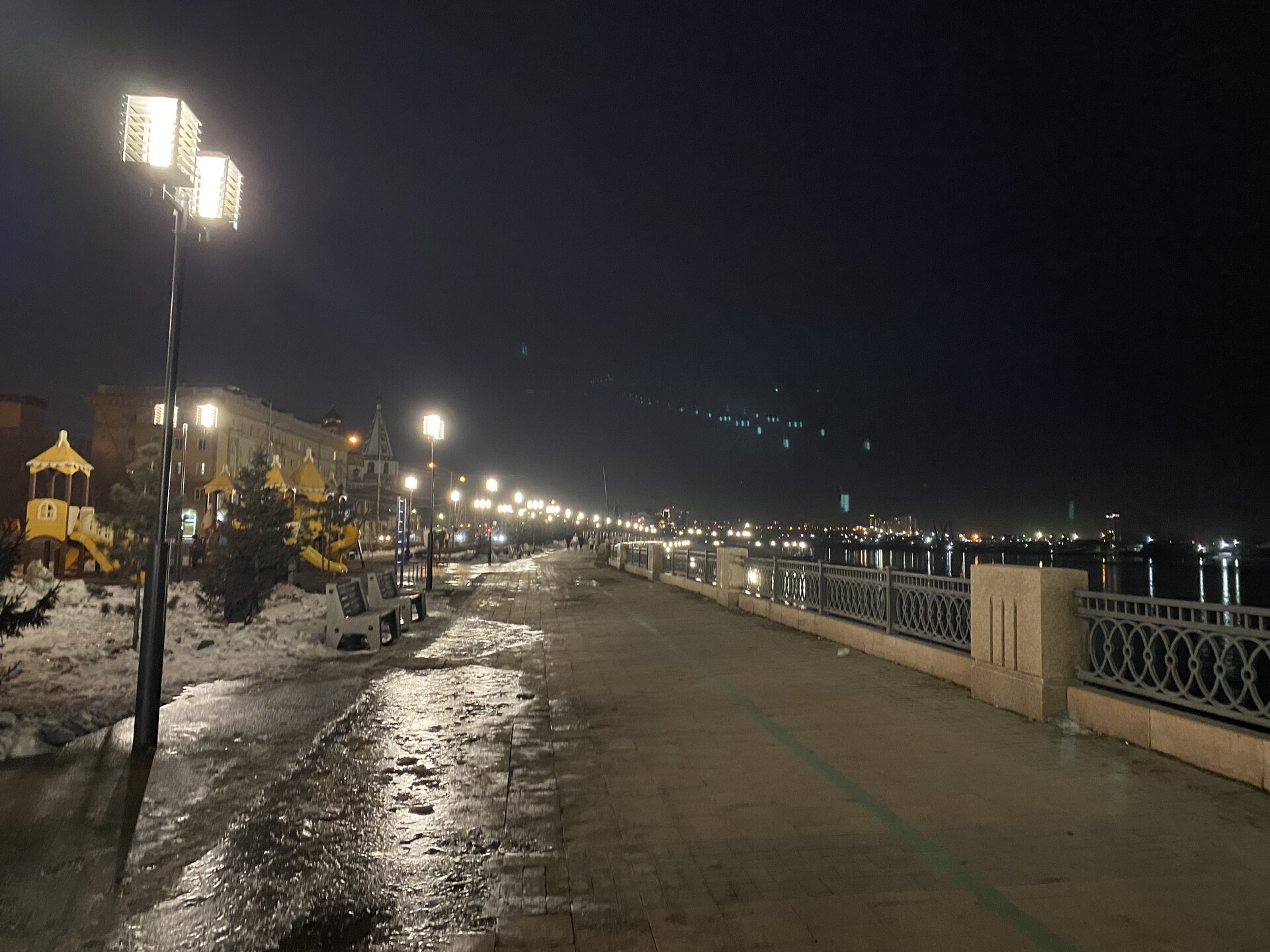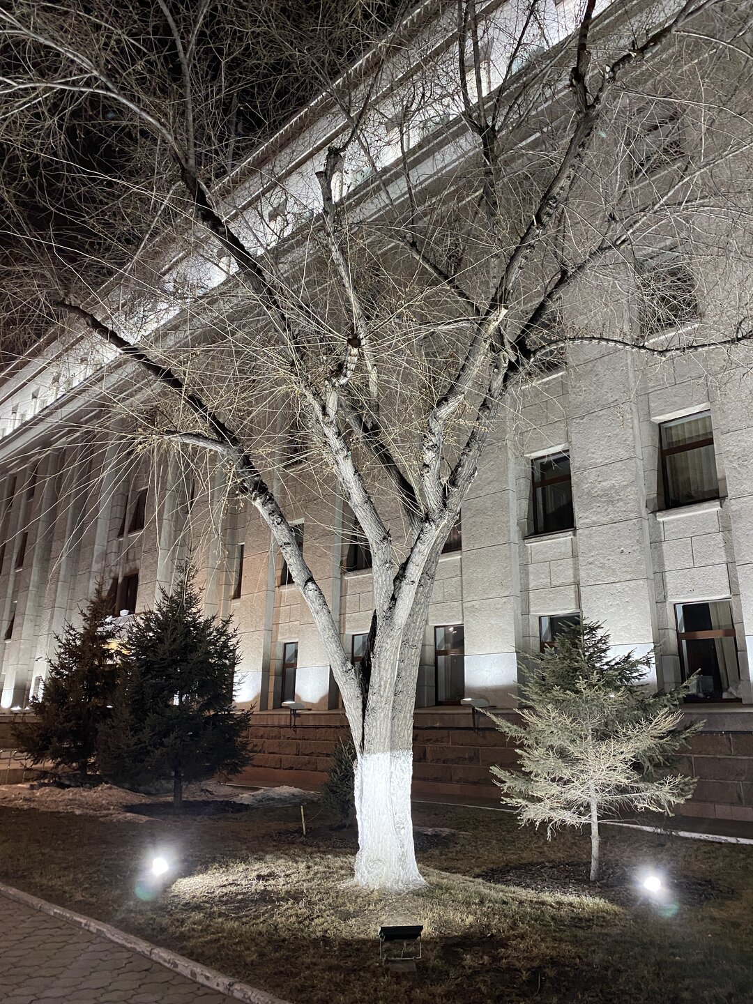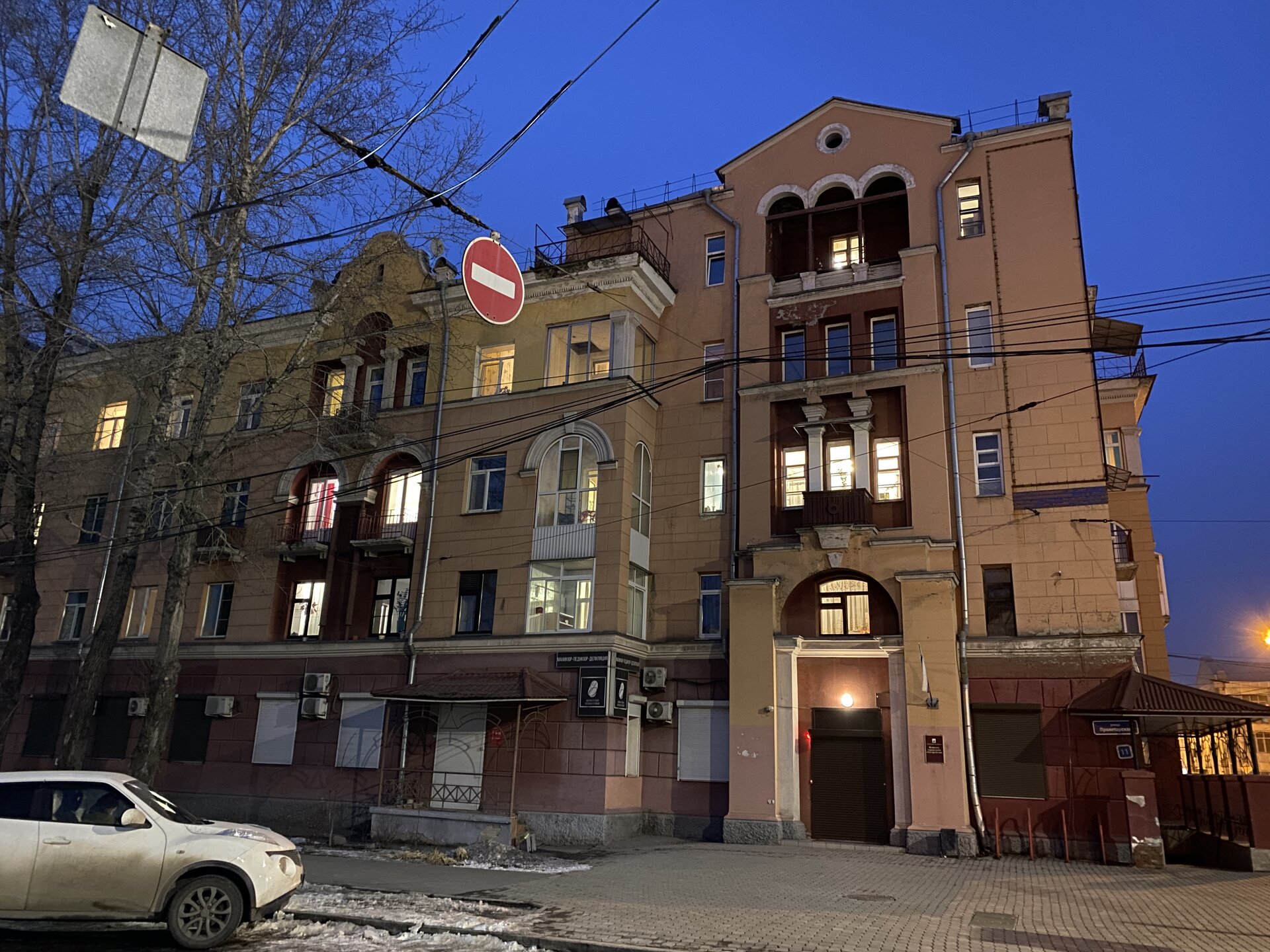 Напротив кафе "Тайга", где я ужинала, красивый собор. Крестовоздвиженский храм является одним из наиболее ярких примеров сибирского зодчества. Его уникальность в том, что он представляет сочетание русских, украинских и даже буддийских мотивов. Начало строительства церкви датируется 1747 годом, а продолжалось оно в течение 13-ти лет. Главной особенностью храма является интересный и сложный орнамент, который украшает стены постройки. Ему характерна нетипичная для православных храмов восточная стилистика, а многие исследователи полагают, что в узоре зашифровано некое послание. Внутреннее убранство церкви очень богато – в ней содержится более 600 икон, большая часть которых уникальна в своем роде и обладает высочайшей художественной ценностью. Примечателен Иконостас церкви – он создан еще в XVIII веке, а его резной орнамент создает необычный эффект «золотой кожи». Некоторые иконы в храме редкие настолько, что их настоящее значение до сих пор остается неизвестным и требует детального изучения. После ужина я отправилась по улице Ленина в сторону делового центра города. Улица Ленина. Старейшая в городе улица Ленина сформировалась в XVIII веке и получила название Морской — через неё шёл путь от Спасской площади к Байкалу. В XIX веке она становится центральной и застраивается административными зданиями, магазинами, учебными заведениями, богатыми особняками. Это была первая городская магистраль, где появились тротуары и масляные фонари. После сильного пожара 1879 года на Амурской (название, которое носила улица с середины XIX века) разрешили строить только каменные дома. На современной улице Ленина сосредоточены архитектурные и культурные достопримечательностей города — площадь Графа Сперанского, Художественный музей им. Сукачёва, Геологический и Художественный музеи, Театр юного зрителя, особняки XIX века. По традиции, на главной улице расположены рестораны, кафе, крупные магазины, сувенирные лавочки. В тёплое время года, благодаря благоустроенным скверам, здесь очень зелено и уютно. С улицы Ленина я свернула в переулок в поисках красивого мурала. Любители уличного искусства оценят мурал на стене Центра гигиены и эпидемиологии (ул. Горького, 24). Немного сбилась со своего маршрута и вышла к улице Карла Маркса. В подсветке эта улица тоже хороша, но в моем плане совсем другой маршрут. Довольно быстро вышла к запланированной площаде Труда. Главное на этой площади — Иркутский государственный цирк. А еще на площади находится популярный у туристов и местных жителей памятник Леониду Гайдаю, установленный в 2012 году. Скульптурная группа изображает момент съемок кинофильма: с одной стороны — известный режиссер, а с другой — известные герои его кинофильмов. Скульпторы: А. Миронов, Л. Сериков. Архитектор: С. Демков.