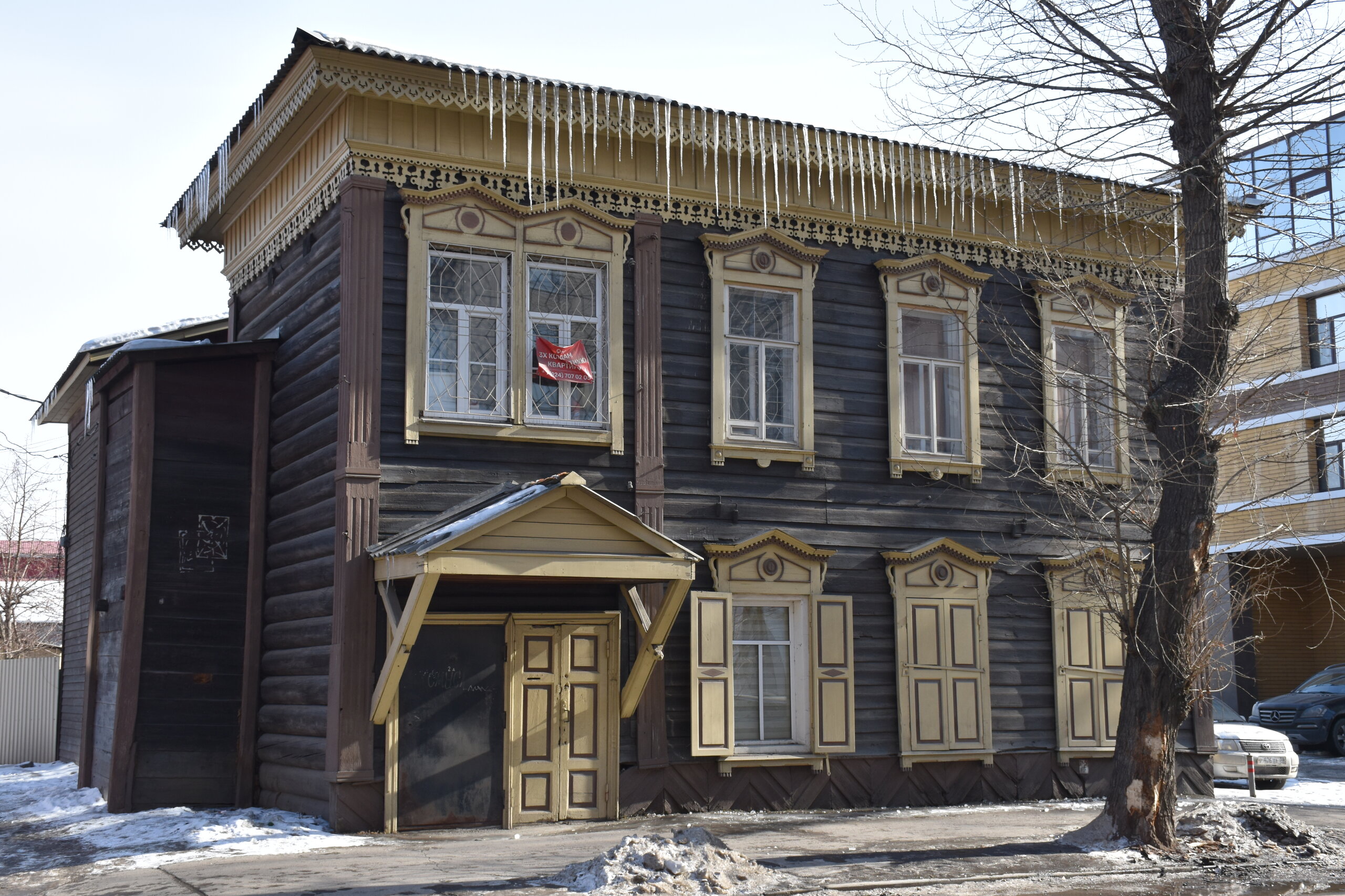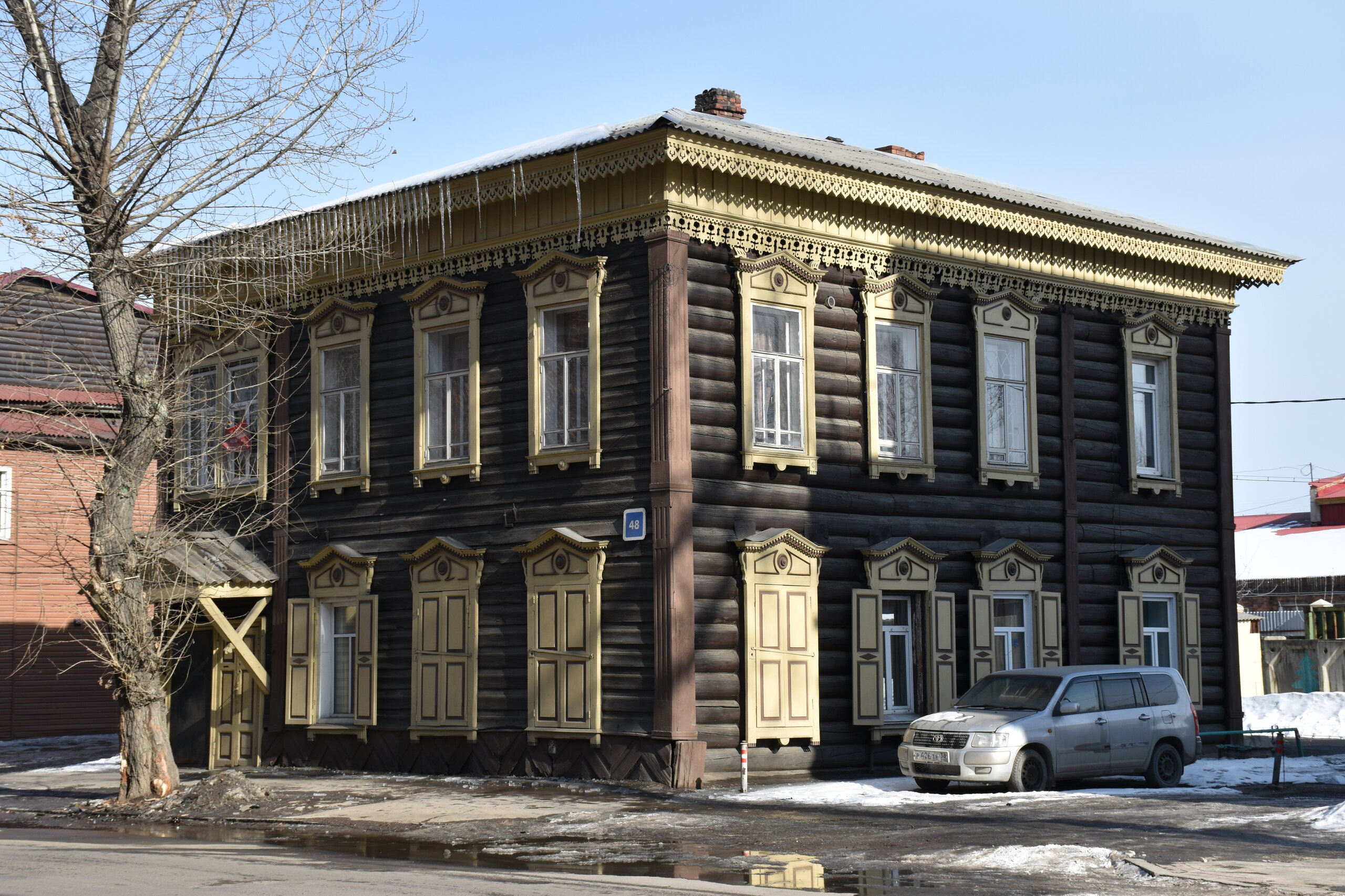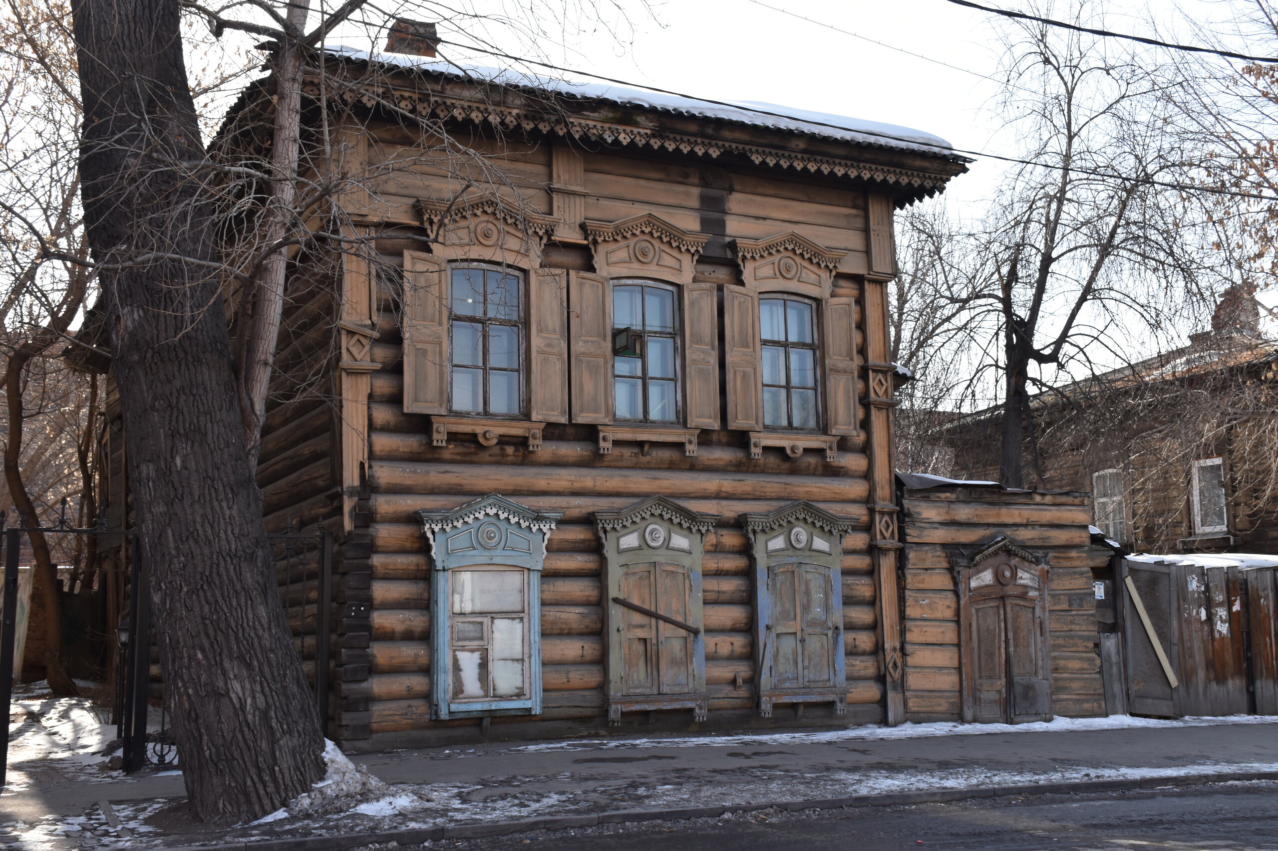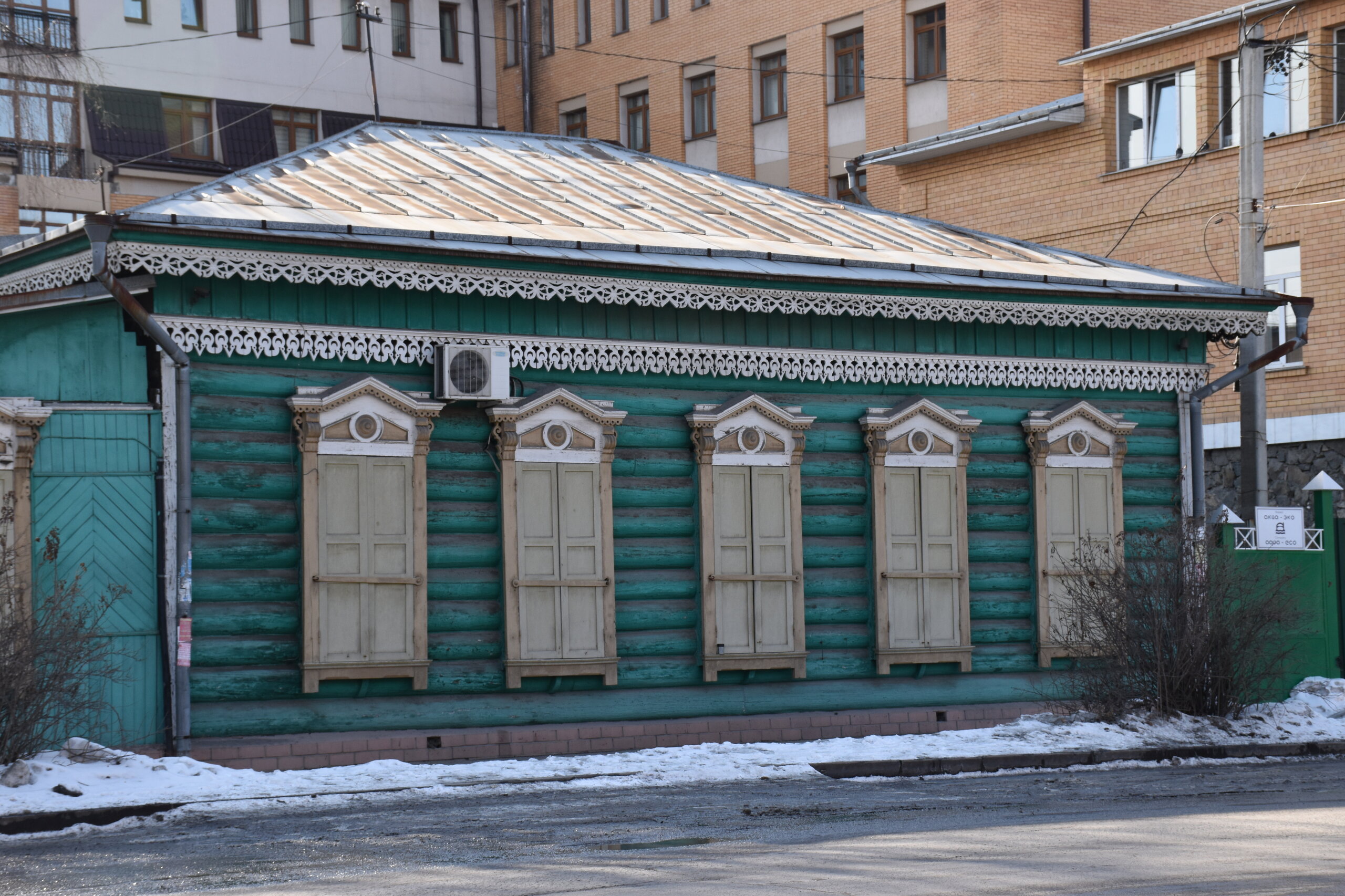 Модерн и деревянное зодчество Иркутска Многие представляют главный город Восточной Сибири современным, многоэтажным, с офисными зданиями и торговыми центрами. Однако в первую очередь Иркутск – город деревянного зодчества и модерна. Центр Иркутска решили фактически законсервировать, по возможности оставив таким, каким он был в начале прошлого века, а все современное строительство вынести на окраины. Потому в Иркутске сохранилось так много деревянных домов – буквально целые улицы кое-где заметно ушедших в землю домов, с резными наличниками и палисадниками. А вдоль магистральных улиц и площадей выстроились великолепные каменные дома в стиле модерн – свидетельства процветания местного купечества, разбогатевшего на торговле пушниной, золотом, китайском чаем. Конечно, не обошлось и без «вставных зубов» — зачастую между старинными домами небрежно вклинивается образец современной архитектуры. Встречаются улицы, по одной стороне которых тянется ряд деревянных домов, а по другой – многоэтажки. И эта дисгармония на первых порах раздражала («а ты поживи в таком деревянном доме» - отвечают местные). Но по мере того, как вы будете изучать город и привыкать к нему, эти раздражающие детали будут уходить на второй план. Зато невозможно не восхищаться затейливыми купеческими домами, кружевными наличниками изб, не слишком древними, но красивыми церквями. Моя первая и самая дальняя точка от центра - музей-усадьба В. П. Сукачева. Художественный музей Сукачева представляет собой комплекс старинных особняков и прилегающий к ним парк. Усадьба общественного деятеля и благотворителя В. П. Сукачева – это настоящий памятник иркутского зодчества. В комплекс зданий входит картинная галерея с зимним садом, дом, где проживала прислуга, конюшня, гостевой домик, беседка и пейзажный парк. В главном доме разместилась экспозиция, благодаря которой можно больше узнать о быте семьи Сукачева. Здесь представлены предметы обихода, принадлежавшие членам семьи, а также предметы тех времен – антикварная посуда, мебель, картины. В остальных знаниях часто проводятся временные выставки.