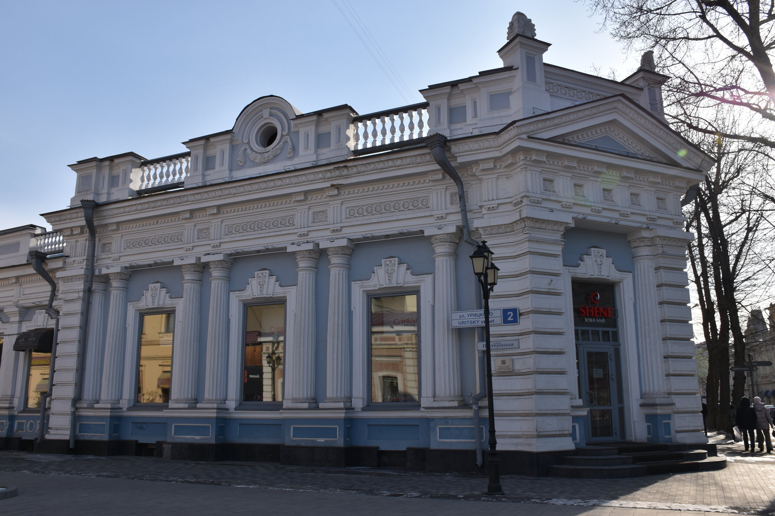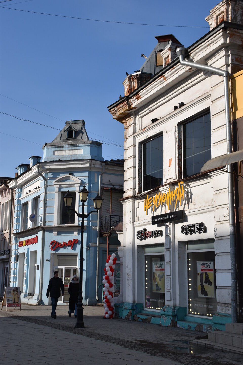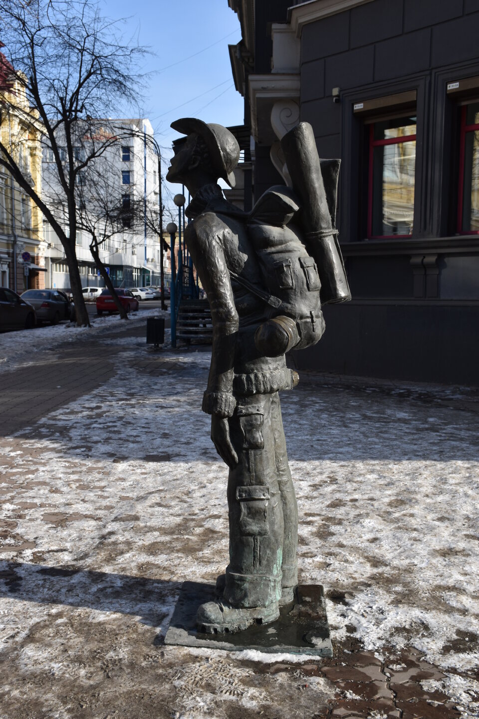 Возвращаюсь обратно на К.Маркса. Сворачиваю на ул.Урицкого. Это главная пешеходная улица Иркутска, вдоль которой расположились магазины, кафе, рестораны, а во дворах — современные бары. Ведет от улицы Карла Маркса к Центральному рынку, где можно прикупить знаменитые конфеты «Грильяж» с кедровыми орешками или рыбу в подарок. В 18 веке она соединяла два городских базара: Мелочной и Хлебный — на их месте сейчас Цирк и Центральный рынок. Улица всегда была торговой: именно здесь уже позднее, в конце 19 века, располагались магазины купцов-иркутян, а в 1906 года даже продавали автомобили. Один из ярких памятников архитектуры — бело-голубая усадьба Аксенова-Тышко, где сейчас вы обнаружите с десяток магазинов. Главный архитектурный памятник — дом купца Родионова (Урицкого,3). Памятник «Туристу» работы скульптора Игоря Ставского, 2011 год. Усадьба Никитина на пересечении улиц Карла Маркса и Литвинова украшена пышным декором в начале XX века. Два этажа здания в стиле неоренессанс занимала гостиница «Гранд-Отель». На первом этаже были магазины швейцарских часов, книг, кафе и бильярдная. После революции отель национализировали, а внутри проводили партийные съезды. Теперь первые этажи снова занимают магазины.