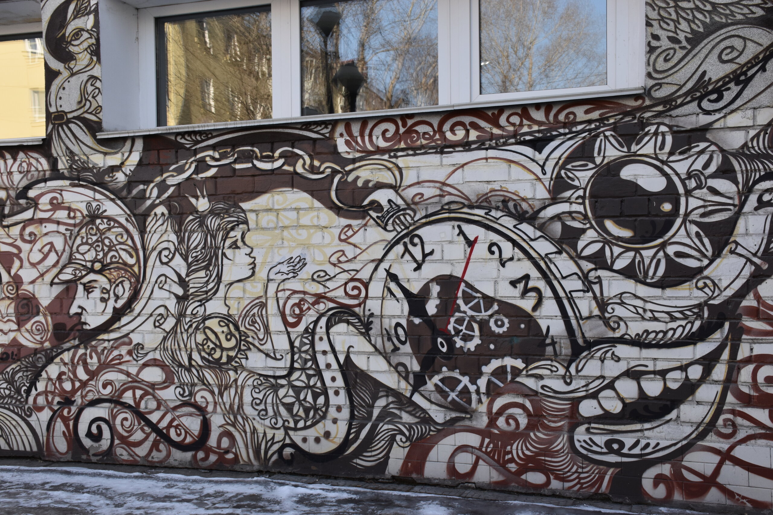 Прежде чем выйти на главную улицу города - Карла Маркса, я еще немного погуляла по ул.Дзерджинского, нашла симпатичную арку с граффити, свернула на улочку Карла Либкнехта. Здесь много деревянных домов и совсем нет туристов.