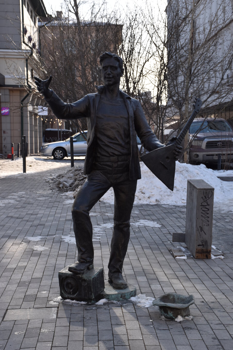 За Русско-азиатским банком советую заглянуть в Дворик на ул. Ленина, 36. В этом дворике много интересных скульптур: бронзовые обезьяны, купидоны, коровы, лебеди, мыслители, читатели, биг-бэн и книга с отпечатком ладони и надписью «Прикоснись, и в Космос отправится частичка добра. Именно к тому, кому она нужна в эту самую минуту». Всё это — добрый подарок иркутянам от Стоматологического центра, расположенного по соседству. «Мидзару, кикадзару, ивадзару». Считается, что три обезьяны символизируют идею недеяния зла и отрешённости от неистинного. Японская мудрость: «Если я не вижу зла, не слышу о зле и ничего не говорю о нём, то я защищён от него».
