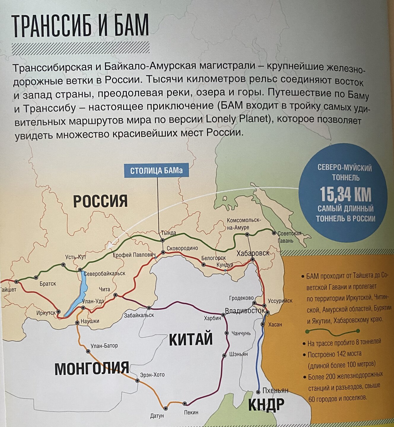 Транссиб и БАМ Транссибирская магистраль (Транссиб) и Байкало-Амурская магистраль (БАМ) — железнодорожные дороги, проходящие через всю Россию. Этот факт знает каждый россиянин! В этой поездке на Байкал мне удалось прикоснуться к кусочку Транссиб и проехать на знаменитом поезде «Россия» с Иркутска до Улан-Удэ. Эти дороги выполняют роль важнейших транспортных артерий Дальнего Востока, а также пользуются популярностью у путешественников. Реализация проекта Транссибирской магистрали началась в 1891 году. Ее длина достигает 9288 км, что делает Транссиб крупнейшей железнодорожной артерией не только в России, но и в мире. Строительство Байкало-Амурской магистрали стартовало 27 апреля 1974 года. Общая длина этой железной дороги — 4324 км. Транссибирская магистраль объединяет два континента — Европу и Азию. В число главных точек ее маршрута входят Пермь, Екатеринбург, Омск, Новосибирск и другие города. Более 200 км этого железнодорожного пути проходит вдоль берегов озера Байкал. Его самая западная станция — Москва, самая восточная — Хабаровск, а самая южная — Владивосток. Помимо этого, Транссиб открыл России второй выход к Тихому океану. Первые станции БАМа находятся в Иркутской области, а последние — в Хабаровском крае. По пути она пересекает несколько горных хребтов и крупных рек. Маршрут Байкало-Амурской магистрали входит в тройку самых удивительных в мире. Зачем стали строить БАМ, когда уже была дорога на восток? Нашла интересную информацию. Гром не грянет – мужик не перекрестится. – Эта пословица полным образом характеризует строительства Байкало-Амурской магистрали (БАМ). И грянул гром, и неоднократно: Россия (позже СССР) периодически была под угрозой войны с Японией и Китаем (чему с удивительным постоянством «помогали» европейские страны). Транссиб проходит практически по южной границе, и в связи с возможной военной агрессией мог выйти из-под контроля России. Кроме военной была еще одна причина для начала строительства Байкало-Амурской магистрали, проходящей на 400 км севернее Транссиба, – районы Дальнего Востока и Севера нужно было осваивать, разрабатывать, населять и продолжать защищать. Здание железнодорожного вокзала Иркутска - ул. Челнокова, 1. В 1898 году состоялось открытие первого корпуса железнодорожного вокзала Иркутска. В 1907 году был построен второй корпус, а в 1938 году оба здания объединили переходом и надстроили второй этаж. Последующие дополнения привели к появлению в городе уникального архитектурного комплекса, ставшего исторической достопримечательностью Иркутска. На протяжении 100 лет железнодорожный вокзал продолжает исполнять свои функции. В здании, помимо благоустроенных залов ожидания, работают магазины, кафе, парикмахерские. На этом вокзале я провела совсем мало времени, быстро сдала вещи в камеру хранения (автоматическая), нашла быстро по стрелкам. Вечером забрала вещи, рядом туалетные комнаты. Зал ожидания прошел мимо меня. Выход к поездам удобный, через подземный/наземный переход мы не ходили. Билет на 15.03.2025 брала на сайте ржд 09.02.2025. Вагон 12 (плацкарт), место 9 (нижнее), стоимость – 2061, 80 руб. Это середина состава, далеко не ходила, удобно. Наш вагон был полон, большая часть ехали, как и я Иркутск-Улан-Удэ. В моем купе в низу была женщина, бурятка, а наверху 2 мужчины, надо мной беспокойный, всю ночь туда-сюда скак