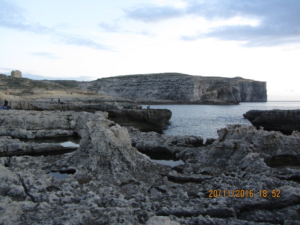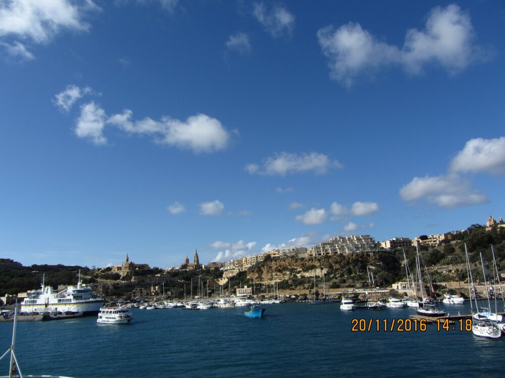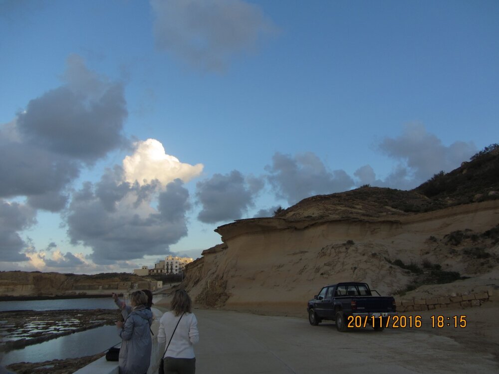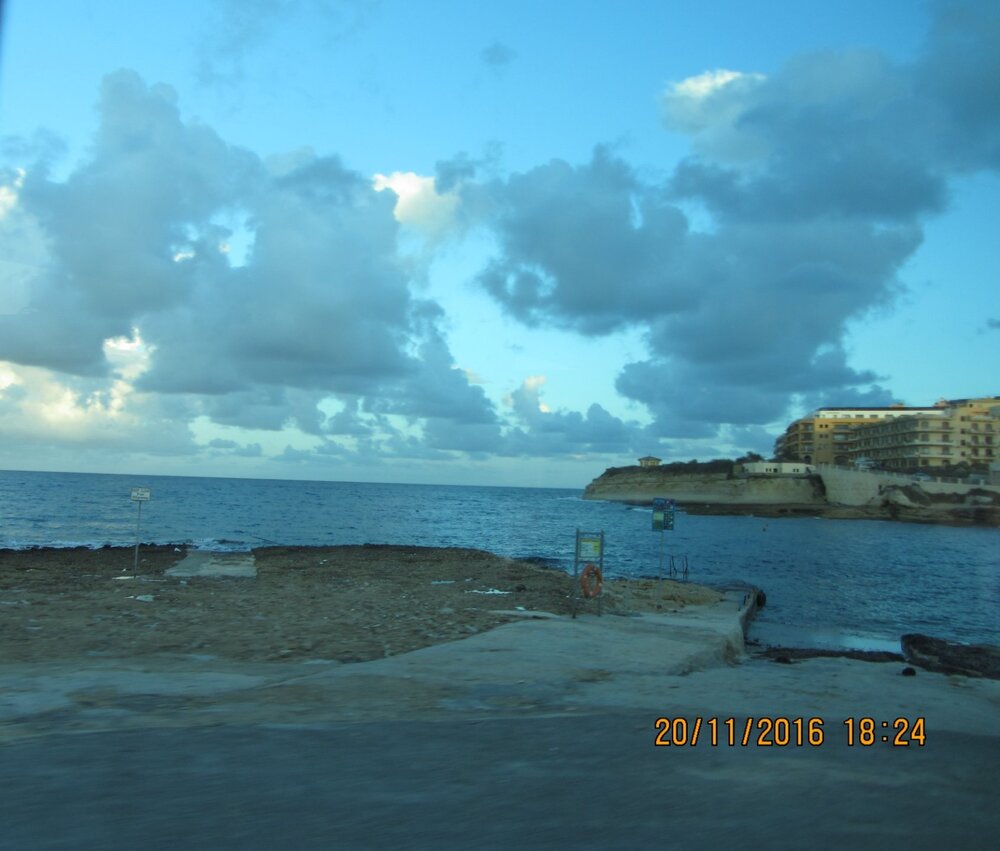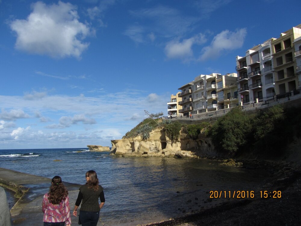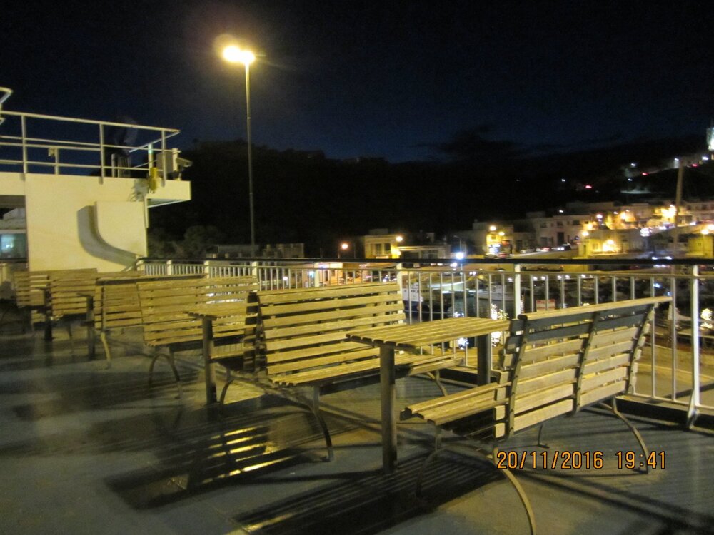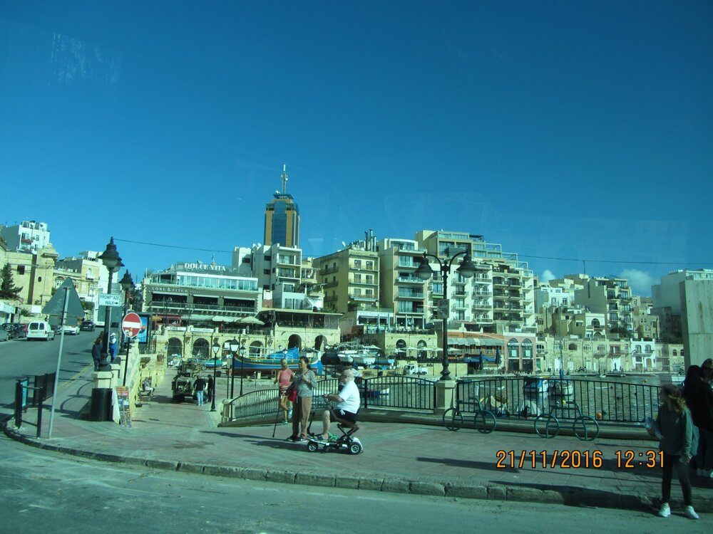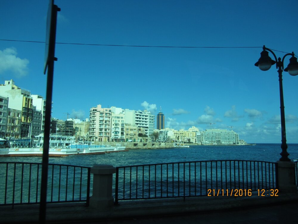 Заключением дня в Слиме согласно программе должен был стать ужин с преподавателями школы английского языка, которую мы посещали, однако все преподаватели были разобраны студентами, также как и места внутри ресторана, и нас разместили на открытой веранде на самом берегу моря. Было очень красиво, но очень холодно. Подошёл представитель школы, сказал, что еда, вино, пиво, водка - без ограничений, выдали пледы, некоторым по два. Вкусная еда, задушевные разговоры и горячительные напитки сделали своё дело - все согрелись и получали удовольствие от общения и лицезрения мальтийских красот.