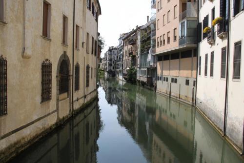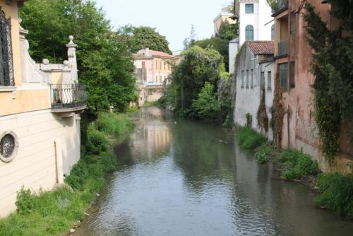 Отлично, спасибо. Пусть это и круглая площадь, но над каналом, стало быть, в некоем роде этот снимок сделан с моста в том месте, после которого виа Рома меняет название на виа Умберто 1. Я не знаю, в какое время рядом с мостом дополнительно перекрыли канал так, что получились улицы и площадь. А канал идет дальше и поворачивает почти под прямым углом, и там дальше "набережная" называется riviera Ruzante и только потом переходит в riviera Businello.