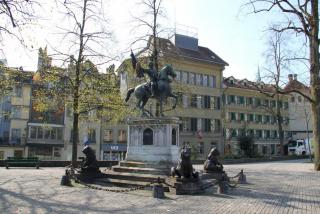 Докладаю, Эльвира. После того, как я немного поработал императором Рудольфом Вторым, сидя в свой любимой Праге ( "Пражский затворник"), меня неожиданно направили в командировку в Швейцарию в Берн. Там я выращивал медведей для символа города, скакал на коне и все. Поэтому благодарные потомки такой памятник и установили. После Берна еще успел поработать первым независимым мэром Цюриха. В честь такого события те же самые благодарные потомки построили мост в городе через реку и назвали этот мост соответственно.