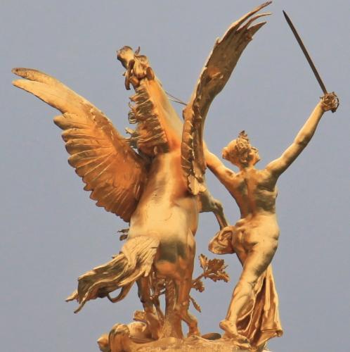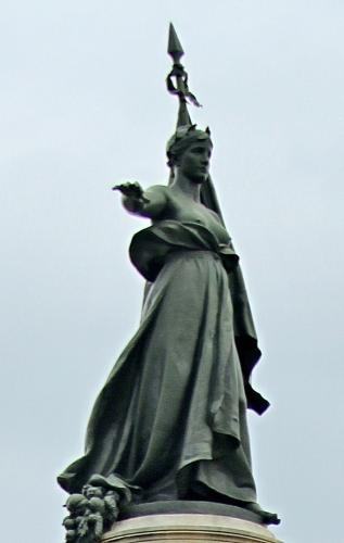 4. Вот Вы меня успокоили, Андрей, а то я все глаза проглядел, выискивая эту мадам в Пантеоне или вокруг, думал, нешто я проглядел ее ненароком? У меня есть абсолютно аналогичный Вашему снимок, но опубликую другой, чтобы народу более наглядно было, что эта колонна стоит аккурат рядом с башней Сен Иван (Татьяна, Вы туда ходили, да же?) и театром на правом берегу Сены. И что касается мюнхенской богини правосудия, да, все верно, в Новой Ратуше. Вот умудрились же они ее туда поставить!.А почему она без повязки на глазах, так я и сам не знаю, надеялся от форумчан ответ получить. Теперь остается совсем мало неопознанных. Если есть затруднения, то запросто дам подсказки.