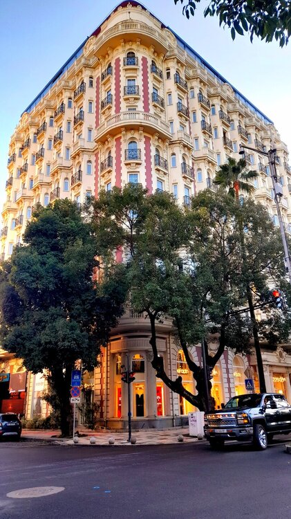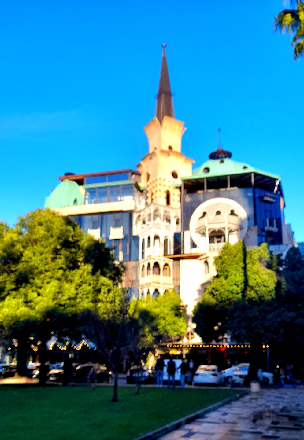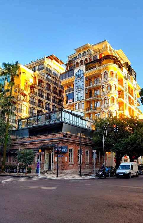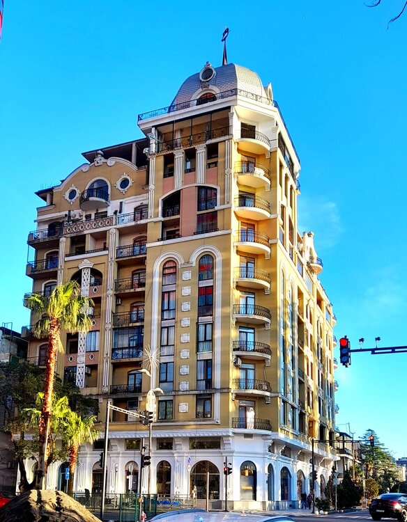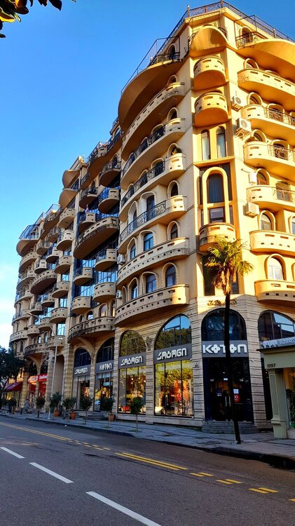БАТУМИ (начало). 10 января. Продолжаю знакомиться с городом после прогулок по городу 1 и 2 января. Начинаю осмотр города со здания Батумского суда. Далее обращает на себя внимание синагога. Для её строительства на рубеже XIX - XX веков потбебовалось личное одобрение Николая II. Рядом, за углом находится музей Аджарии, где хранится собрание древностей региона. Из-за узких улиц и большой длины здания получилось сфоткать только так. А это уже жилые дома. Балкончики мне особенно нравятся. Напротив - музей искусств Аджарии. В нем - картины Нико Пиросмани и Ладо Гудиашвили и не только их. А рядом - скверик с красивым фонтаном. Здание мэрии, опять же из-за узких улиц могу только так его показать. Вот только черные стволы высоченных пальм "портят" вид. Батумский кукольный театр. И вновь элитные строения. Ни одного похожего друг на друга. Просто шедевры архитектуры. Приближаюсь к приморскому бульвару. Отель Шератон и казино при нём. Здесь я уже гулял в предыдущие дни. Подошёл к парку. Попалась на глаза английская телефонная будка, а за ней нечто, похожее на коня. И вновь невероятной красоты строения. Ну и Батумская башня, видная отовсюду в городе. Захожу на Бульвар, утопающий в зелени участок набережной, который обустраивали ещё в конце XIX века немецкие и французские декораторы.