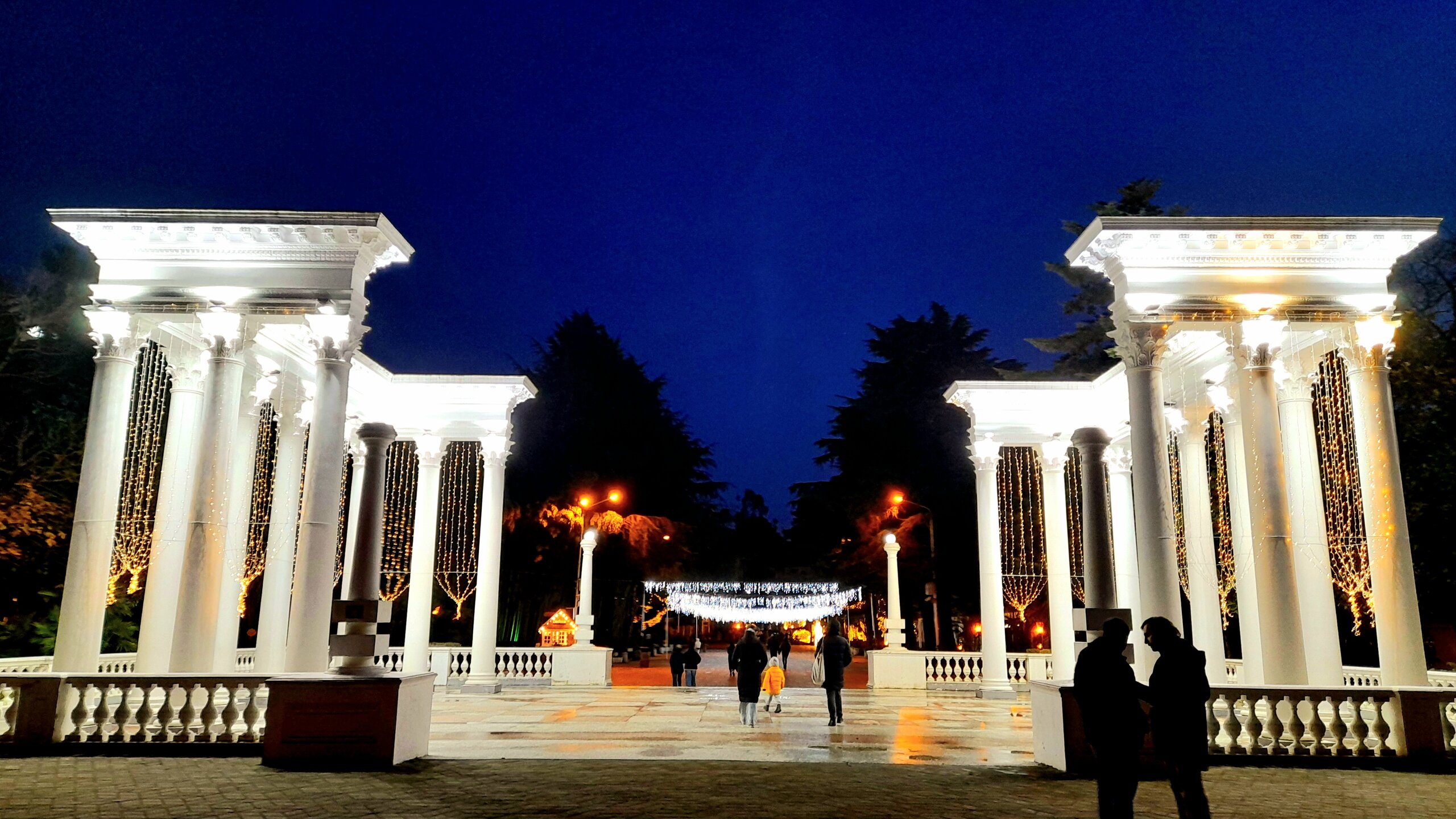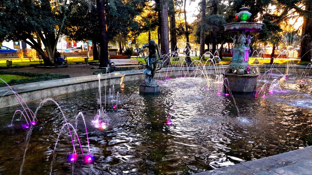 ВЕЧЕРНИЙ СИГНАХИ. КАХЕТИЯ. 8 января. В этот маленький городок я хотел вернуться спустя 11 лет. Но он никак не вписывался в мой сегодняшний маршрут. Начав с него с утра, я бы не успел увидеть Телави. Да и посещение виноделен Кварели с утра могло сказаться на моей физической форме, особенно если бы пришлось подниматься в монастырь Некреси пешком. Сигнахи - город влюблённых и мечтателей, открыточных пейзажей на Алазанскую долину. Этот ничем не приметный городок в начале нашего века стал превращаться в романтическую столицу Грузии. Тщательно отреставрирована каждая улочка, создана туристическая инфраструктура. Город кажется игрушечным, при населении в 2 тысячи человек туристический поток сюда один из самых больших в Грузии. Десятки туристических автобусов ежедневно приезжают сюда из Тбилиси. Мы же ехали в Сигнахи, когда уже стемнело и со стороны Алазанской долины. Дорога, которая ведёт непосредственно в Сигнахи была местами "убита", подъем в расположенный на возвышенности город шёл по серпантину без единого фонаря и встречного автотранспорта. Заехав в город, я сказал водителю, где меня ждать, а сам решил немного по нему прогуляться. Сигнахи сиял яркой подсветкой зданий и новогодними украшениями, но был практически пуст. Это меня очень удивило, хотя я перед поездкой получил от Нафани несколько ценных советов, в том числе и о нецелесообразности посещать Сигнахи поздним вечером. Туристы приехали утром и уехали днём, оставив здесь немногих, кроме местных жителей, поселившихся в отелях. Но будем считать, что здесь я оказался из-за сложившихся обстоятельств, отклонившись от трассы на Тбилиси на какие-то примерно 10-15 км. Вот тот открыточный вид, который я хотел увидеть. Жаль, почти ничего не видно. А так было в мой предыдущий сюда приезд. Захожу в парк 9 Апреля А так это выглядело осенью 2014 года. Площадь в центре Сигнахи с городской ёлочкой. Тот же вид, только без ёлочки. С одной стороны - красивая подсветка. Люди в Сигнахи есть, но все они в данный момент сидят в нескольких расположенных здесь ресторанах. Наверно им там весело. А вот мне в этом ярко украшенном городе при отсутствии людей на улицах, парках и площадях было как-то не по себе. Возвращаемся в Тбилиси. В общем день удался, я успел увидеть многое в Кахетии в этот день. Завтра меня ждёт тоже интересный, выездной из Тбилиси, день.